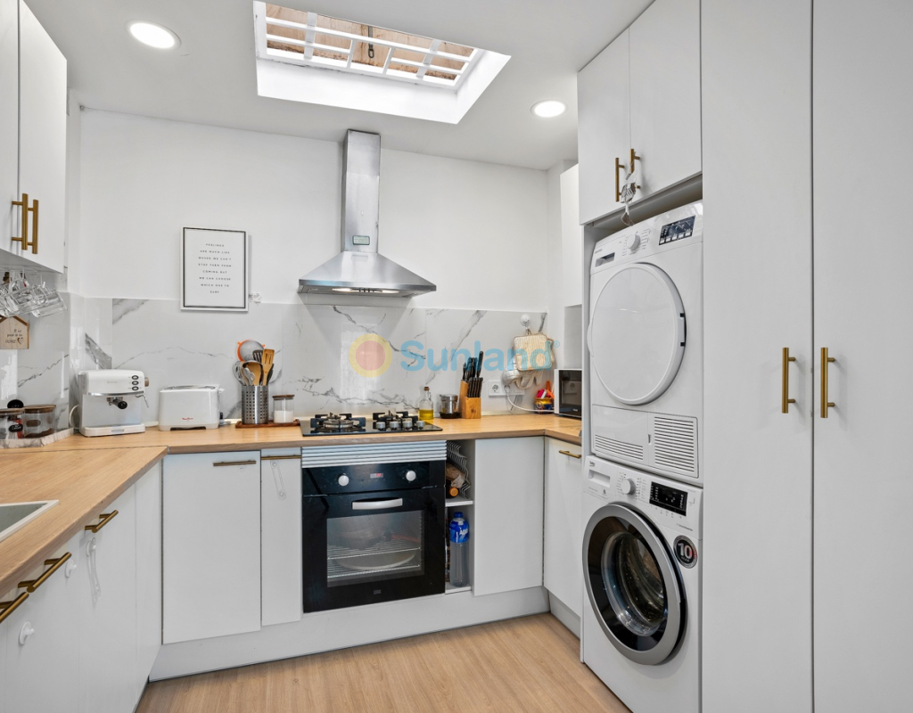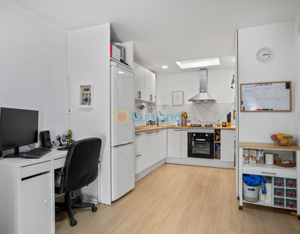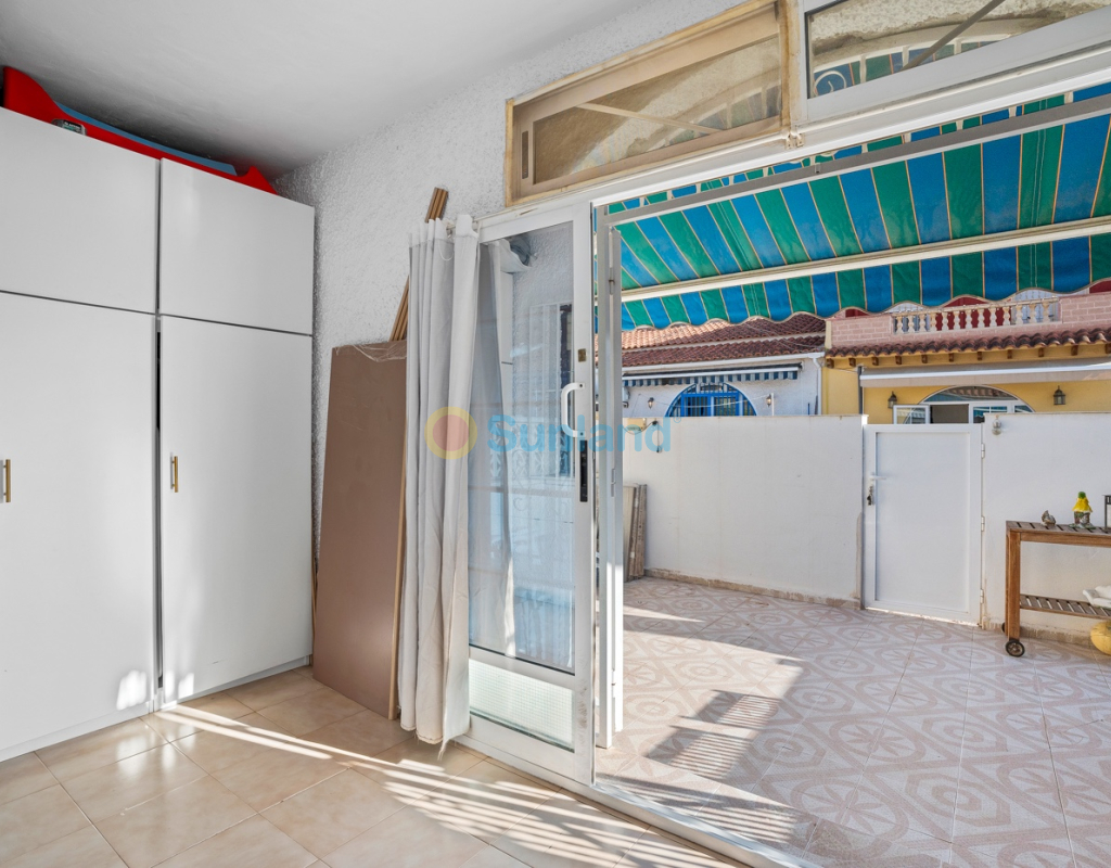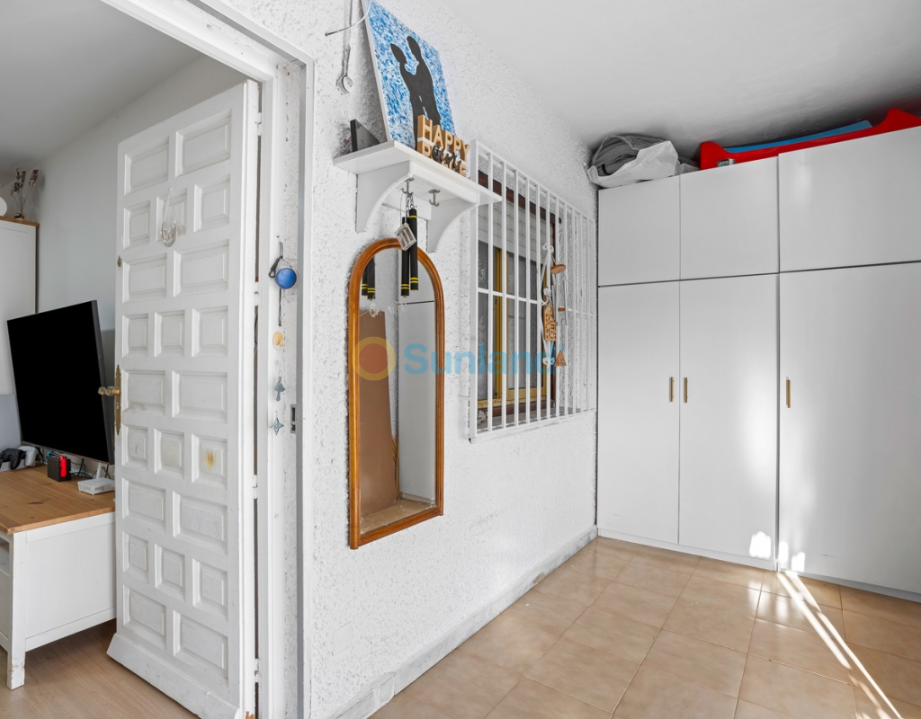 Sjarmerende bungalow på 80 m² i første etasje med mulighet for å legge til en andre etasje eller takterrasse. Nylig renovert for et år siden og i utmerket stand. Eiendommen har to innganger, noe som gir bekvemmelighet, sikkerhet og ytterligere muligheter. Den kan skilte med rikelig med naturlig lys og klimaanlegg. Planløsningen inkluderer to soverom, ett bad, en terrasse som er perfekt for å nyte middelhavsklimaet, og et innbydende og funksjonelt interiør. Den selges delvis møblert. Denne bungalowen ligger i et rolig område av boligområdet La Siesta, i utkanten av Torrevieja, og er omgitt av viktige fasiliteter: fritidsfasiliteter, et helsesenter, butikker og offentlig transport. Bare noen få meter unna ligger den nye La Siesta-parken, som har en skøytebane, paddletennisbaner og et lekeområde for barn. Videre ligger badelandet svært nært, noe som gjør det til et ideelt sted for både helårsbolig og investering.