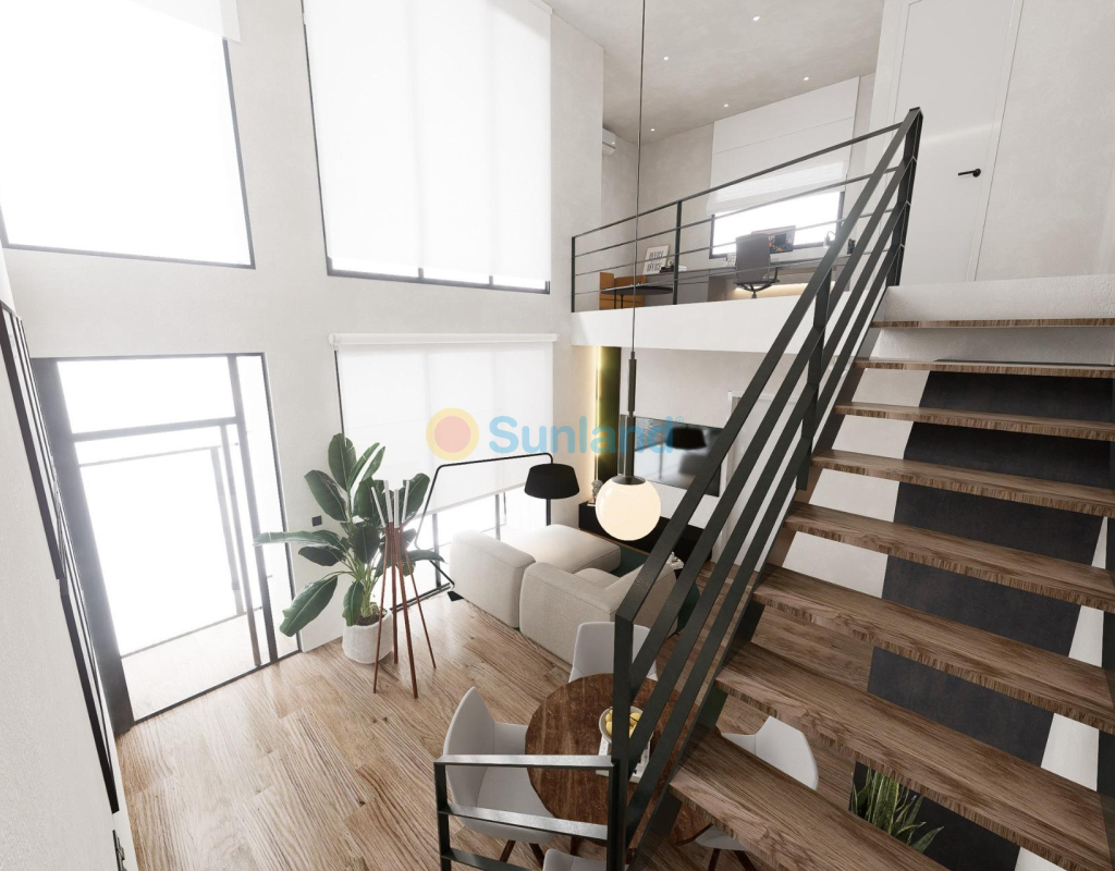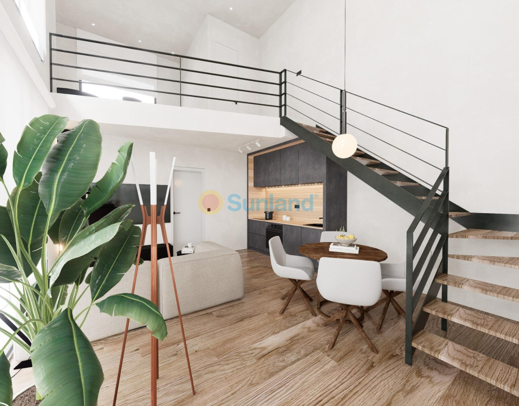 Moderne duplex-loftleiligheter i hjertet av Alicante Eksklusivt nytt boligprosjekt i Benalúa-området Oppdag en unik mulighet til å eie en stilfull duplex-loftleilighet i Benalúa, et av de mest livlige og godt tilknyttede områdene i Alicante. Dette unike prosjektet forvandler seks ubrukte næringslokaler til moderne boliglofter, og tilbyr en moderne urban livsstil bare 1 km fra Middelhavskysten. Benalúa er kjent for sine lokale butikker, kafeer, kulturelle aktiviteter og nærhet til sentrum, noe som gjør det til et svært ettertraktet område for både beboere og investorer. Moderne loftstil Hver bolig er fullstendig omdesignet for å tilby et friskt, åpent og elegant boareal. Prosjektet omfatter 1- og 2-roms duplex-lofter med 2 bad, alle med imponerende doble takhøyder som forsterker det naturlige lyset og gir en ekte loftstemning. Øverste etasje har soverom og komplett bad, noe som skaper privatliv og komfort. Med egen inngang fra gaten og privat terrasse kombinerer hver leilighet moderne arkitektur med praktisk boende. Høy kvalitet på finish, moderne planløsning og lyse interiører gjør disse loftene til et fremragende valg for de som søker stil og funksjonalitet. Komfort og fellesfasiliteter Beboerne vil ha tilgang til et felles svømmebasseng i bygningen, som gir en avslappende og forfriskende atmosfære på varme middelhavsdager. De private terrassene og separate inngangene gir ekstra bekvemmelighet og eksklusivitet. Førsteklasses beliggenhet nær viktige severdigheter Prosjektet har en perfekt beliggenhet både for å bo og for investering, og er omgitt av viktige tjenester og store attraksjoner: Alicante strandpromenade: 1 km Renfe togstasjon: 0,8 km El Corte Inglés kjøpesenter: 0,7 km Alicante rettspalass: 0,5 km Alicante flyplass: 12 km Alicante marina og havn: 2 km Golfbaner (Alicante Golf): 7 km Området tilbyr utmerkede offentlige transportforbindelser, kulturelle arenaer, grønne områder og enkel tilgang til byens vakre strender. En smart investering i Alicantes kystliv Enten du er på utkikk etter en primærbolig, en feriebolig eller en investering med stort utleiepotensial, representerer disse duplex-loftleilighetene i Benalúa en unik mulighet i et av Alicantes mest lovende områder. Kontakt oss i dag for å reservere din eksklusive loftleilighet og nyte et moderne liv i hjertet av Alicante.