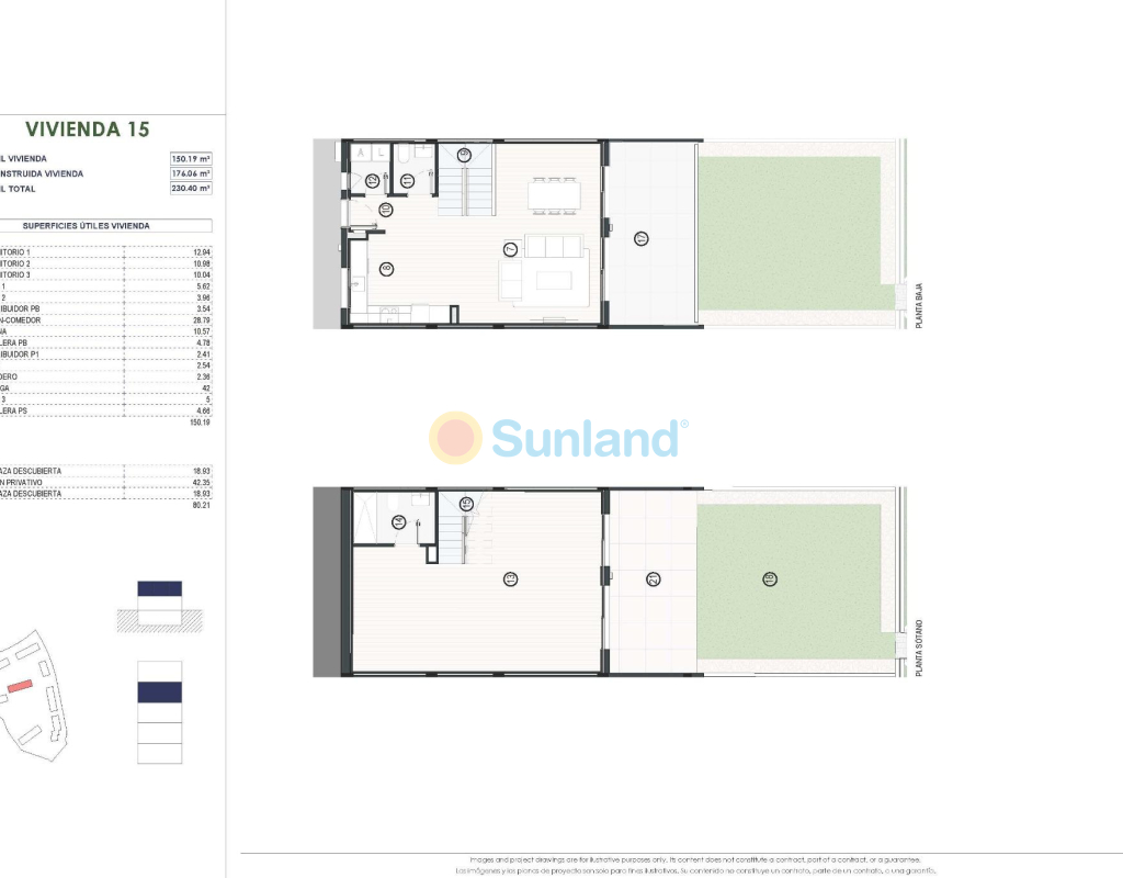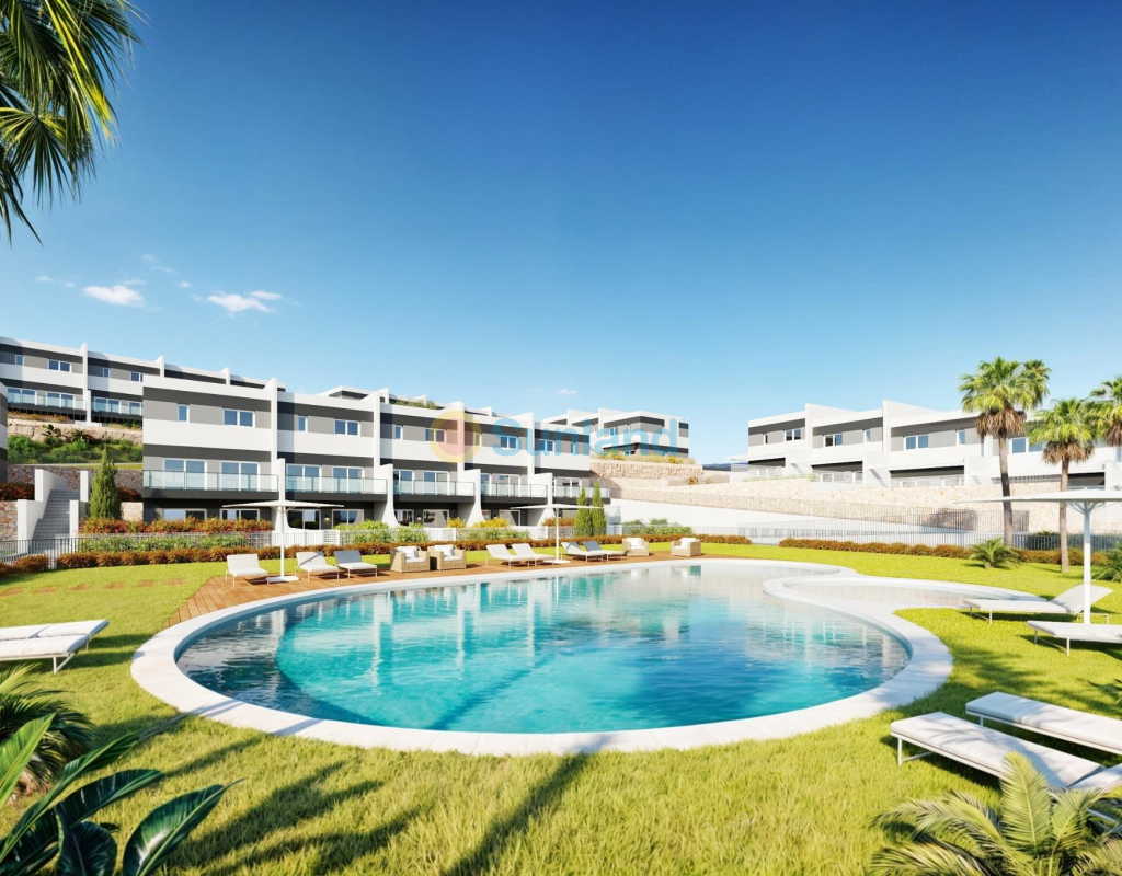 Moderne rekkehus med 3 soverom til salgs i Balcon de Finestrat på Costa Blanca Moderne boliger i en førsteklasses beliggenhet ved Middelhavet Dette nye boligprosjektet med rekkehus med 3 soverom, 2 bad og 1 gjestetoalett ligger i Balcon de Finestrat, et fredelig og velholdt område på Costa Blanca. Bare noen minutter fra Benidorm og ved siden av Puig Campana golfbane, tilbyr denne beliggenheten en ideell balanse mellom natur, sjø og viktige tjenester. Området er kjent for sitt vakre fjellandskap, enkel tilgang til fritidsområder og et behagelig klima hele året. Moderne design med lyse og funksjonelle interiører Rekkehusene har en moderne åpen planløsning. Første etasje har et romslig kjøkken, spisestue og stue fylt med naturlig lys, samt et gjestetoalett. I andre etasje gir dobbeltrommene og fullt utstyrte bad komfort og privatliv for hele familien. Noen enheter har en 50 m2 kjeller med forhåndsinstallert ekstra bad og et åpent rom som eierne kan tilpasse, med direkte tilgang til hagen. Uteområder designet for middelhavsliv Hver eiendom har store terrasser, ideelle for å nyte utsikten over naturen og det solrike været på Costa Blanca. Fellesområdet har svømmebasseng, anlagte hager og utendørs avslapningsområder, som skaper et fredelig miljø for beboerne. Høy kvalitet og energieffektivitet Boligene har fullt utstyrte bad med møbler, speil og dusjvegger, komplett klimaanlegg, solcellepaneler for elektrisk støtte, pansret inngangsdør og energisertifikat A. Kjellere leveres med forhåndsinstallasjon for klimaanlegg. Utmerket tilknytning og nærliggende tjenester Sandstrendene i Benidorm og Villajoyosa ligger bare 4 km unna, og kjøpesenteret La Marina ligger bare en kort kjøretur unna, med restauranter, butikker og underholdning. I nærheten finner du internasjonale skoler, supermarkeder og alle daglige fasiliteter. Avstander av interesse: Alicante lufthavn 40 km, Puig Campana golfbane 1 km, Benidorms strender 4 km, Villajoyosa havn 9 km. En livsstil med komfort og bekvemmelighet Hver eiendom har en eller to private utendørs parkeringsplasser, noe som sikrer praktisk og komfortabel bruk hele året. Kontakt oss i dag for å avtale en visning og sikre deg ditt nye hjem i Balcon de Finestrat.