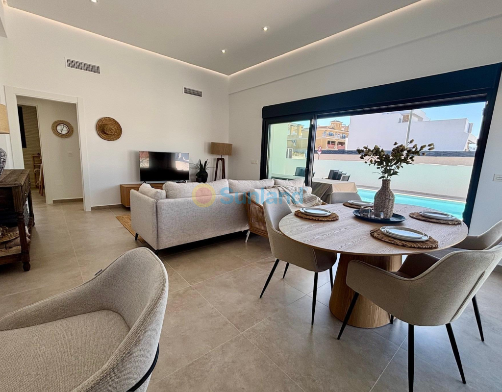 Moderne nybyggede villaer til salgs i Rafal: Costa Blanca-liv med stil og komfort Moderne villaer i en sjarmerende spansk landsby Oppdag disse eksepsjonelle nybyggede villaene som ligger i utkanten av Rafal, en tradisjonell og pittoresk by i hjertet av Costa Blanca. Rafal tilbyr en fredelig livsstil omgitt av frukthager, lokale butikker, kafeer og vennlige nabolag, samtidig som det gir utmerket tilgang til viktige fasiliteter. Byen ligger bare 30 km fra Alicante og den internasjonale flyplassen, og kun en kort kjøretur fra vakre middelhavsstrender og topp golfbaner. Premiumvillaer designet for moderne livsstil Hver villa ligger på en romslig tomt på over 370 m², og tilbyr god plass utendørs, privatliv og komfort. Disse enetasjesboligene har 3 romslige soverom og 2 moderne bad, perfekt designet for både familieliv og ferieliv. Det store uteområdet inkluderer et privat svømmebasseng på 7 x 3,5 m, over 100 m² åpen terrasse og en 15 m² overbygd veranda som er ideell for å slappe av i skyggen. Kjøpere har også muligheten til å legge til et solarium på taket og et oppbevaringsrom mot en ekstra kostnad, noe som gir enda mer plass til å nyte middelhavsklimaet og panoramautsikten. Høy kvalitet og energieffektivitet Disse villaene er bygget etter eksepsjonelle standarder med førsteklasses materialer og avanserte energisparende funksjoner. Høydepunkter inkluderer Vinduer fra Schüco for maksimal isolasjon og holdbarhet Motoriserte persienner Fotovoltaiske solcellepaneler for redusert energiforbruk Automatisk vanningsanlegg for hagen Motorisert inngangsport for kjøretøy Oppvarmede badegulv Hver detalj er designet for å gi komfort, effektivitet og en stilig, moderne finish. Ideell beliggenhet nær strender, golfbaner og tjenester Rafals strategiske beliggenhet gir enkel tilgang til viktige severdigheter Strendene i Guardamar del Segura 9 km Golfbanene La Finca og Vistabella 10 km Byen Orihuela 7 km Alicante internasjonale lufthavn 30 km Torrevieja 20 km Selve byen tilbyr supermarkeder, restauranter, skoler, medisinske tjenester og idrettsanlegg, noe som gjør den til et perfekt bosted året rundt. Nyt roen, solen og middelhavslivet Disse nybygde villaene i Rafal gir en enestående mulighet til å nyte en fredelig livsstil med alle moderne bekvemmeligheter, privat basseng og utmerket tilknytning til det beste Costa Blanca har å tilby, til en uovertruffen pris. Kontakt oss i dag for å sikre deg din nye villa i Rafal og begynn å leve det middelhavslivet du fortjener.