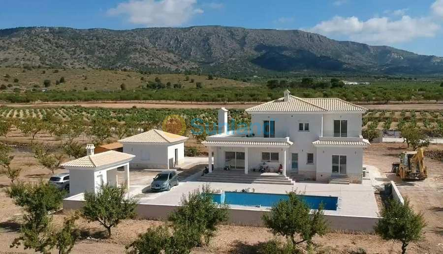 Nybyggede villaer i Pinoso på rustikke tomter Du kan velge villaer med tradisjonelle spanske detaljer eller supermoderne, lyse og rene overflater. Det er flere størrelser å velge mellom, med 3 til 6 soverom og 1 eller 2 etasjer. Forskjellige lovlige tomter tilgjengelig å velge mellom (rustikke med minimum 10.000 m2), noen i kort avstand fra byen, noen helt private og de mest populære ligger 5-10 minutters kjøretur fra en by. Vi har en tomt for enhver smak, alle med fantastisk utsikt og alle har vann fra nettet + strøm inkludert i prisen og høyhastighetsinternett tilgjengelig. I den oppgitte prisen er 30 000 euro inkludert for tomten. Hvis den valgte tomten koster mer, må differansen betales. Fra den største og beste byggherren i området, og vi bruker materialer av høyeste kvalitet for et perfekt resultat. Alle husene har en 2 m bred terrasse i støpt betong rundt bassenget (farge og mønster etter eget valg), 1 m rundt huset, lukket inngang, 3000 m² gjerde, forhåndsinstallert sentral klimaanlegg, standard kjøkken, sikkerhetsdør, tyske vippevinduer (eller skyvevinduer hvis ønskelig), innebygd peis (i tradisjonell finish), forhåndsinstallert TV og internett, grusvei noen meter rundt huset, septiktank. Badene har dusjkolonne, dusjkar eller badekar, servantskap (flere farger å velge mellom) med vask, kraner og speil, samt et stort utvalg av veggfliser. Stort utvalg av keramiske gulvfliser i forskjellige farger, treimitasjon osv. Kjøkkenene har skap med standarddører og håndtak, vask og kran i rustfritt stål, forhåndsinstallert for ovn, oppvaskmaskin og avtrekk. Flere benkeplater i granitt å velge mellom. Hvitevarer er ikke inkludert. Marmortrapp (krem, hvit eller grå) og rekkverk inkludert, samt rekkverk til verandaen foran. Du kan tilpasse huset etter eget ønske, de fleste interne endringer er gratis, og du kan velge fliser, kjøkkenbenker, marmor til trapper eller hyller osv. Husene kan utvides, og vi kan til og med bygge ditt eget design. Du kan bestille flere ekstrautstyr som større svømmebasseng, enkelt- eller dobbeltgarasje, gjestehus osv. mot en ekstra kostnad. Byen Pinoso ligger omtrent 45 minutter inn i landet fra Alicante og de hvite sandstrendene på Costa Blanca, og nær grensen til Murcia, Alicante. Den har en befolkning på litt under 8000 innbyggere. Pinoso, også kjent som El Pinos, har fått navnet sitt fra furutrærne som dekker fjellene i området. Pinoso tilbyr en spansk landsbylivsstil, uten trafikklys, nesten uten trafikk, og de eneste trafikkorkene skyldes traktorer som frakter druer til Bodega. Markene er beplantet med vinranker, mandeltrær og oliventrær. I februar fylles markene med rosa mandelblomster. Pinoso har mange barer, restauranter og butikker, et nytt 24-timers medisinsk senter, tannleger, to barneskoler og en ungdomsskole, et teater. Det er et utmerket idrettssenter med utendørsbassenger, tennisbaner, fotballbaner og treningsstudio, bibliotek og mange andre fasiliteter, inkludert et vakkert piknikområde blant furutrærne, med grillplasser, sittegrupper og rennende vann.