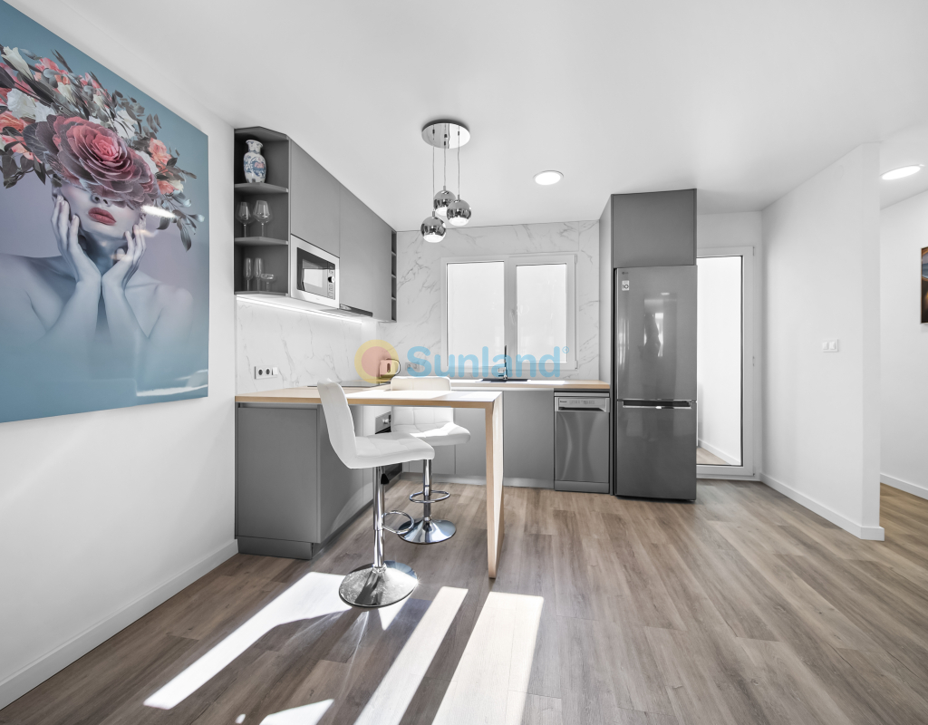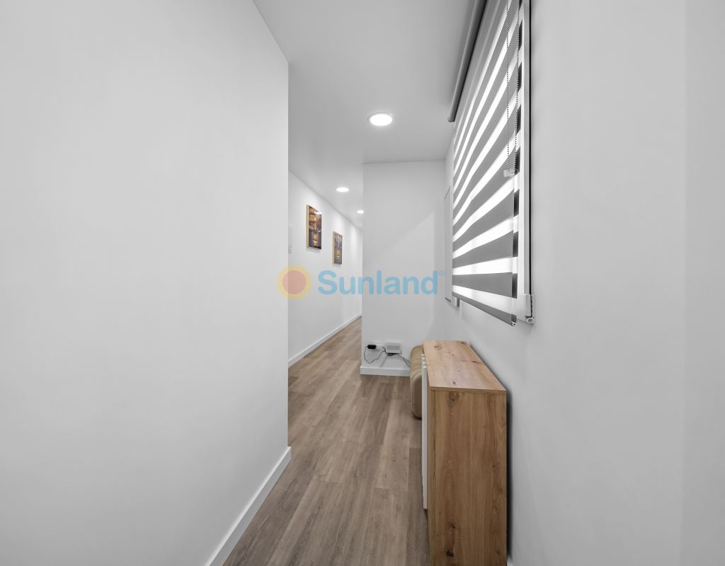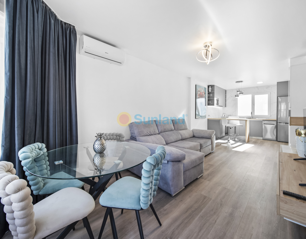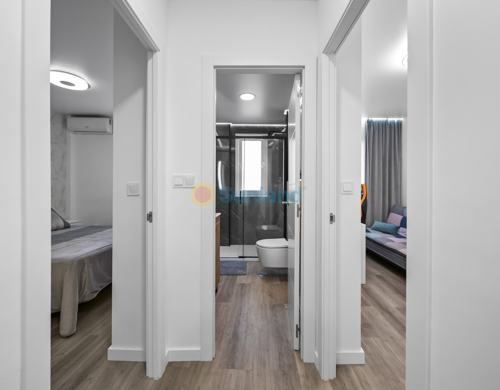 Renoveret leilighet med terrasse i sentrum av Torrevieja. Fullstendig renovert i 2025, beliggende i tredje etasje i en bygning med heis, midt i sentrum av Torrevieja. Leiligheten har 3 soverom, 1 bad, terrasse med utsikt over en liten plass, og totalt 85 m² bebygd areal. Selges med moderne innredning inkludert i prisen. Kvaliteter 3 soverom 1 bad 85 m² bebygd Terrasse med utsikt mot en plass Nordvestvendt Tredje etasje Heis Moderne innredning inkludert Byggeår: 1980 Renovert i 2025 Årlige kostnader IBI: €185 Felleskostnader: €360 Beliggenhet 50 m fra supermarked 300 m fra barer og restauranter 300 m fra Playa del Cura 500 m fra Playa de Los Locos 7 min med bil til Habaneras kjøpesenter 40 min med bil til Alicante flyplass
