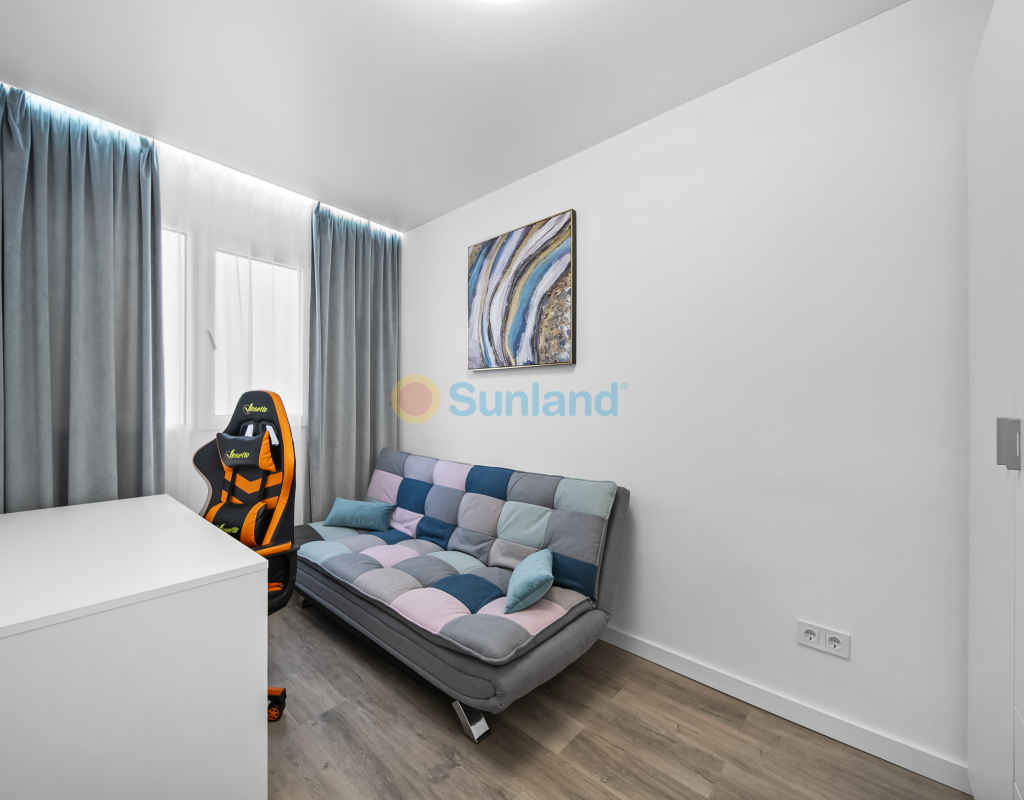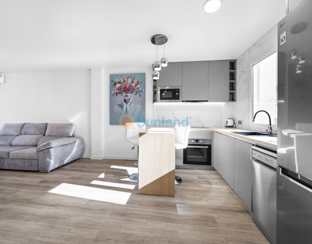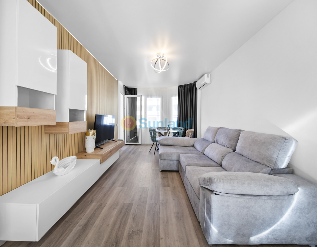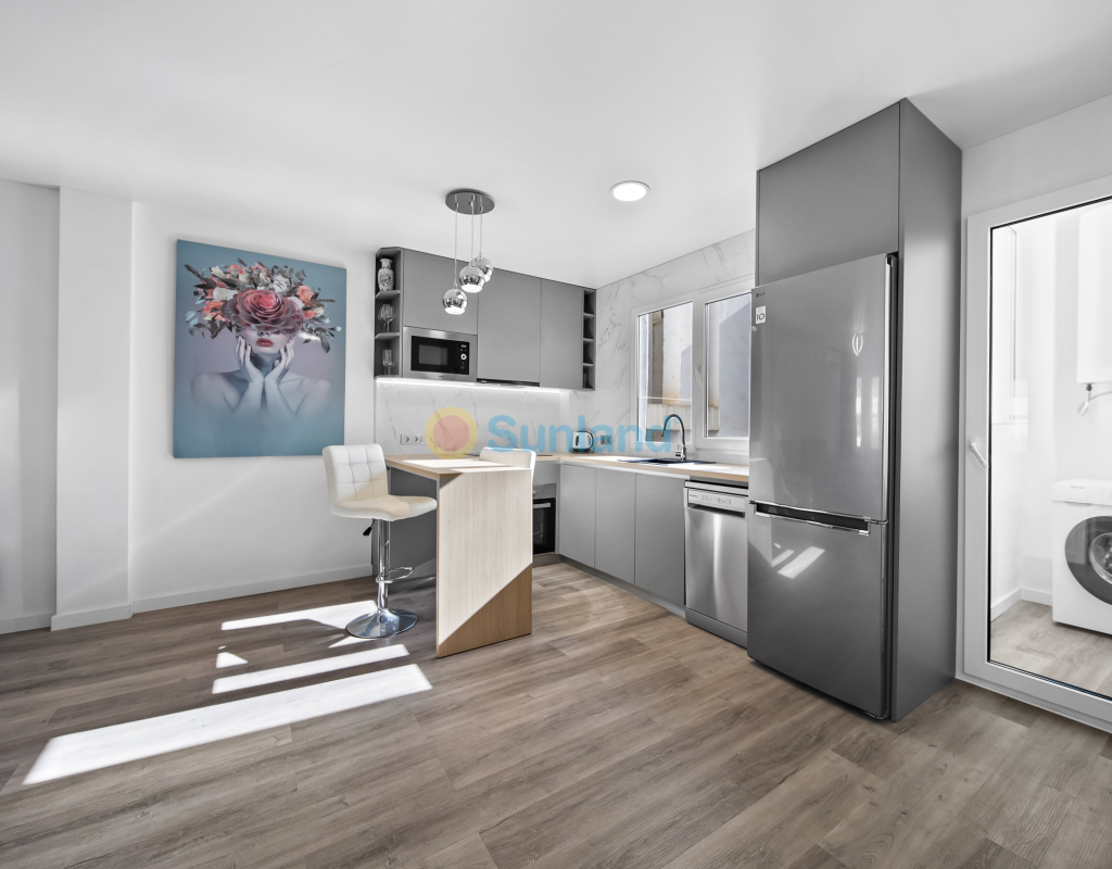 Renoveret leilighet med terrasse i sentrum av Torrevieja. Fullstendig renovert i 2025, beliggende i tredje etasje i en bygning med heis, midt i sentrum av Torrevieja. Leiligheten har 3 soverom, 1 bad, terrasse med utsikt over en liten plass, og totalt 85 m² bebygd areal. Selges med moderne innredning inkludert i prisen. Kvaliteter 3 soverom 1 bad 85 m² bebygd Terrasse med utsikt mot en plass Nordvestvendt Tredje etasje Heis Moderne innredning inkludert Byggeår: 1980 Renovert i 2025 Årlige kostnader IBI: €185 Felleskostnader: €360 Beliggenhet 50 m fra supermarked 300 m fra barer og restauranter 300 m fra Playa del Cura 500 m fra Playa de Los Locos 7 min med bil til Habaneras kjøpesenter 40 min med bil til Alicante flyplass