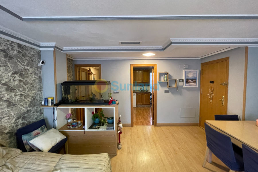 Romslig leilighet med 4 soverom i hjertet av Torrevieja, inkludert garasjeplass.Kanalbasert aircondition i hele boligen. Boligen er i svært god generell stand og har 2 komplette bad. Den har også en romslig stue med en koselig liten terrasse, perfekt for å nyte frisk luft.