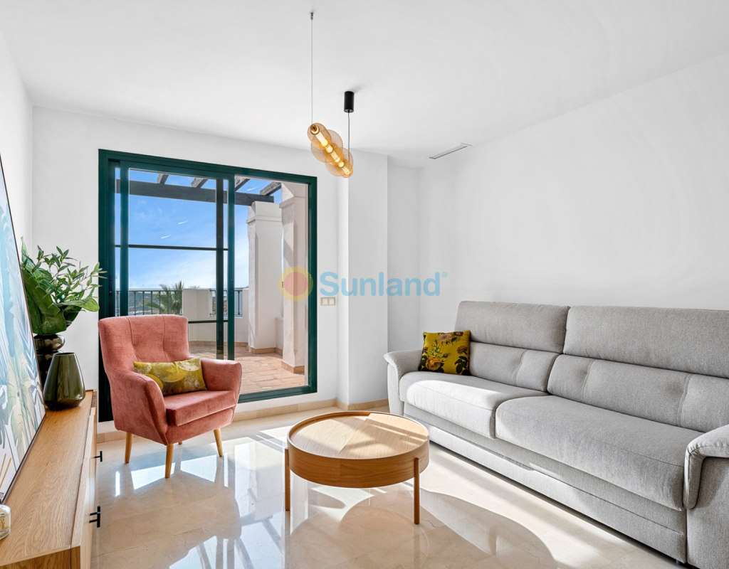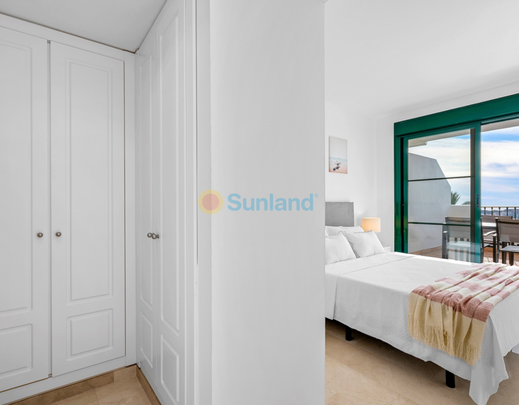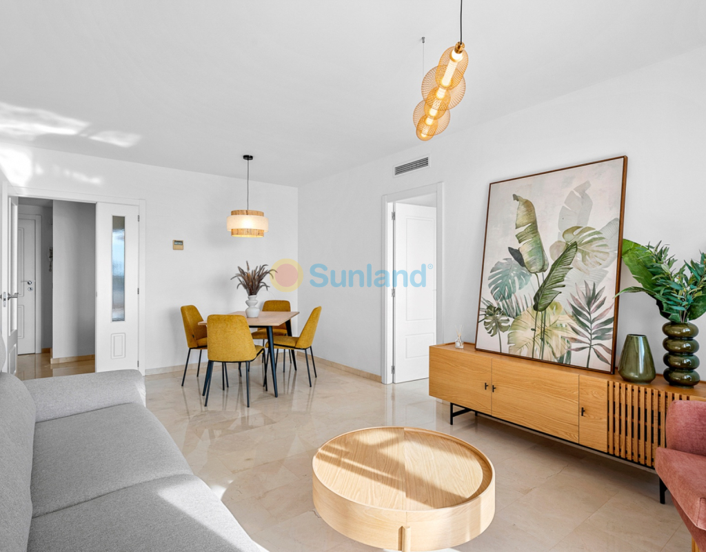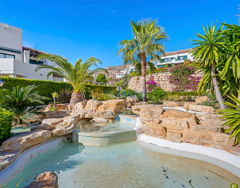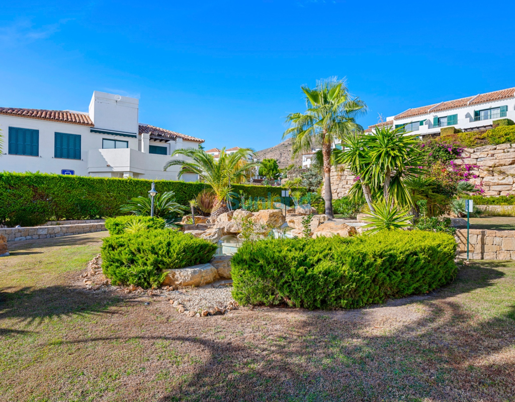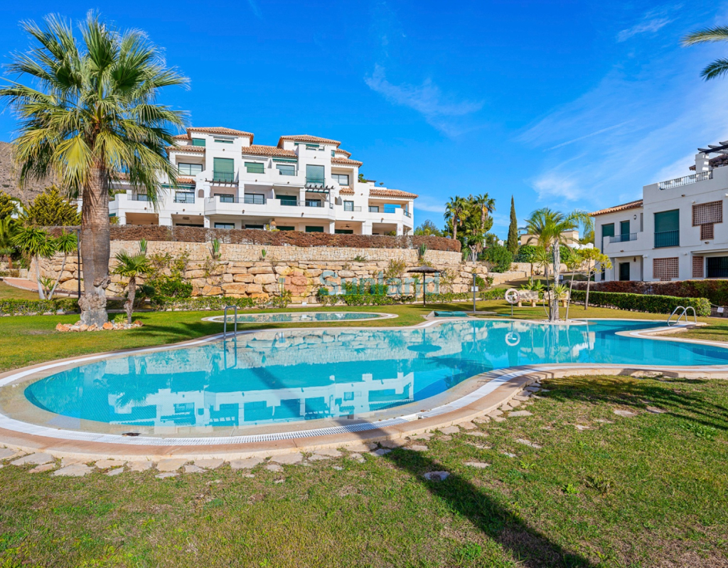 Denne attraktive leiligheten ligger i det eksklusive boligområdet Balcón de Sierra Cortina, et veletablert og ettertraktet område kjent for sin ro, velstelte hager og nærhet til Benidorm, strender, golfbaner og alle fasiliteter. Boligen har et bebygd areal på 87 m² og et bruksareal på 76 m², med en komfortabel og funksjonell planløsning. Den har en lys og romslig stue med spiseplass og direkte utgang til en hyggelig terrasse, ideell for å nyte middelhavsklimaet samt åpen utsikt mot havet, fellesområder og grøntområder. Kjøkkenet er separat, fullt utstyrt og har vaskerom. Hovedsoverommet er romslig og har walk-in garderobe og eget bad. I tillegg finnes det et ekstra komplett bad, noe som gir ekstra komfort både til daglig bruk og for gjester. Leiligheten selges møblert og har klimaanlegg, klar til innflytting. Boligen er en del av et privat boligkompleks bygget i 2007, med felles svømmebasseng, velholdte hager og et rolig og trygt miljø. Privat parkeringsplass i kjeller og bod medfølger. En utmerket mulighet som helårsbolig, feriebolig eller investering i et av de mest attraktive områdene på Costa Blanca.