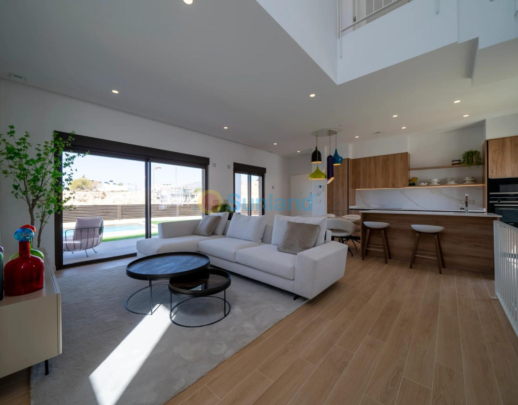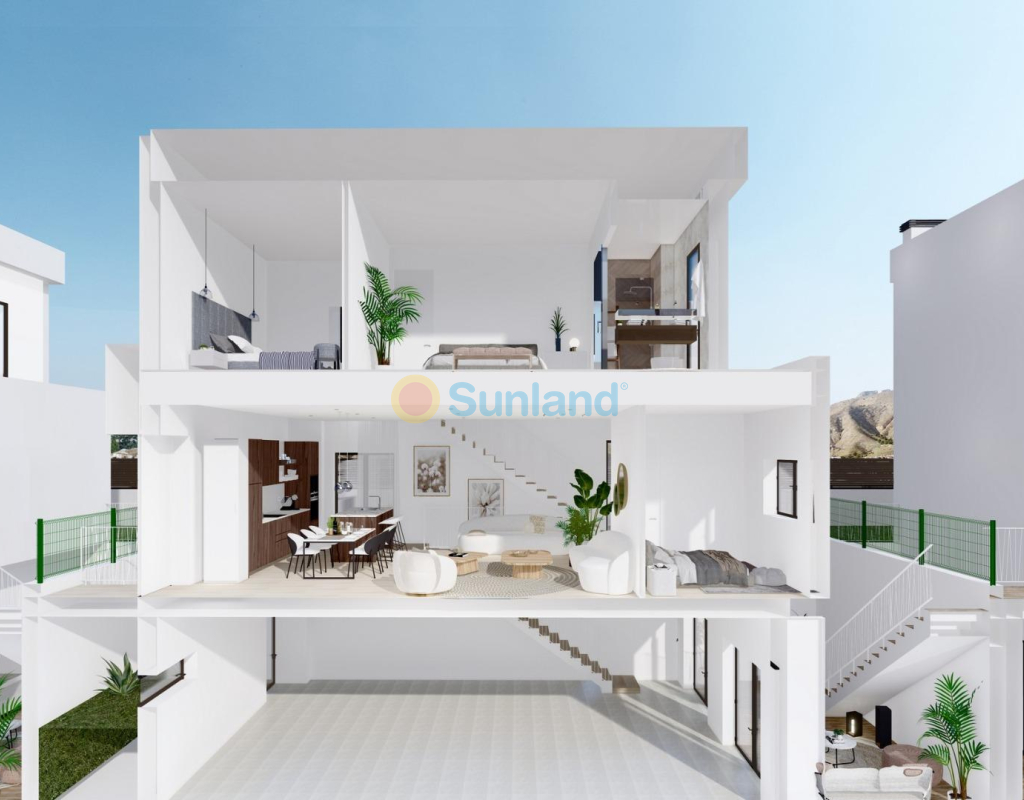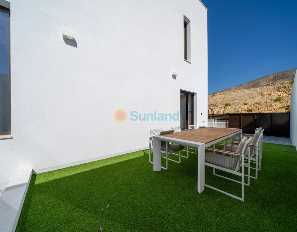 NYBYGGEDE VILLAER I FINESTRAT Disse moderne villaene er omhyggelig designet for å fange skjønnheten i Sierra Cortina og Middelhavet i hvert hjørne. Villaene er bygget over 2 etasjer og har 3 soverom, 3 bad, åpen kjøkkenløsning med stue, innebygde garderober, utstyrt kjøkken, privat hage med basseng og parkering. Boligen ligger ved siden av to golfbaner, fornøyelsesparker, et stort kjøpesenter og noen få minutter fra strendene i Benidorm. Finestrat ligger i Marina Baixa-regionen på Costa Blanca, nær nabobyen Benidorm og ca. 40 kilometer fra byen Alicante og den internasjonale flyplassen. Benidorm ligger bare en fem minutters kjøretur unna, og her finner du alt du trenger av butikker, barer, restauranter, supermarkeder, banker, apotek og flere private internasjonale skoler. Det er kort vei til de over 6 km lange strendene Levante, Poniente og Cala de Finestrat, som er blant de beste i Europa og har fått tildelt blått flagg av EU. Alle fritidstilbud som fornøyelsesparkene Aqua Natura, Terra Mítica, Terra Natura, Aqualandia og Mundomar, golfbanene Sierra Cortina og Villaitana, fotturer og klatring i Puig Campana, en enestående naturskjønn omgivelse, og nautisk sport.