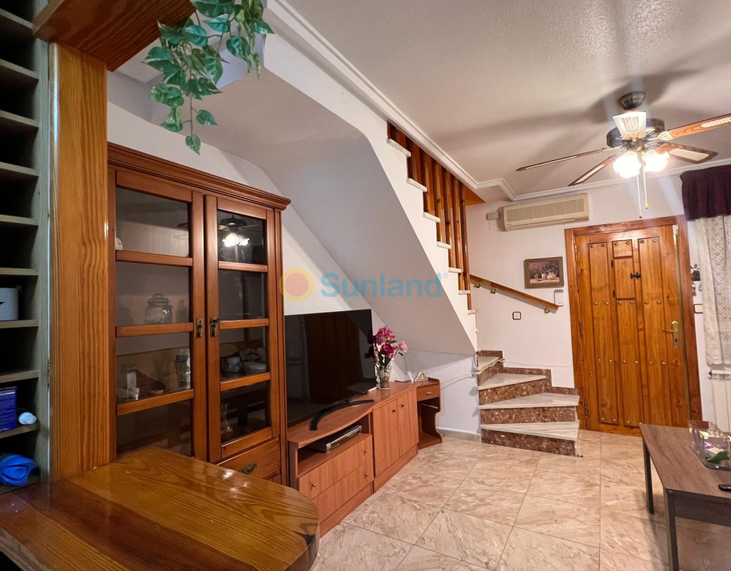 In the quiet area of Los Altos, Torrevieja, lies this charming south-facing corner townhouse, perfect for those seeking privacy, comfort, and quality of life on the Costa Blanca. The property, with no neighbors above, has a large front garden with parking space, providing added comfort and functionality. Upon entering the home, you are welcomed by a warm living-dining room with a fireplace, ideal for enjoying cozy family moments. The semi-equipped open-plan kitchen connects to a closed laundry room that can also be used as a storage room. The layout is perfect for both a permanent residence and a vacation home: on the ground floor there is a bedroom and a full bathroom, while upstairs there are two additional bedrooms and a second bathroom. As part of the residential complex, residents can enjoy a beautiful communal pool surrounded by gardens. Furthermore, its location is unbeatable: close to shopping centers, supermarkets, schools, the hospital, and the renowned leisure areas of Punta Prima, as well as the beaches of Torrevieja and Orihuela Costa. A once-in-a-lifetime opportunity to experience the Mediterranean lifestyle. Contact us today and schedule your visit with Nuestra empresa. Climate: The Costa Blanca's climate, often considered the best in Europe , enables a very sociable and healthy outdoor lifestyle , characterized by sports and leisure facilities , and with exciting, cosmopolitan resort towns that stand out for their top-class services , some of them exclusive and considered truly luxurious. All of these services cater to discerning customers who seek quality and proximity. The Costa Blanca boasts over 300 days of sunshine a year . A paradise with excellent connections to all of Europe. Alicante-Elche Airport boasts modern facilities and easy access from anywhere in the province. Around: The Costa Blanca continues to attract people from all over Europe, and around the world, because it offers a unique quality of life in a beautiful setting on the shores of the Mediterranean Sea, surrounded by mountains and lush vegetation. In addition to the golf courses and marinas along the coast, the area also offers skiing in the nearby Sierra Nevada, Javalambre, and Valdelinares mountains , paradises for winter sports enthusiasts with beautiful natural landscapes. The Costa Blanca offers a uniquely rich lifestyle , where the best beaches and coves of the Mediterranean combine with an interior filled with mountains and towns that hide unique cultures and historical monuments. We have a gift for you: We believe your trust deserves exceptional treatment. We'll be there for you whenever you need us. At Nuestra empresa, we help you turn your new property into your dream home by offering you a free technical visit , where our technical team will advise you on home improvement options. Completely free! IMPORTANT!! Remember that our services NEVER increase the final price of the home for our clients. Our experience in the sector makes us your ally, a trusted advisor who will help you choose your dream home in the best area, inform you about the market price of the properties you're interested in, the quality standards employed... all the essential and objective information to ensure your experience is completely satisfactory. Our agency belongs to a group of established companies specializing in the home sector: architecture, interior design, furniture, real estate consulting, and more. These resources allow us to offer unique and exclusive services to our clients.