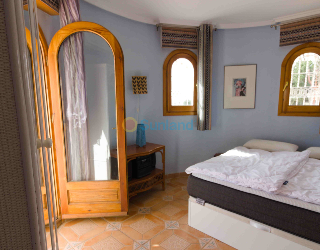 The lower level which has its own separate entrance is accessed from the garden and here you will find a self-contained guest apartment which comprises of; a very large room which could be a lounge/diner or a further sleeping area, a separate fitted kitchen area with room for a dining table, the fifth bedroom, plus a bathroom with Spanish style tiling and a shower. This area is an ideal place for visiting family and friends but the layout could easily be adapted to suit the new owners needs.