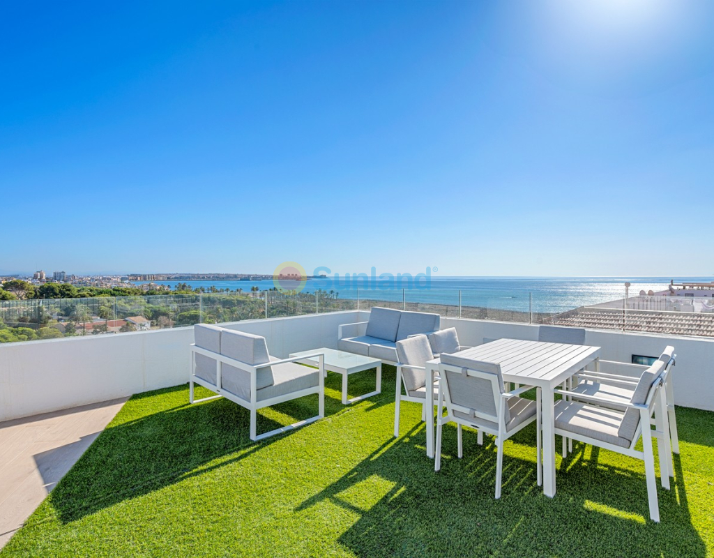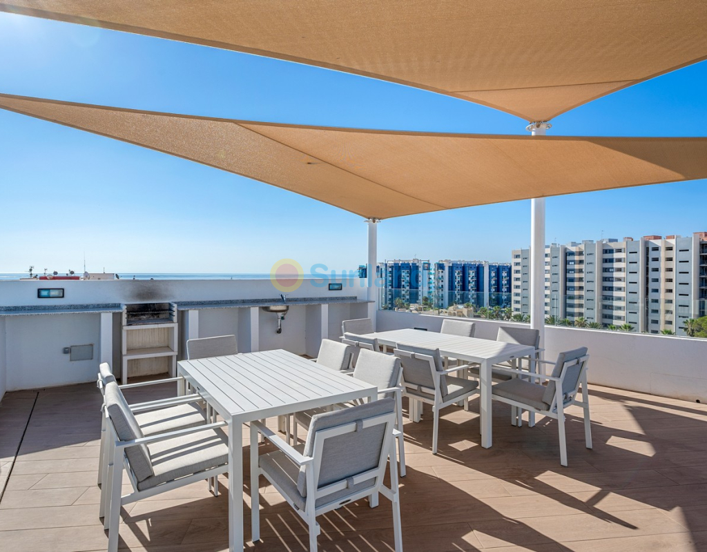 This stunning apartment, built in 2024, offers breathtaking views of the sea and the harbour of Torrevieja. Just 300 metres from the coastline and within walking distance of shops, restaurants, and all essential amenities. The property features two bedrooms and two bathrooms, one of which is en suite. The modern open-plan kitchen is fully equipped and flows into a bright and airy living area. Exclusive extras include a communal rooftop terrace with swimming pool, outdoor kitchen, and BBQ – perfect for stylish Mediterranean living. An underground parking space and a private storage room are also included for added comfort and security.