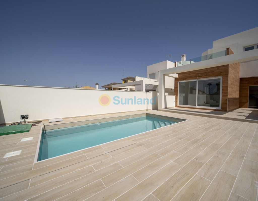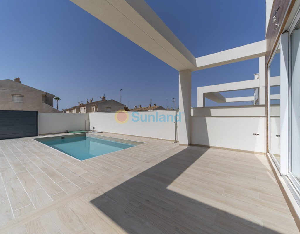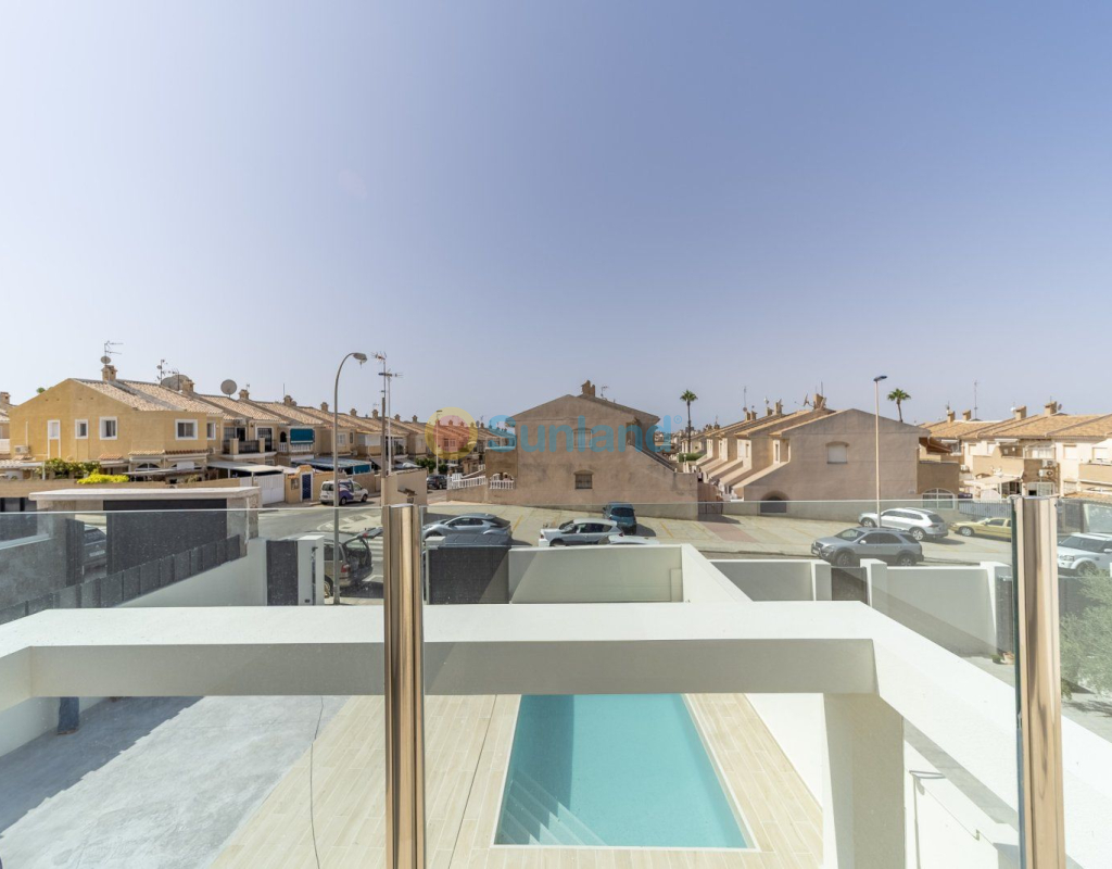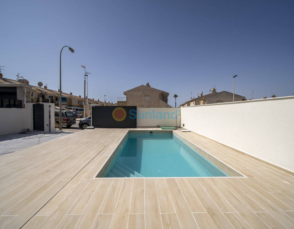 Brand new villa with private pool and views of the salt lakes in Aguas Nuevas, Torrevieja. Located in a quiet residential area, this brand new villa offers 120 m² of living space and 239 m² built on a 407 m² plot. South-facing, it features 3 bedrooms, 2 bathrooms, a fully equipped open-plan kitchen, and a bright living room. Includes a private pool, terraces with views of the salt lakes, a parking space, and LED lighting both inside and outside. Key features: 3 bedrooms and 2 bathrooms 120 m² living space / 239 m² built 407 m² plot South facing Fully equipped open-plan kitchen Interior and exterior LED lighting Private pool Terrace with views of the Torrevieja salt lakes On-plot parking space Year built: 2025 Location: 2 min from Mercadona supermarket 2 min from school 5 min from Habaneras Shopping Centre 5 min from Torrevieja Sports Centre 5 min from Carrefour