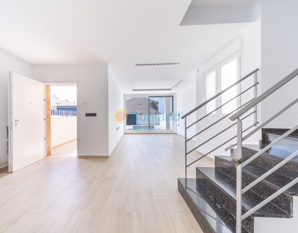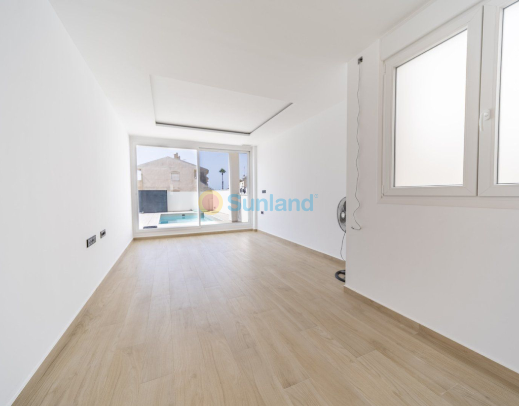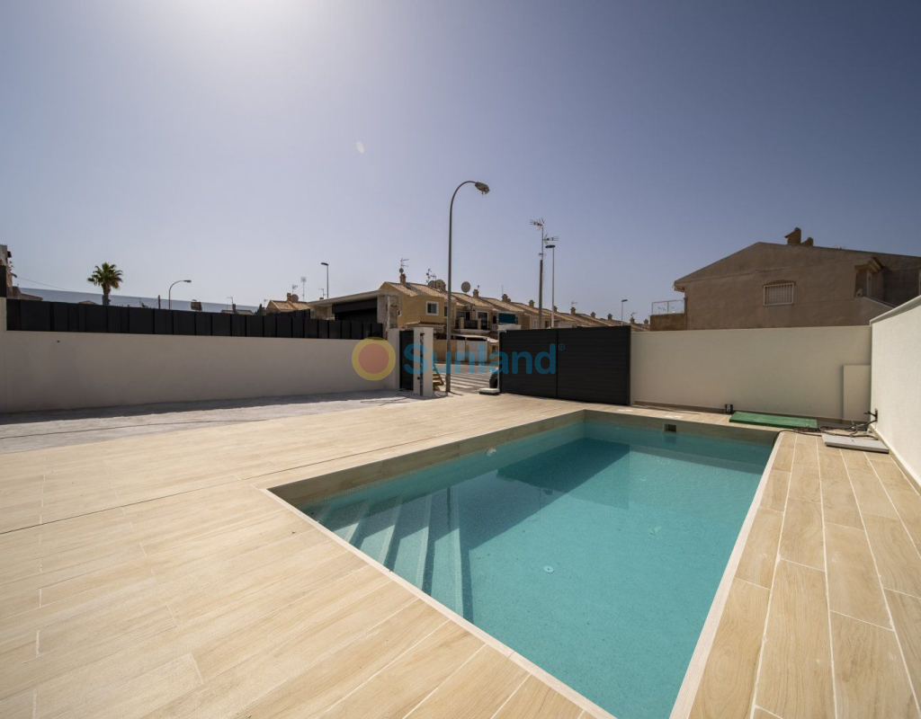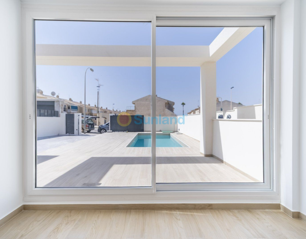 Brand new villa with private pool and views of the salt lakes in Aguas Nuevas, Torrevieja. Located in a quiet residential area, this brand new villa offers 120 m² of living space and 239 m² built on a 407 m² plot. South-facing, it features 3 bedrooms, 2 bathrooms, a fully equipped open-plan kitchen, and a bright living room. Includes a private pool, terraces with views of the salt lakes, a parking space, and LED lighting both inside and outside. Key features: 3 bedrooms and 2 bathrooms 120 m² living space / 239 m² built 407 m² plot South facing Fully equipped open-plan kitchen Interior and exterior LED lighting Private pool Terrace with views of the Torrevieja salt lakes On-plot parking space Year built: 2025 Location: 2 min from Mercadona supermarket 2 min from school 5 min from Habaneras Shopping Centre 5 min from Torrevieja Sports Centre 5 min from Carrefour