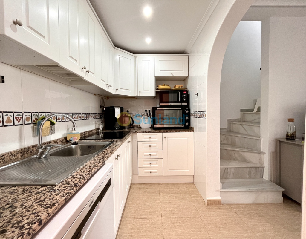 Bright and beautifully maintained 2-bedroom, 2-bathroom south-facing townhouse situated in the sought-after Sierra Golf resort. This charming home boasts a spacious underbuild offering endless possibilities — whether you're dreaming of a third bedroom, games room, home office, or extra storage. The sunny front terrace is perfect for morning coffees or evening drinks, soaking up the sunshine all day long thanks to its ideal orientation. Just a short 5-minute drive takes you into the lively town of Balsicas with its shops, restaurants, and train links, while the golden beaches of the Mar Menor and the vibrant Murcia city centre are both just 15 minutes away. Whether you're looking for a permanent home, a holiday escape, or a smart investment, this property ticks all the boxes in a peaceful golf-side setting.