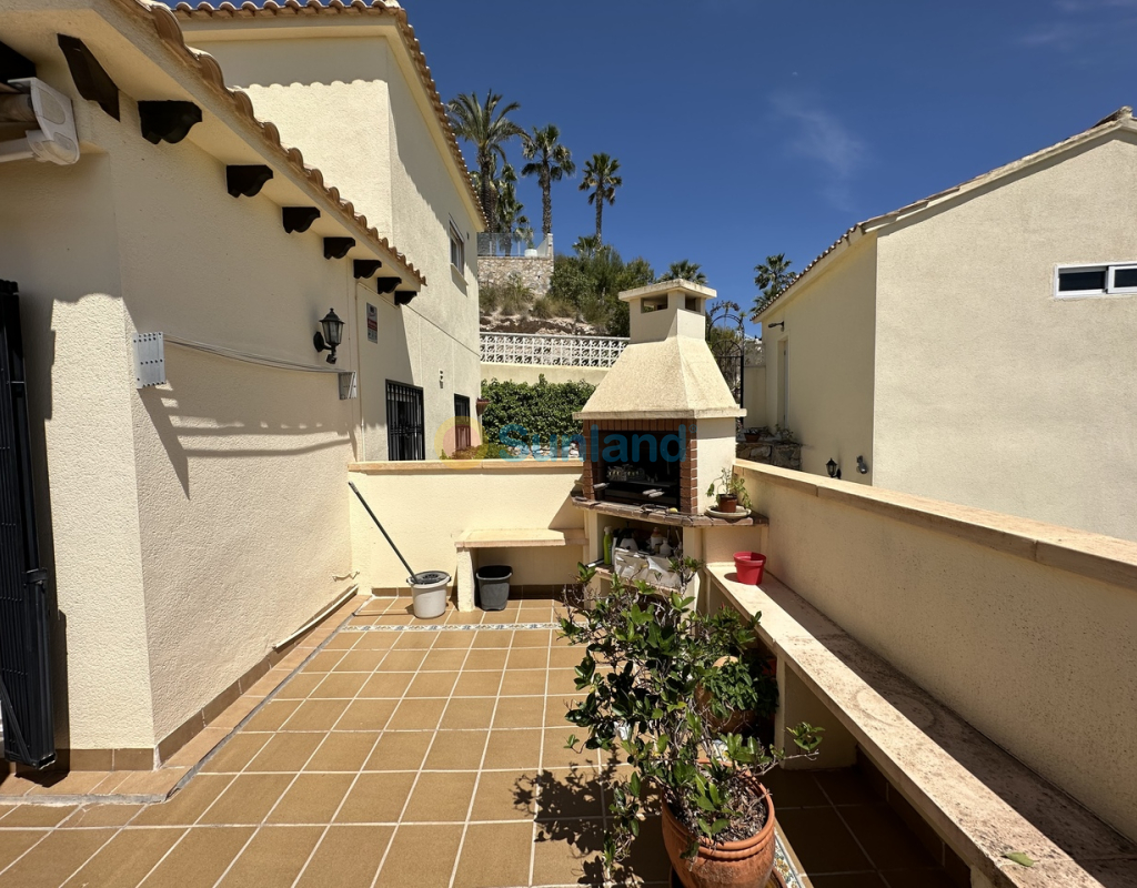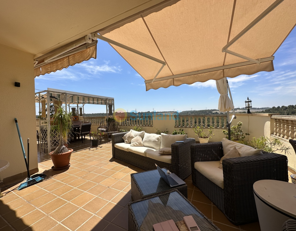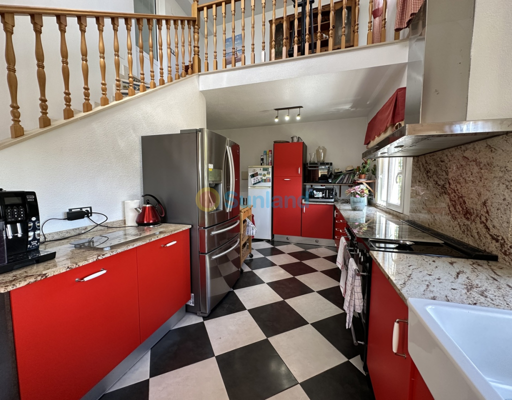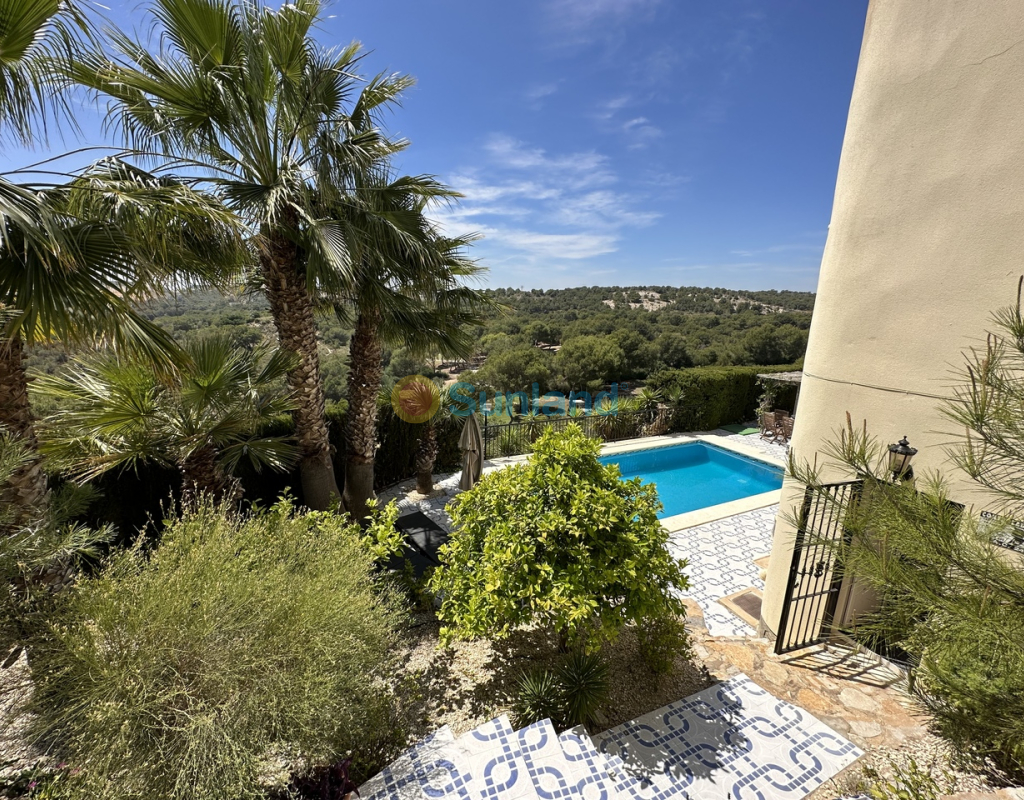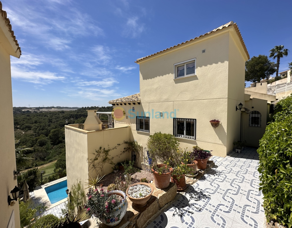 Immaculate villa for sale located with elevated, front-line views located at Las Ramblas golf resort. This impressive south facing property was designed so that every room boasts spectacular views across the golf course and pine forrest. On the main level of the property is a huge living room with seperate television and dining areas along with a guest toilet. There is an impressive fully equipped kitchen with vaulted ceiling and a staircase leading to an additional chill out area and a private office. From the living room there is access to a very sunny terrace, purpose built bbq and outdoor dining area with again more breathtaking views of the golf course. An internal staircase leads down to the master bedroom which had a private sun terrace, dressing room and double bathroom with a shower and bathtub. There are two additional guest bedrooms and a guest bathroom. The property also has a second lounge and living area with kitchen, bathroom and even a cocktail bar with direct access to the swimming pool and sunbathing deck. The property has been finished to a high quality and finished with many, many extras including private garage, air-conditioning, two fireplaces, mosquito nets, electric gates and alarm system.