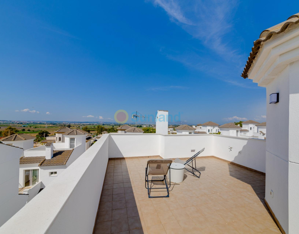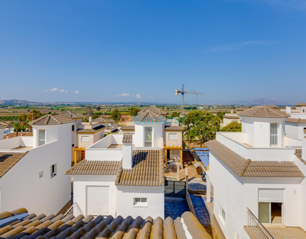 NEW BUILD RESIDENTIAL IN SAN FULGENCIO Residential complex of independent and semi-detached villas in San Fulgencio. The houses consist of 2-3 bedrooms, 3 bathrooms, living room and separate kitchen, 2 terraces on the ground floor, one terrace on the 2nd floor and a solarium on the roof. Each property has private garden and parking space. There is a large communal swimming pool. San Fulgencio is a comfortable and convenient area, known for its excellent infrastructure. In the immediate vicinity of cafes, restaurants, bars, pharmacies, 3 large supermarkets: Lidl, Aldi, Mercadona. Residential complex is located 10 minutes by car from the beach and also 10 minutes from the most famous in this area leisure and family center ¨La Marina Resort¨ with a water park, camping, gym, spa, restaurants, shops and cafes. Residential complex has a unique location – 30 minutes by car from the airport, 40 minutes from the city of Alicante and 20 minutes from the city of Torrevieja.
