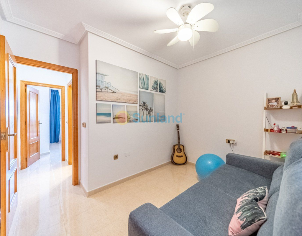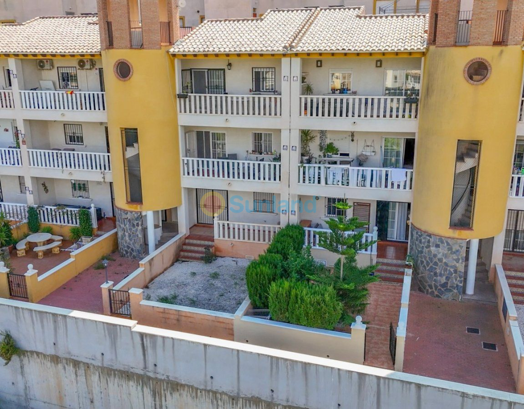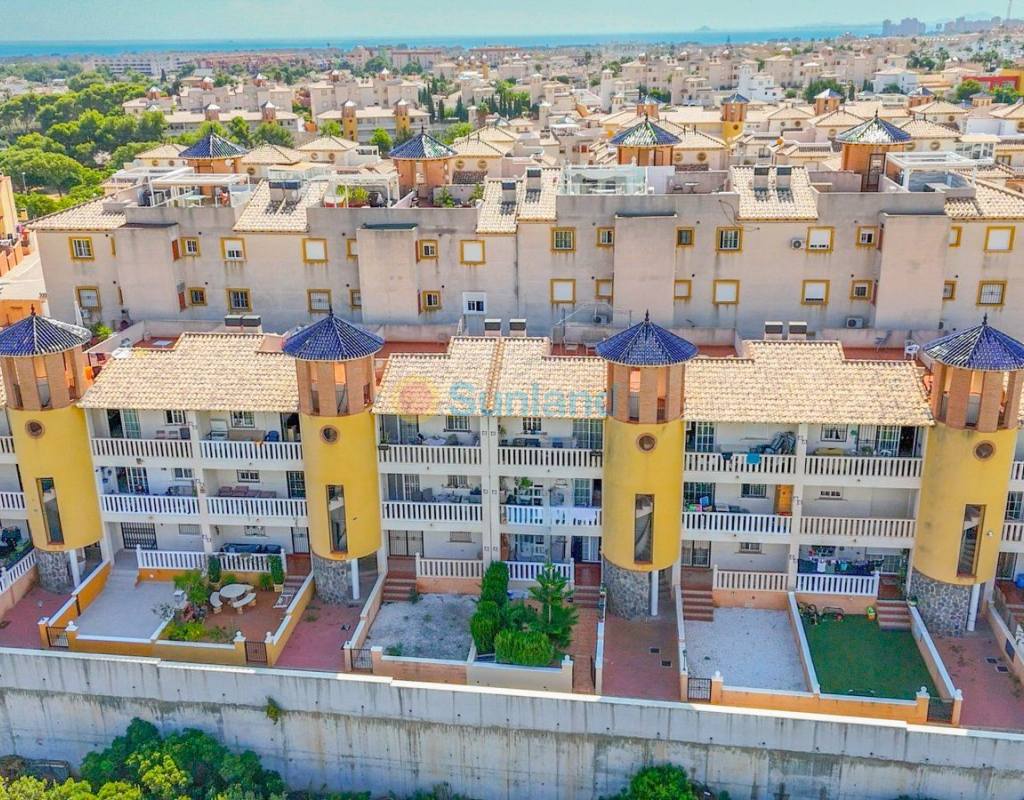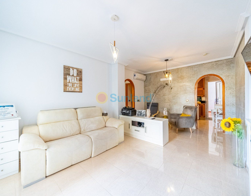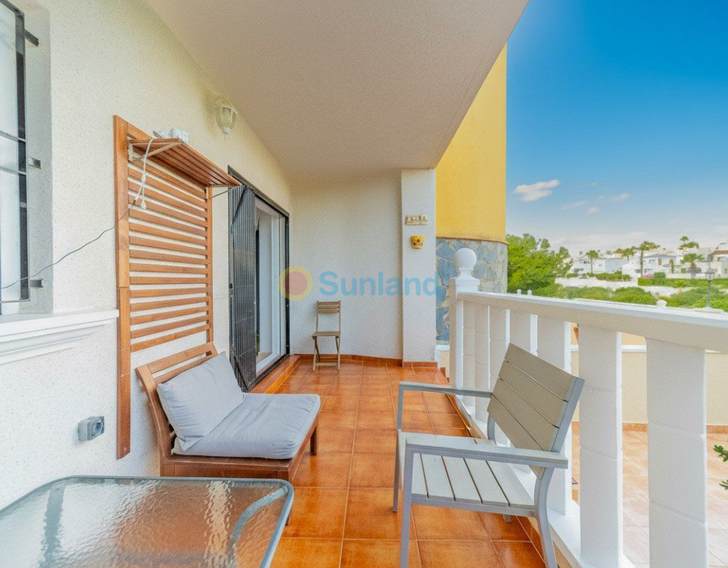 For sale: 2-bedroom bungalow with a 36 m² paved plot featuring a subtropical garden with canaries, located in a condominium with swimming pool and private parking. The bungalow is situated in the Lomas Cabo Roig area, on Castillo del Río street in Orihuela Costa, Alicante province, Spain. A quiet, picturesque location with views of the park and the sea. Nearby you will find the English supermarket Iceland, cafés and small shops. The bungalow offers 75 m² of built area, a 36 m² garden plot, an interior patio-laundry room of 19 m², and a 15 m² terrace at the entrance. Built in 2005. Layout: living room with separate kitchen and patio, 2 bedrooms and a full bathroom. For sale in excellent condition, no renovation needed, with furniture and household appliances