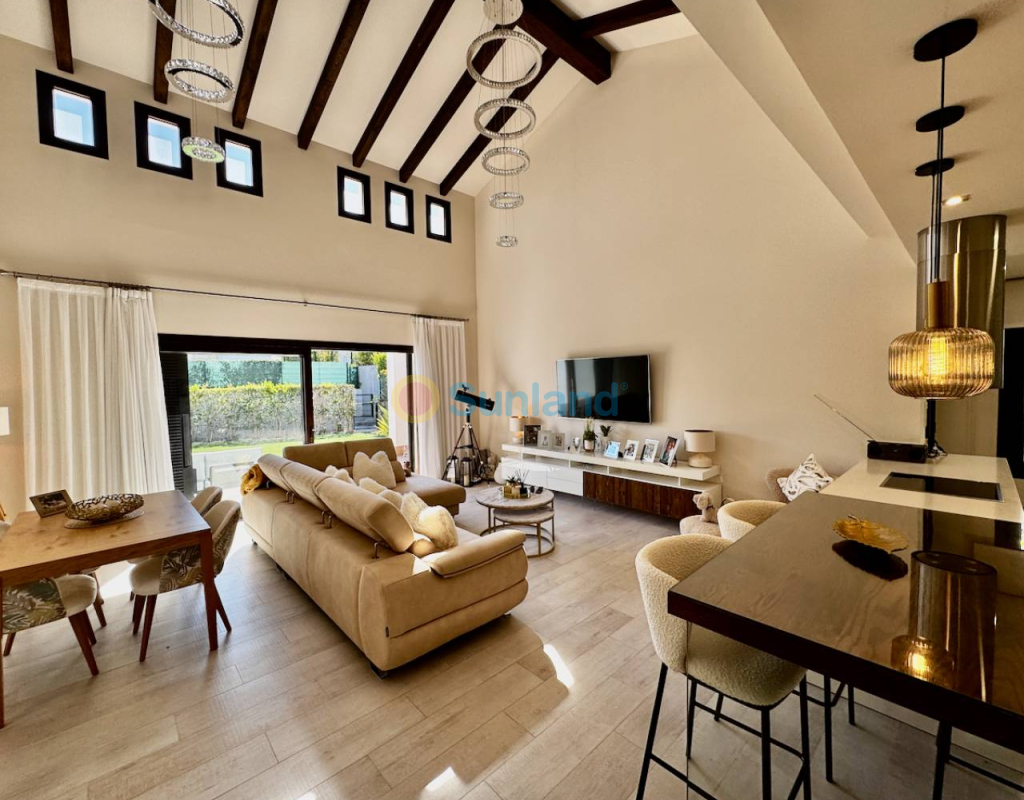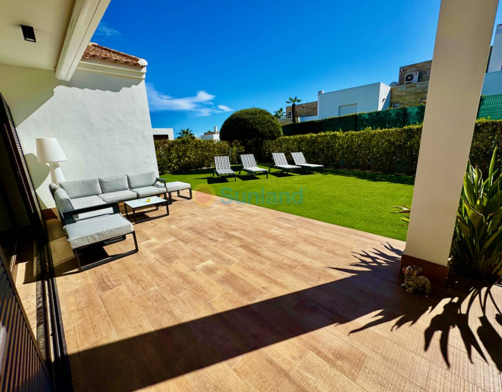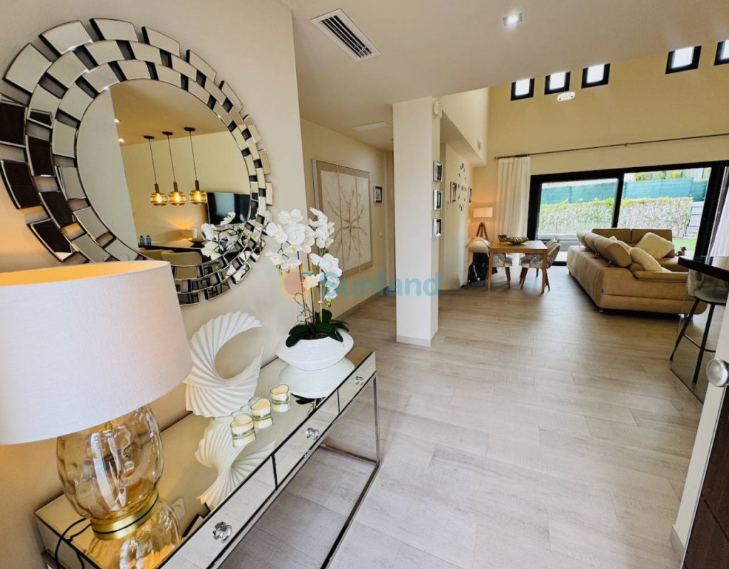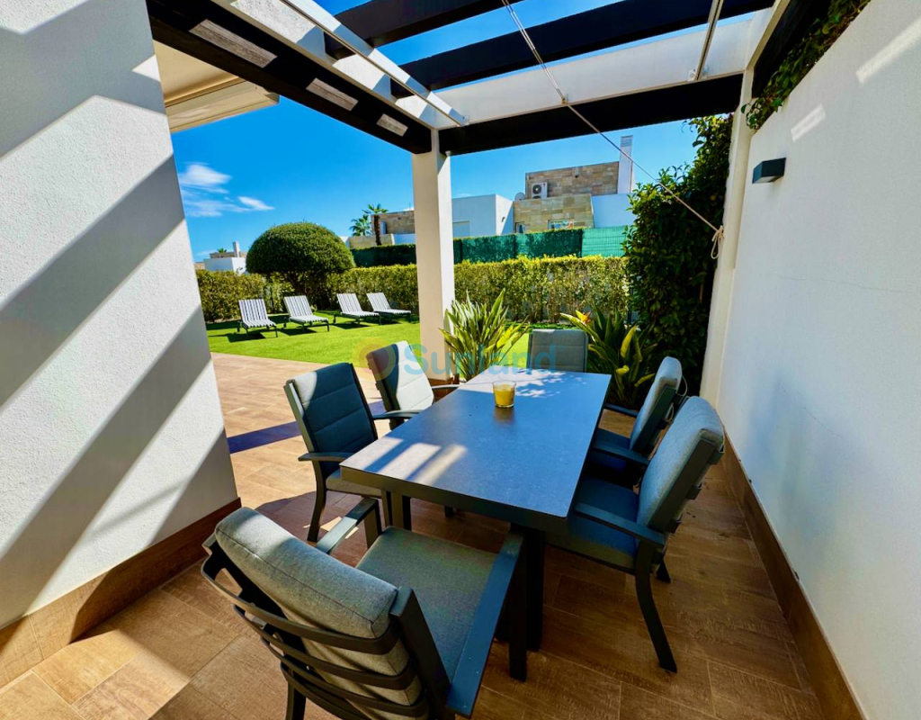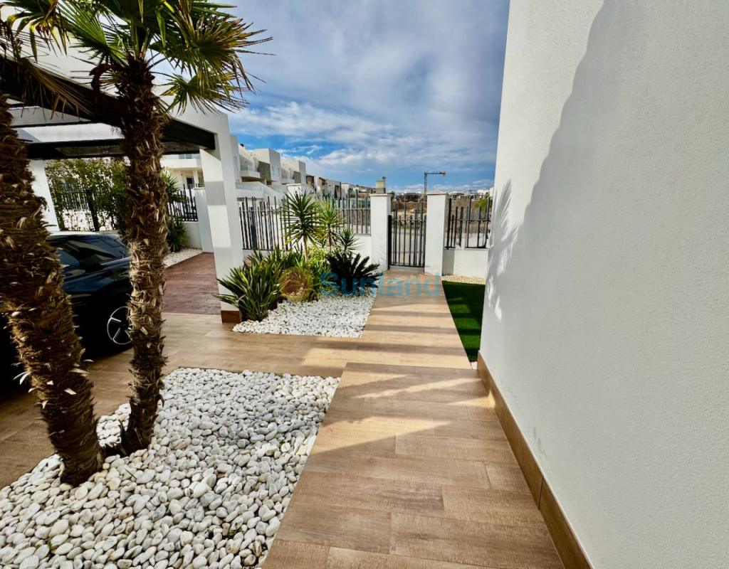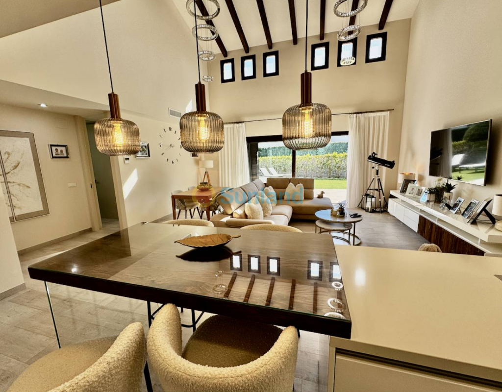 South-Facing Contemporary 3-Bedroom Villa on La Finca Golf Resort This impressive south-facing detached villa is located on the prestigious 5* La Finca Golf Resort, just a couple of minutes’ drive from a great selection of bars, restaurants, and shops. The charming village of Algorfa is only five minutes away, while the popular towns of Almoradí, Quesada, and Benijófar can be reached within 10 minutes. The stunning beaches of the Costa Blanca South are just a 20-minute drive, offering the perfect blend of countryside tranquility and coastal convenience. Built in 2017, this stylish 127m² villa showcases a contemporary design and high-quality finishes throughout. The open-plan living area is bright and inviting, featuring a vaulted beamed ceiling and large sliding glass doors that flood the space with natural light. The dining area connects seamlessly to a sleek, modern fitted kitchen with a breakfast bar and separate utility room. The property offers three double bedrooms, each with built-in wardrobes, including a luxurious master suite with access to a private terrace and an elegant en-suite shower room. A beautifully finished family shower room completes the interior. Set on a generous 448m² low-maintenance plot, the exterior includes a partly covered terrace ideal for outdoor dining, an artificial grass area, off-road parking, and a carport. The villa also benefits from air conditioning, an irrigation system, and access to two stunning communal pools, perfect for relaxing under the Spanish sun. This is a truly exceptional home on one of the most sought-after resorts on the Costa Blanca South—ideal for permanent living, a luxurious holiday retreat, or a superb investment opportunity.