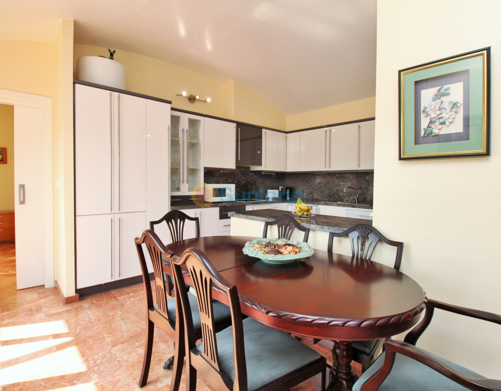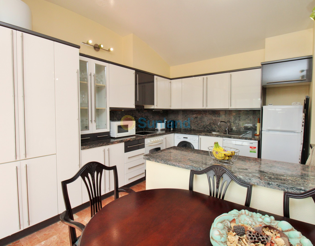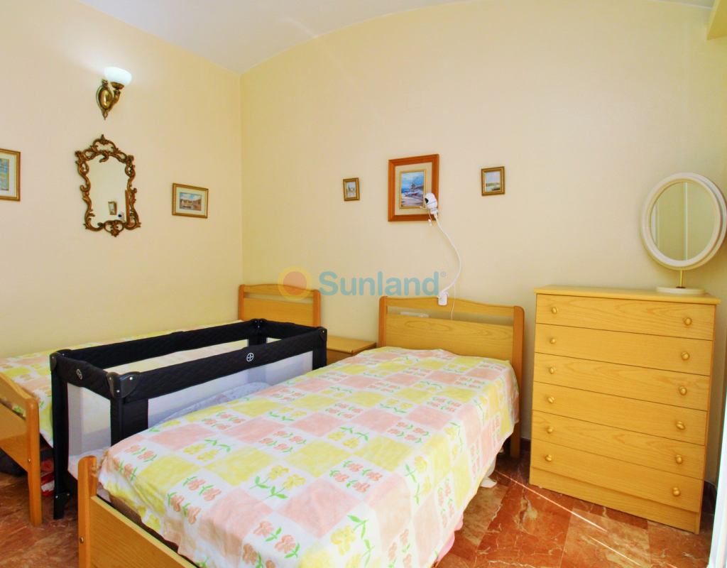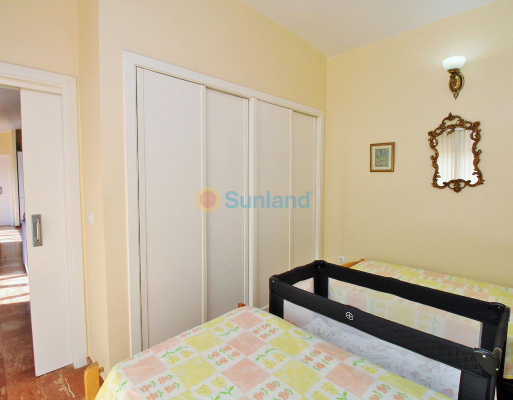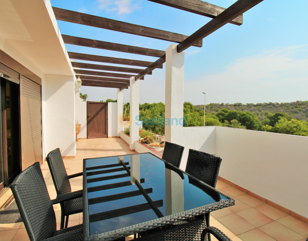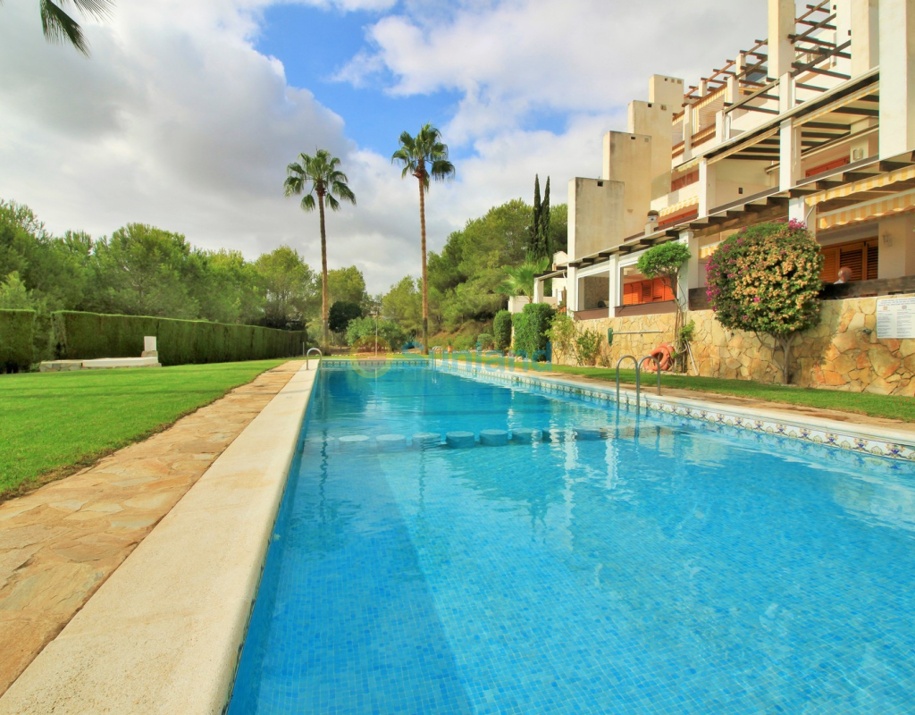 A rare opportunity to purchase a spectacular 2-bedroom apartment for sale in the prestigious Los Claveles complex within the Las Ramblas Golf Resort, just a short stroll from the popular La Fuente commercial centre. This impressive property offers generous living space and wonderful panoramic views over the golf course. The large front terrace spans the entire width of the apartment — perfect for outdoor dining or relaxing in the sun. Apartments of this quality and position rarely come to market, making early viewing essential. The interior comprises a bright and spacious lounge-dining area with an open-plan American-style kitchen, two double bedrooms with fitted wardrobes, and a family bathroom. The master bedroom benefits from an en-suite with a walk-in shower and direct access to the terrace. At street level, the property includes a private garage with an additional bedroom and en-suite bathroom — ideal for guests or as a hobby room. Residents enjoy access to a beautifully maintained communal pool and garden areas. The property is sold fully furnished with white goods and air-conditioning, ready to move into. An exceptional home in one of Las Ramblas’ most sought-after locations — equally suited as a permanent residence, holiday retreat, or investment.