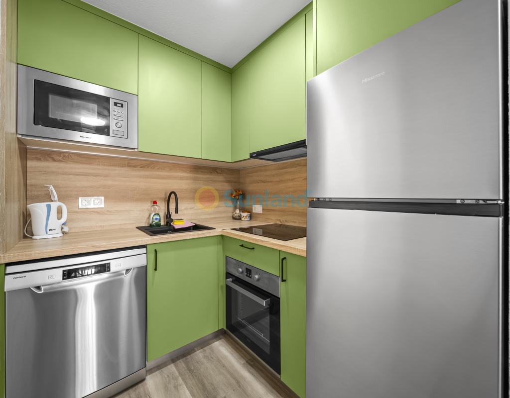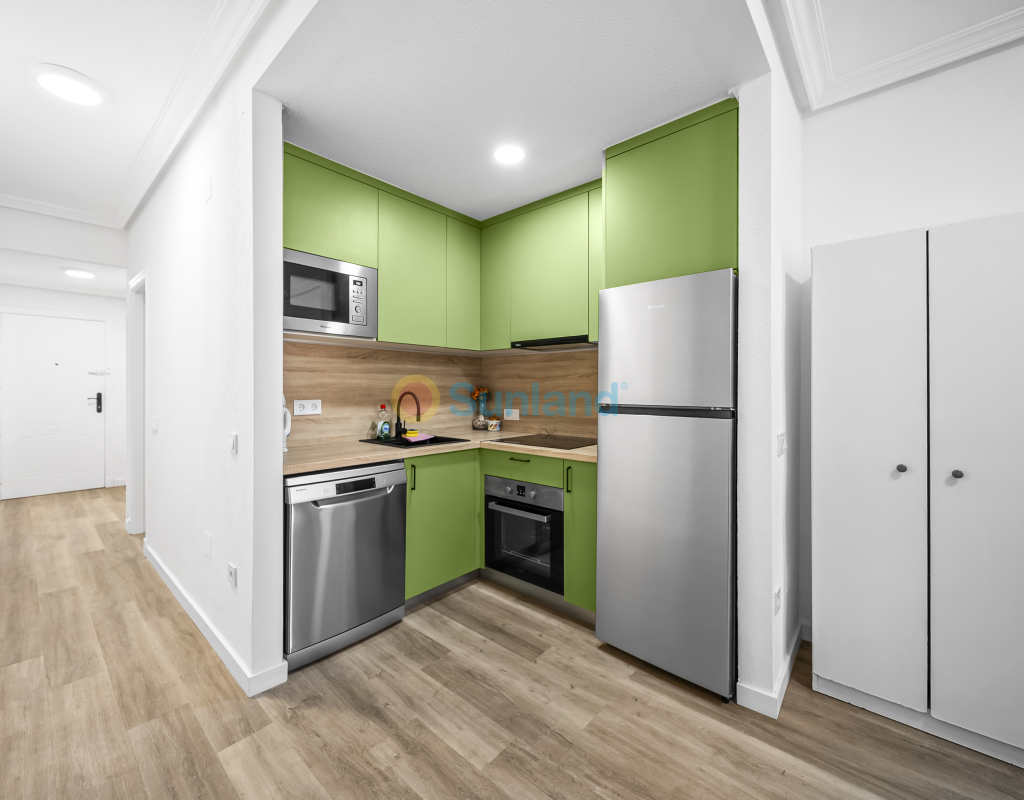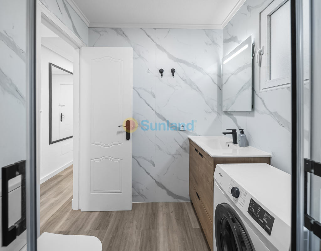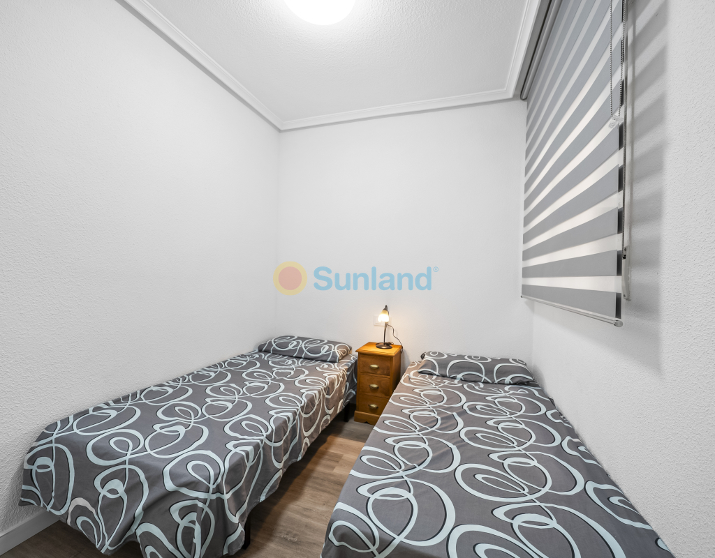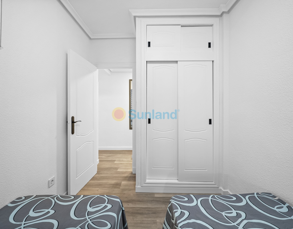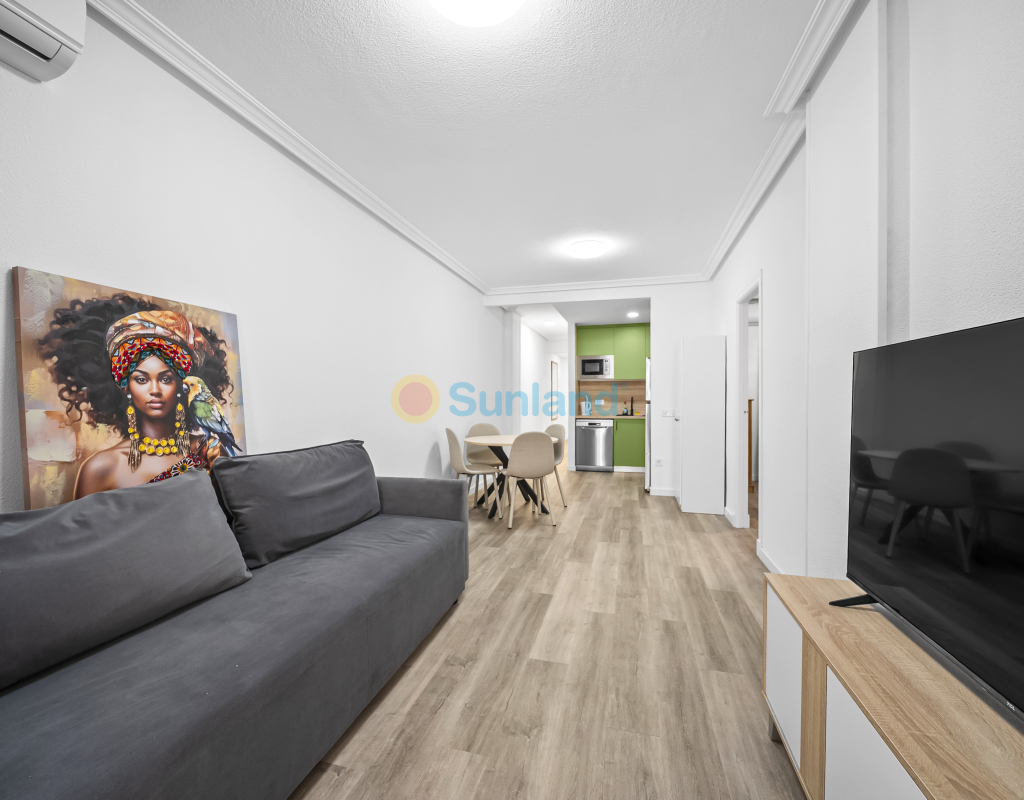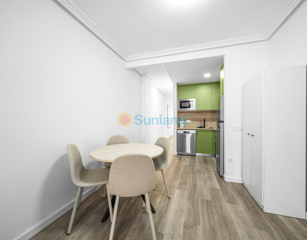 Renovated apartment 300 m from the beach in central Torrevieja. Fully renovated in 2025, this apartment is located on the first floor of a well-located building, just 300 metres from Playa del Cura. It features 2 bedrooms, 1 bathroom, and is sold furnished with appliances included. East-facing. Key features 2 bedrooms 1 bathroom First floor Appliances included Furnished East orientation Year of construction: 1999 Renovated in 2025 Annual costs IBI: €200 Community fees: €360 Location 300 m from Playa del Cura 300 m from Mercadona supermarket 300 m from bars, restaurants and shops 800 m from La Loma Health Centre
