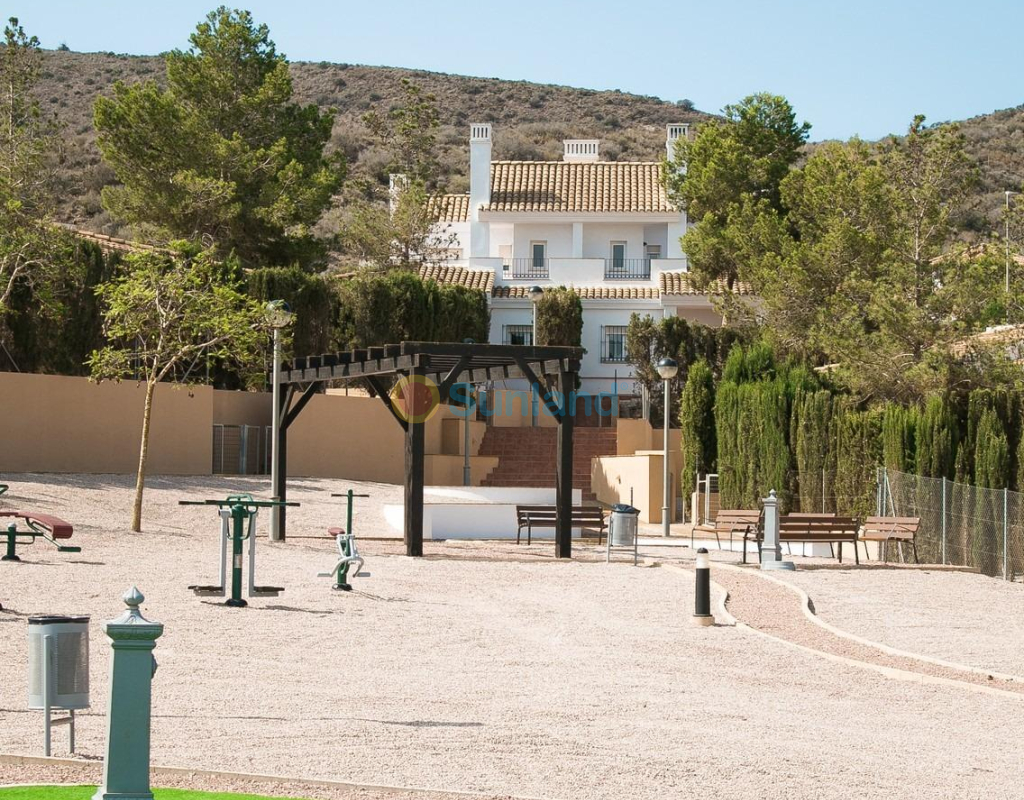 KEY READY TOWNHOUSES IN FUENTE ALAMO, MURCIA Residential of townhouses, independent and semi-detached villas in Fuente Álamo, Murcia. There are seven different models of houses to choose from, designed to suit everyone’s taste. Rustic designs combined with top quality materials and a focus on comfortable living space there is something for everyone. The residents of this private community of beautiful, spacious homes will also be able to enjoy their own communal gardens and swimming pools. This unusual design townhouses has 2 bedrooms and 1 bathroom, independent kitchen, living room with patio doors leading onto the covered porch. An options for a private pool at an extra cost. Fuente Álamo de Murcia is a town and municipality in the Region of Murcia, southern Spain. It is situated 22 km northwest of Cartagena and 35 km south west of Murcia. The town lies in the basin of the Mar Menor surrounded by the mountains of Algarrobo, Los Gómez, Los Victorias and the Carrascoy. The water from these mountains flows down into the Rambla de Fuente Álamo and then onto the Mar Menor. Fuente Álamo located 30 minutes from Murcia - Corvera airport.