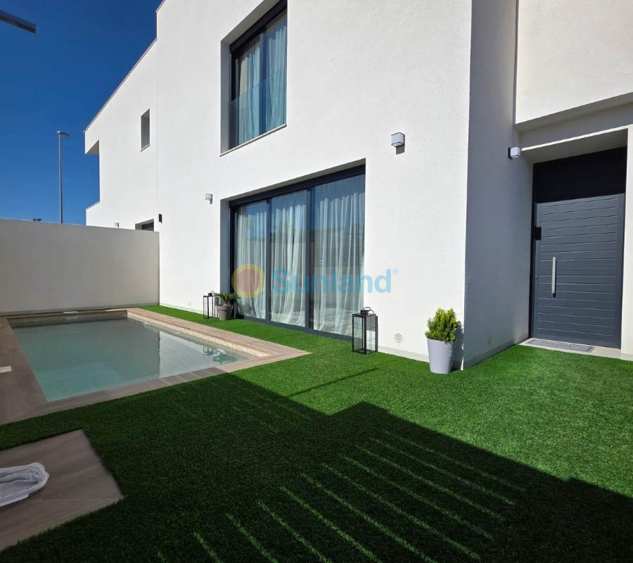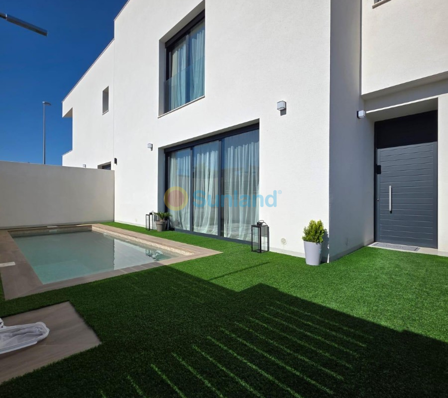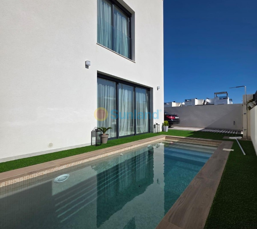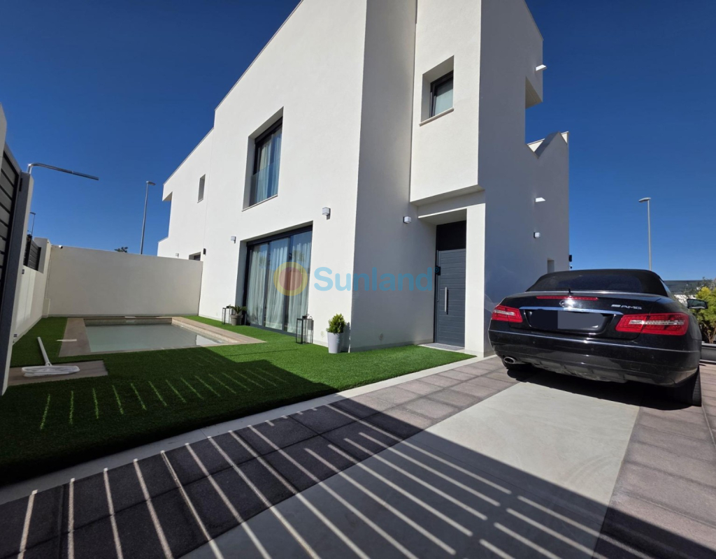 Descubra esta acogedora villa independiente de diseño contemporáneo, construida en 2024 y ubicada en una tranquila zona residencial de Benijófar, a tan solo 5 minutos de Ciudad Quesada. Esta exclusiva propiedad se asienta sobre una parcela privada de 147 m² y se distribuye en dos plantas cuidadosamente diseñadas para ofrecer confort, estilo y funcionalidad. En la planta baja encontrará un amplio salón-comedor inundado de luz natural gracias a sus grandes ventanales con acceso directo a la terraza y al jardín. La cocina abierta, totalmente equipada, combina modernidad y practicidad, y se complementa con un aseo y un trastero. La planta superior alberga dos dormitorios dobles con armarios empotrados y un elegante baño con ducha italiana. Desde aquí se accede a un solárium privado, ideal para disfrutar del sol, las vistas panorámicas y el clima privilegiado del Mediterráneo. El exterior ofrece una espectacular zona ajardinada con vegetación mediterránea, una encantadora piscina privada con lámina de agua de 12,60 m², espacio de barbacoa y aparcamiento en parcela privada con acceso directo desde la calle. Totalmente amueblada, con aire acondicionado por conductos y acabados de alta calidad, esta villa representa una oportunidad única para quienes buscan una segunda residencia o una inversión en una de las zonas con mayor proyección de la Costa Blanca. A solo 15 minutos de las playas de Guardamar y La Mata, y a escasos 10 minutos de los prestigiosos campos de golf de La Marquesa. Un refugio de tranquilidad y elegancia a pocos pasos de todo. Clima: El clima en la Costa Blanca, a menudo considerado como el mejor de Europa, hace posible un estilo de vida muy sociable y saludable,  al aire libre, marcado por numerosas instalaciones deportivas y de ocio, con ciudades turísticas, excitantes y cosmopolitas, que destacan por la prestación de servicios máxima categoría, algunos de ellos exclusivos, considerados de auténtico lujo. Todos ellos destinados a un cliente exigente, que busca calidad y cercanía. La Costa Blanca cuenta con más de 300 días de sol al año. Un paraíso con excelentes conexiones a toda Europa. El Aeropuerto de Alicante-Elche cuenta con unas modernas instalaciones y con un fácil y cómodo acceso desde cualquier punto de la provincia. Entorno: La Costa Blanca sigue atrayendo a personas de toda Europa, y de otros lugares del mundo,  porque ofrece una calidad de vida única en un hermoso entorno a orillas del mar Mediterráneo, rodeado de montañas y de una exuberante vegetación. Además de los campos de golf y los puertos deportivos que podrás disfrutar por toda la costa, la zona también ofrece la posibilidad de esquiar en la cercana Sierra Nevada, Javalambre o Valdelinares, unos  paraísos para amantes de los deportes de invierno, con hermosos paisajes naturales. La Costa Blanca ofrece un estilo de vida singularmente rico, donde las mejores playas y calas del Mediterráneo se combinan con un interior repleto de montañas y pueblos que esconden cultura y monumentos históricos únicos en el mundo. Tenemos un regalo para ti:   Desde nuestra agencia inmobiliaria le ayudamos a convertir su nueva propiedad en la casa de tus sueños, regalándole una visita técnica del departamento de diseño a la vivienda, donde nuestro equipo técnico le aconsejará sobre las posibilidades de mejora y decoración de su propiedad. Totalmente gratis!!   IMPORTANTE!! Recuerda que nuestros servicios NO incrementan NUNCA el precio final de la vivienda a nuestros clientes. Nuestra experiencia en el sector nos convertirá en tu aliado, un asesor de confianza que te ayudará a elegir la casa de tus sueños en la mejor zona, informarte sobre el precio de mercado de los inmuebles en los que estás interesado, las calidades empleadas...todo la información imprescindible y objetiva para que tu experiencia sea totalmente satisfactoria. Nuestra empresa pertenece a un grupo  de empresas consolidadas y especializadas todas ellas en el sector del hogar; arquitectura, interiorismo, mobiliario, asesoramiento en la compra venta de bienes raíces etc... Estos recursos propios nos permiten ofrecer unos servicios únicos y exclusivos a nuestros clientes.