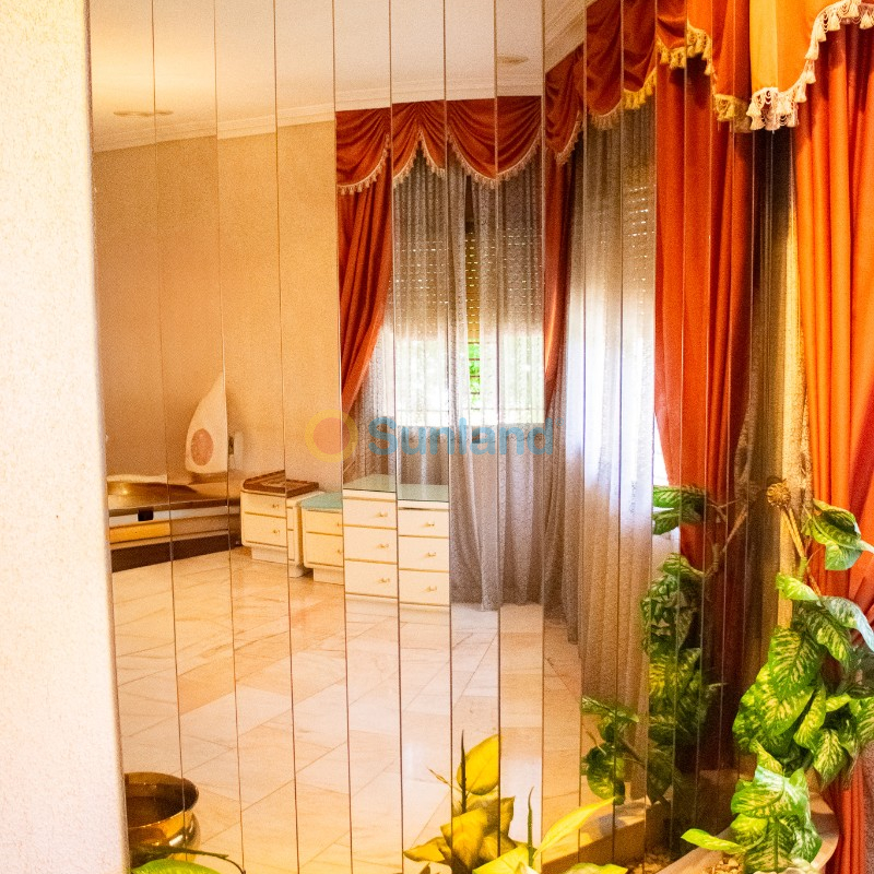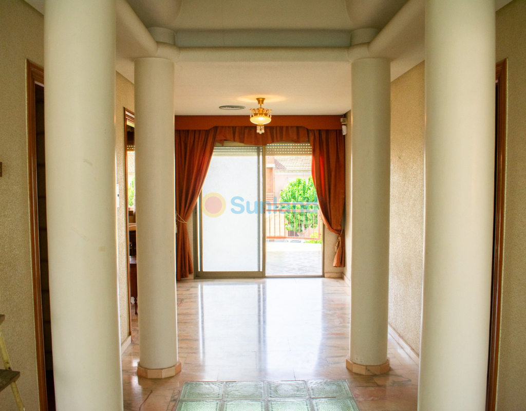 En el corazón de Llano de Brujas, en una ubicación privilegiada paralela a la parroquia y a solo 10 minutos de la ciudad de Murcia, se encuentra esta imponente villa independiente construida en 1983 con 501 m² totales y 456 m² de vivienda. Diseñada y construida a medida por un promotor para su propio uso, esta propiedad destaca por la calidad de sus materiales: columnas elegantes, piedra natural, mármol de primera calidad y detalles arquitectónicos exclusivos que dotan a la vivienda de un carácter único. La casa requiere una reforma en las instalaciones de luz y agua, pero conserva una estructura sólida y espacios majestuosos llenos de luz natural gracias a sus amplios ventanales y a una vitrina que conecta la planta baja con el primer piso. Distribuye sus estancias en 6 habitaciones (actualmente adaptadas como biblioteca, salita, comedor y dormitorios), 3 baños completos, y un sótano de grandes dimensiones que fue utilizado como bodega e incluye aseo adicional. El exterior no se queda atrás: una terraza perimetral rodea toda la vivienda, aportando amplitud y elegancia, mientras que en el jardín encontramos una barbacoa de piedra, cochera, árboles frutales y un pequeño huerto, perfectos para disfrutar del clima mediterráneo en un entorno tranquilo y residencial. Una propiedad con gran potencial, ideal para quienes buscan una casa exclusiva para reformar a su gusto, en un enclave estratégico a solo 10 minutos del centro de Murcia. Clima:  El clima en la Costa Cálida, a menudo considerado como el mejor de Europa, hace posible un estilo de vida muy sociable y saludable,  al aire libre, marcado por instalaciones deportivas y de ocio, con ciudades turísticas, excitantes y cosmopolitas, que destacan por la prestación de servicios máxima categoría, algunos de ellos exclusivos, considerados de auténtico lujo. Todos ellos destinados a un cliente exigente, que busca calidad y cercanía.   La Costa Cálida cuenta con más de 300 días de sol al año. Un paraíso con excelentes conexiones a toda Europa. El Aeropuerto de San Javier cuenta con unas modernas y amplias instalaciones, y con un fácil y cómodo acceso desde cualquier punto de la provincia.  Entorno:   San Javier es un municipio español de la Región de Murcia situado en la zona norte del Mar Menor. Pertenecen a él las localidades costeras de Santiago de la Ribera y la parte central y norte de la Manga del Mar Menor. Las playas están situadas en la pedanía de Santiago de la Ribera (que forma un continuo urbano con el pueblo de San Javier) y La Manga del Mar Menor desde el kilómetro 4 hasta el final de la misma, en la zona conocida como Veneziola. Ofrece infinitas posibilidades a los amantes de la vela, el esquí acuático y el wakeboard para los que adoran la versión acuática de deportes de nieve, así como el windsurf para quienes busquen la libertad de giro y la inmediatez. Por su importancia geológica y ecológica, el municipio de San Javier cuenta con varios espacios protegidos de gran valor medioambiental. Y la gastronomía del municipio de San Javier se basa en tres ingredientes principales :  los pescados, las frutas, y las verduras de esta tierra. La Costa Cálida sigue atrayendo a personas de toda Europa, y de otros lugares del mundo, porque ofrece una calidad de vida única en un hermoso entorno a orillas del Mar Menor, rodeado de montañas y de una exuberante vegetación.  Además de los campos de golf y los puertos deportivos que podrás disfrutar por toda la costa, la zona también ofrece la posibilidad de esquiar en la cercana Sierra Nevada, Javalambre o Valdelinares, unos  paraísos para amantes de los deportes de invierno, con hermosos paisajes naturales. La Costa Cálida ofrece un estilo de vida singularmente rico, donde las mejores playas y calas del Mediterráneo se combinan con un interior repleto de montañas y pueblos que esconden cultura y monumentos históricos únicos en el mundo.  Tenemos un regalo para ti:  En nuestra agencia le ayudamos a convertir su nueva propiedad en la casa de tus sueños, regalándole una visita técnica de la vivienda, donde nuestro equipo técnico le aconsejará sobre las posibilidades de mejora de su vivienda. Totalmente gratis!!  Creemos que tu confianza merece un trato excepcional.  IMPORTANTE!! Recuerda que nuestros servicios NO incrementan NUNCA el precio final de la vivienda a nuestros clientes. Nuestra experiencia en el sector nos convertirá en tu aliado, un asesor de confianza que te ayudará a elegir la casa de tus sueños en la mejor zona, informarte sobre el precio de mercado de los inmuebles en los que estás interesado, las calidades empleadas...todo la información imprescindible y objetiva para que tu experiencia sea totalmente satisfactoria.   Nuestra inmobiliaria pertenece a un grupo  de empresas consolidadas y especializadas todas ellas en el sector del hogar; arquitectura, interiorismo, mobiliario, asesoramiento en la compra venta de bienes raíces, etc... Estos recursos propios nos permiten ofrecer unos servicios únicos y exclusivos a nuestros clientes.
