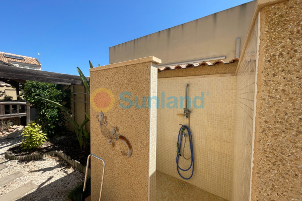 En una ubicación de esquina y rodeada de vegetación, esta propiedad destaca por su cuidado jardín y su acogedor cenador de bambú. El terreno ofrece espacio suficiente para estacionar una autocaravana, caravana o remolque junto a un coche familiar… o, si lo prefieres, para instalar tu propia piscina privada.