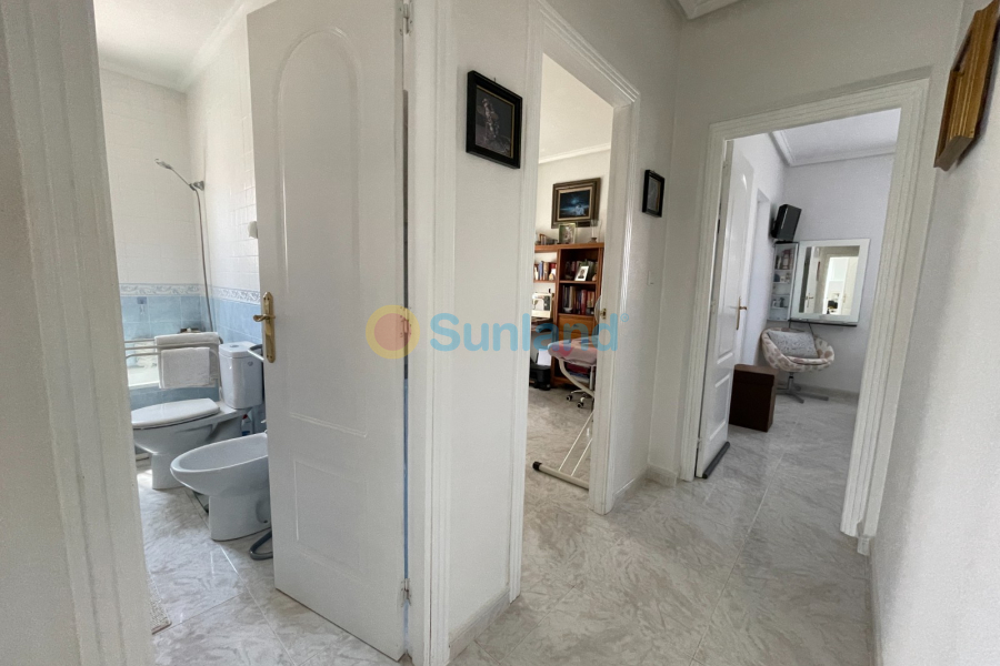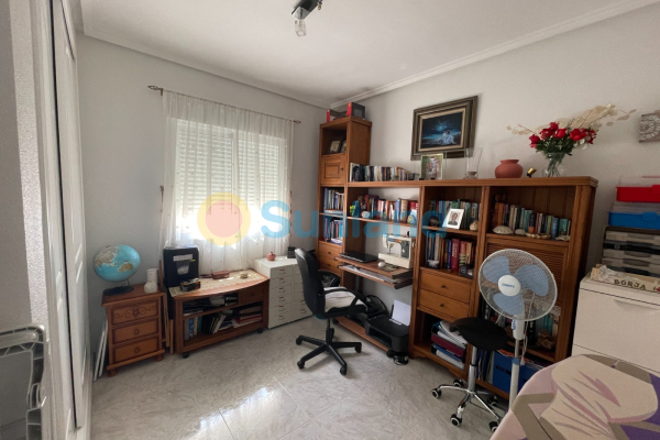 La vivienda principal dispone de tres dormitorios —uno de ellos adaptado como despacho o zona de teletrabajo— y dos baños completos.