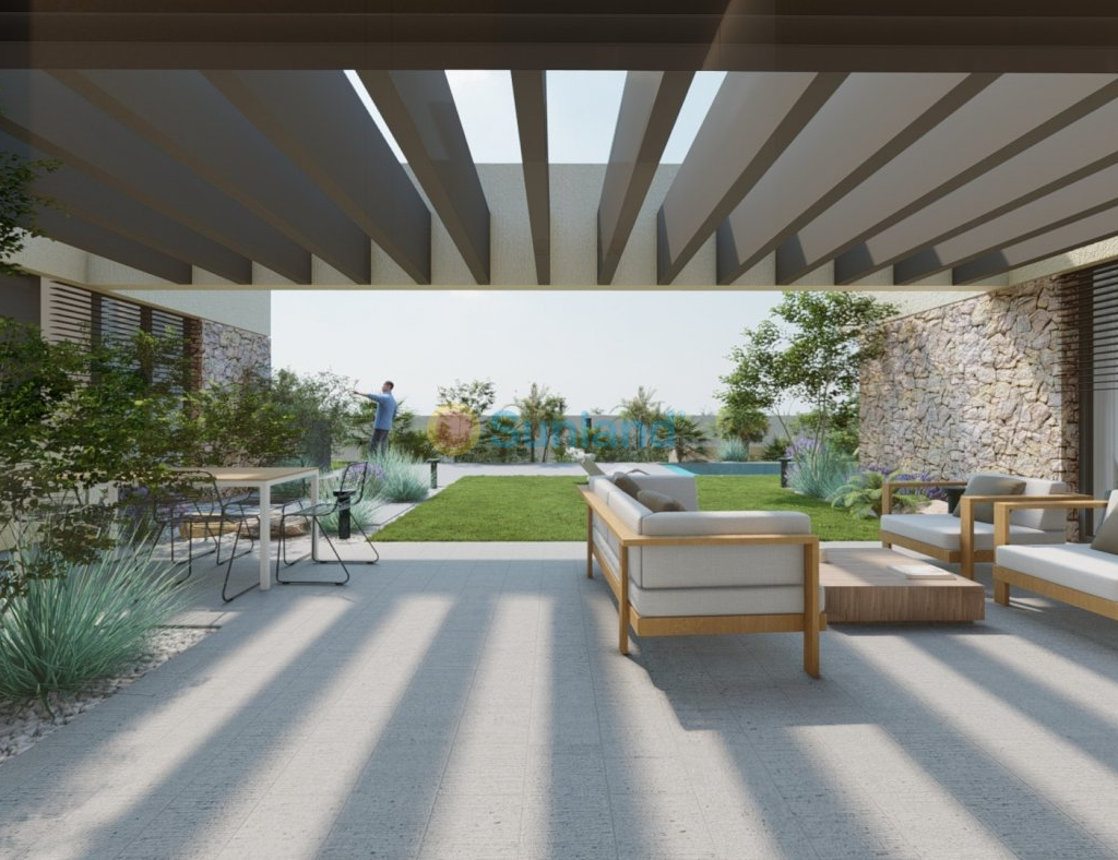 VILLAS DE OBRA NUEVA EN ALTOANA GOLF RESORT, MURCIA Residencial de nueva construcción de hermosas villas en Altaona Golf resort, Murcia. La villa tiene 4 dormitorios, 3 baños, cocina abierta con la zona del salón abd acceso directo al jardín con piscina privada y plaza de aparcamiento. Las villas están diseñadas específicamente para proporcionar vistas interminables del campo de golf, los lagos y el campo lejano, desde el interior o el exterior. Los jardines y las terrazas orientadas al sur permiten disfrutar del cálido sol de invierno, y las amplias ventanas de cristal ofrecen vistas adicionales de la región desde la comodidad del interior. Las villas se han diseñado para maximizar el confort, la privacidad y la eficiencia. Se han colocado plantas autóctonas en los tejados para crear la sensación de otro espacio natural Ubicados en un entorno privilegiado donde vivir tranquilamente, en contacto con la naturaleza y la montaña, se consigue calidad de vida, aire puro y espacios abiertos. Exclusivo residencial de Obra Nueva situado en Altaona Golf a tan solo 15 minutos en coche del centro de Murcia capital y a 15 minutos de las playas se puede disfrutar de la tranquilidad y seguridad que ofrece el Campo de Golf que cuenta con 18 hoyos y la comodidad de vivir cerca de todos los servicios. El amplio complejo cuenta con todo tipo de servicios como centro comercial, pistas de tenis, pádel y baloncesto. La puerta de entrada está siempre dotada de personal, lo que convierte a Altaona en un lugar donde los niños pueden jugar al aire libre sin peligro. En total, unas 500 viviendas conforman el complejo turístico de Altaona, repartidas en una superficie de 3,6 millones de m2. He aquí algunos aspectos destacados de la zona: - El centro de Murcia: 15 minutos. - La playa: 20 minutos. - Aeropuerto de Corvera: 20 minutos. - Aeropuerto de Alicante: 45 minutos. - Centro Comercial (La Alberca): 8 minutos. - Hospital: 10 minutos.