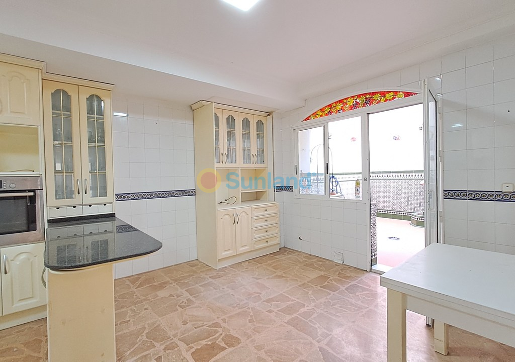 Enorme y espectacular apartamento ubicado en el centro de Torrevieja. Compuesto por 5 dormitorios y 2 baños, este apartamento tiene un buen potencial. Puede encontrar alrededor de la propiedad muchas tiendas, bares y está a poca distancia andando de la playa. Hay un gran salón con chimenea y acceso a la terraza donde hay vistas urbanas y donde es posible ver el carnaval, las procesiones de Semana Santa y muchos eventos que transcurren en una de las calles más céntricas de la ciudad. En este apartamento podemos encontrar una gran cocina con un patio muy bonito con estilo andaluz. También hay una habitación para una despensa. Todos los dormitorios tienen armarios empotrados y el dormitorio principal tiene baño en suite.