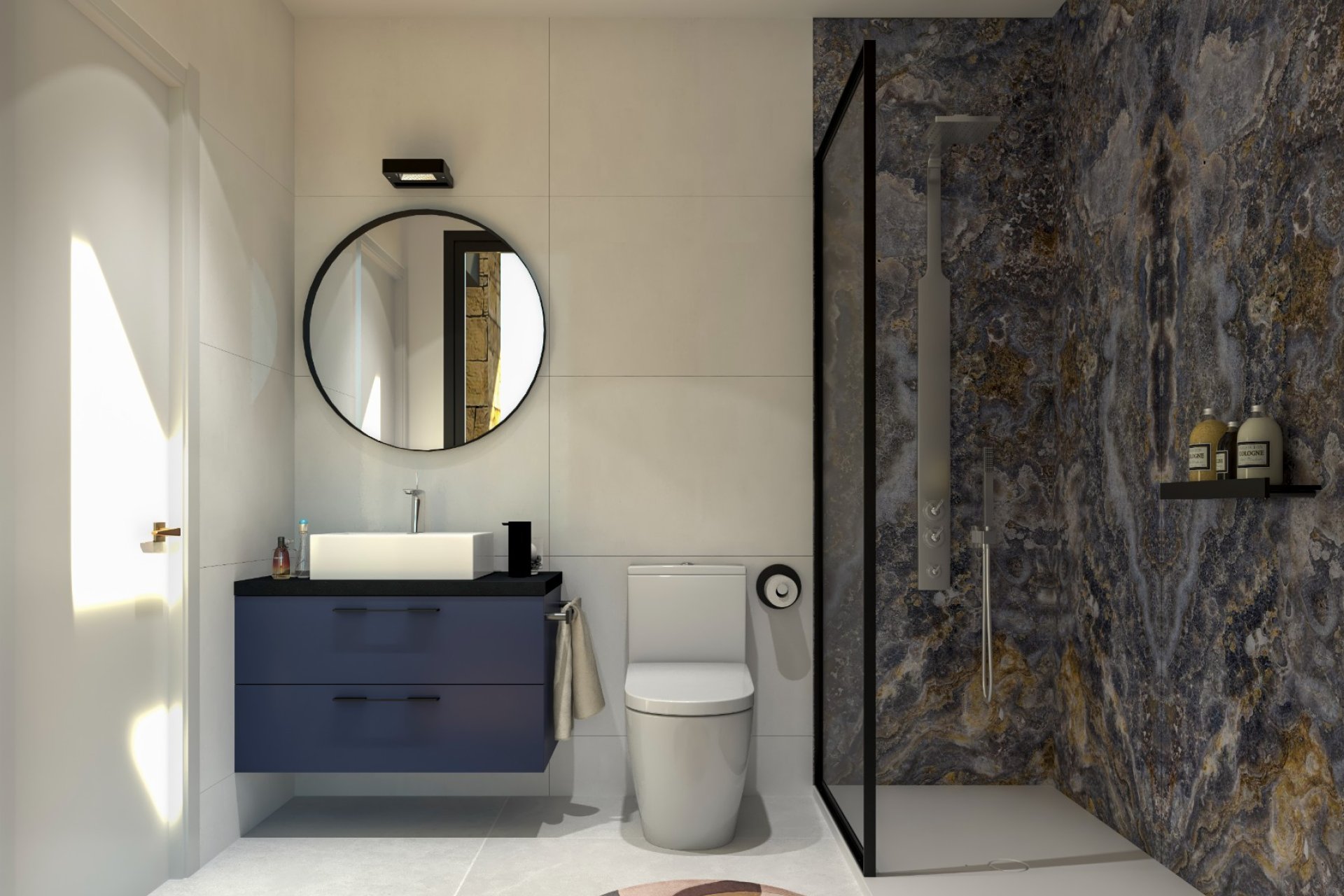Las Villas disponen de terraza con jardín, 3 dormitorios. 3 baños, solárium (opcional), preinstalación de aire acondicionado, puerta blindada, aparcamiento Interior, piscina privada y vistas espectaculares.