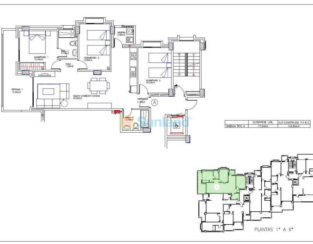 BEL APPARTEMENTS VUE MER A LA MANGA Cette urbanisation est située dans la plus grande zone d'expansion de La Manga. Dans cette nouvelle urbanisation, les maisons ont été conçues pour profiter de chaque coin de la maison, ainsi que du soin apporté au choix des matériaux et de leur conception. Appartements avec porte d'entrée blindée et portes laquées en blanc avec ferrures en acier inoxydable. Stores blancs monoblocs et double vitrage avec chambre à air. Dans la chambre parentale un placard encastré à portes coulissantes, avec une étagère séparatrice en mezzanine, un bar et une commode à trois tiroirs. Cuisine avec meubles hauts et bas, en blanc, poignée de type gola, évier simple avec égouttoir, plaque vitrocéramique, four électrique et hotte aspirante. Pré-installation de la climatisation (froid et chaud) par conduits avec disposition de zonage des pièces. La Manga del Mar Menor est une bande de terre naturelle entourée de deux mers, la Mar Menor et la mer Méditerranée. A cette rareté s'ajoutent les multiples possibilités de loisirs et temps libres, restaurants, supermarchés, centres médicaux, pharmacies, centres de sports nautiques, terrains de golf. La Manga est située sur la côte nord de la Costa Calida et est une destination de vacances populaire pour les touristes. L'étroite bande de terre séparant le lagon chaud et la mer plus froide a un microclimat unique. C'est l'une des régions les plus exotiques d'Espagne. L'aéroport de Corvera est à environ 1 heure de route et l'aéroport d'Alicante à environ 2 heures.