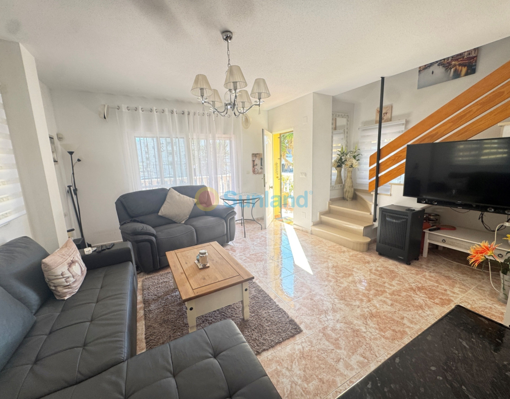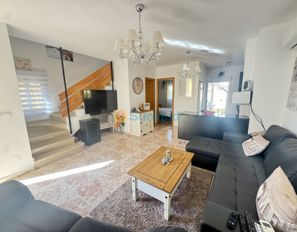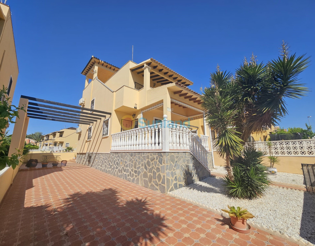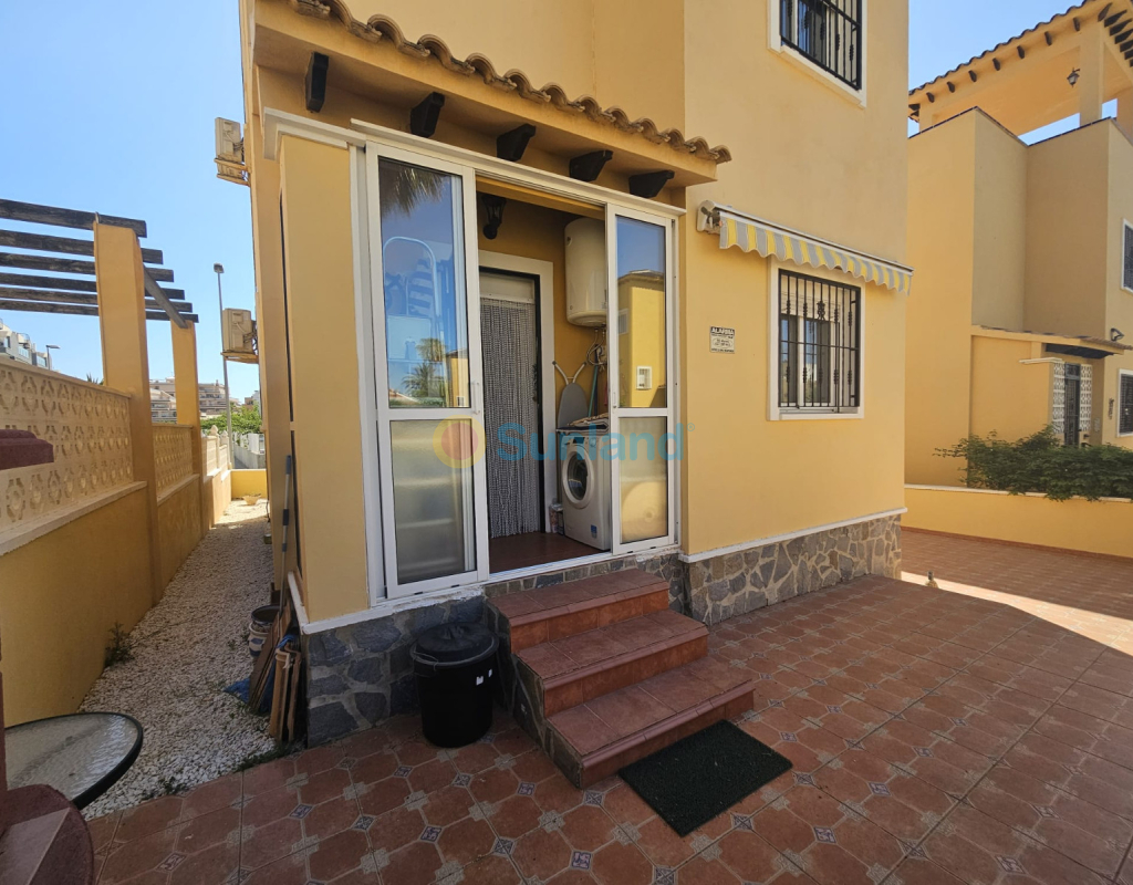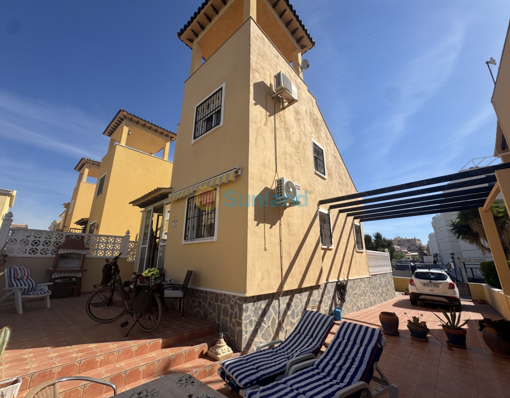 Cette charmante villa individuelle de 3 chambres et 2 salles de bains est située dans le quartier recherché de Lomas del Golf à Villamartin. Dotée d'un solarium privé sur le toit avec de belles vues sur la piscine commune, cette maison est proposée en très bon état et est vendue partiellement meublée. Rez-de-chaussée: Spacieux salon/salle à manger avec climatisation chaud et froid Cuisine ouverte, récemment équipée Buanderie vitrée séparée 1 chambre double avec placards intégrés 1 x salle de douche moderne Premier étage : 2 chambres doubles, toutes deux avec placards intégrés 1 x salle de douche familiale nouvellement aménagée Balcon de la chambre principale avec escalier menant au solarium privé sur le toit Extérieur: Terrasse avant couverte avec store pare-soleil Jardin nécessitant peu d'entretien avec parking hors route Accès direct à la belle piscine commune Points forts de l'emplacement : À seulement 5 minutes à pied des bars et restaurants locaux À 15 minutes à pied du célèbre parcours de golf et de la place de Villamartin À 5 minutes en voiture de trois autres terrains de golf À 10 minutes en voiture de la magnifique plage de La Zenia À 5 minutes en voiture du boulevard Zenia , le plus grand centre commercial de la province d'Alicante 50 minutes de l'aéroport d'Alicante Pourquoi choisir Solmar Estates ? Nous sommes spécialisés dans la recherche de biens immobiliers parfaits pour les acheteurs dans les régions ensoleillées de la Costa Blanca et de Murcie. Avec un vaste portefeuille de biens immobiliers neufs et en revente , nous proposons une large gamme d' appartements, de maisons et de villas individuelles adaptés à tous les styles de vie et à tous les budgets. Contactez-nous maintenant