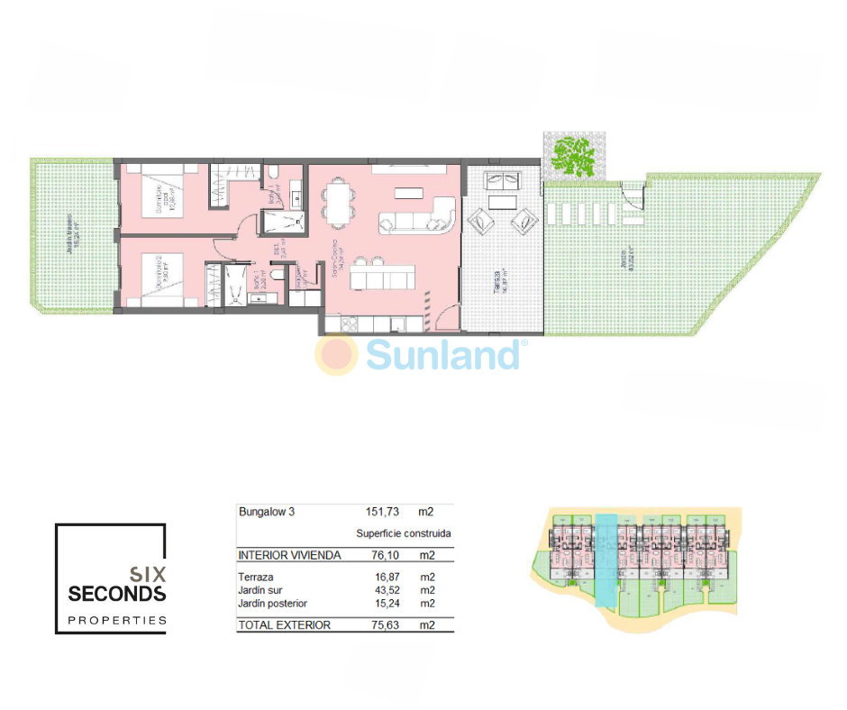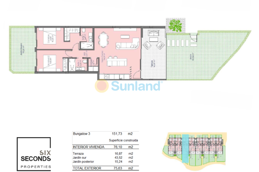 Découvrez cet élégant bungalow de deux chambres et deux salles de bain situé dans le prestigieux quartier de Santa Rosalía, à Torre Pacheco. Dotée d'une cuisine design ouverte sur le séjour, d'une buanderie séparée et de placards intégrés, cette maison allie fonctionnalité et style. Elle dispose d'un grand jardin privé avec véranda, idéal pour se détendre ou dîner en plein air. La propriété fait partie d'une résidence exclusive qui offre à ses résidents une piscine spectaculaire. À quelques minutes de l'océan, des terrains de golf et de tous les services essentiels, c'est une occasion unique de vivre dans le luxe, le confort et la nature. Climat: Le climat de la Costa Cálida, souvent considéré comme le meilleur d'Europe, permet un mode de vie sain et convivial en plein air, caractérisé par des installations sportives et de loisirs modernes, ainsi que par des stations balnéaires cosmopolites et dynamiques qui se distinguent par leurs services haut de gamme, certains exclusifs et considérés comme véritablement luxueux. Tous ces services s'adressent à une clientèle exigeante en quête de qualité et de proximité. La Costa Cálida bénéficie de plus de 300 jours de soleil par an. Un paradis idéalement relié à toute l'Europe. Autour: La Costa Cálida continue d'attirer des gens de toute l'Europe et du monde entier, car elle offre une qualité de vie unique dans un cadre magnifique au bord de la mer Méditerranée, entourée de montagnes et d'une végétation luxuriante. Outre les terrains de golf et les marinas du littoral, la région offre également des pistes de ski dans les montagnes voisines de la Sierra Nevada, de Javalambre et de Valdelinares , véritables paradis pour les amateurs de sports d'hiver aux paysages naturels magnifiques. La Costa Cálida offre un art de vivre d'une richesse unique , où les plus belles plages et criques de la Méditerranée se mêlent à un arrière-pays peuplé de montagnes et de villes qui cachent des cultures et des monuments historiques uniques. Nous avons un cadeau pour vous :   En six   Secondes   Properties vous aide à transformer votre nouveau bien immobilier en la maison de vos rêves en vous offrant une visite technique gratuite. Notre équipe vous conseillera sur les améliorations possibles. Entièrement gratuit !   Chez Nuestra empresa, nous pensons que votre confiance mérite un traitement exceptionnel.   IMPORTANT!!   N'oubliez pas que nos services n'augmentent JAMAIS le prix final du bien pour nos clients . Notre expérience dans le secteur fera de nous votre allié, un conseiller de confiance qui vous aidera à choisir la maison de vos rêves dans le meilleur quartier, vous informera sur le prix du marché des biens qui vous intéressent, les normes de qualité appliquées… toutes les informations essentielles et objectives pour une expérience pleinement satisfaisante.   Nuestra empresa (965059685) appartient à un groupe d' entreprises établies et spécialisées, toutes dans le secteur de la maison : architecture, design d'intérieur, mobilier, conseil immobilier, etc. Ces ressources nous permettent d'offrir des services uniques et exclusifs à nos clients.