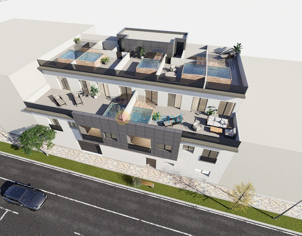 Appartements neufs à Pilar de la Horadada avec jacuzzi privé Situation privilégiée au cœur de Pilar de la Horadada Situé dans le centre animé de Pilar de la Horadada, à Alicante, ce nouveau développement exclusif offre une combinaison imbattable de vie moderne et de charme méditerranéen. Pilar de la Horadada est une ville espagnole pittoresque située dans la partie la plus méridionale de la Costa Blanca, connue pour sa communauté accueillante, ses charmantes places et la proximité de plages magnifiques. Options et caractéristiques des appartements Le complexe résidentiel se compose de sept appartements méticuleusement conçus, offrant une gamme d'agencements pour répondre à divers besoins : Rez-de-chaussée : Un appartement spacieux de trois chambres à coucher avec un solarium privé sur le toit. Premier étage : Quatre appartements comprenant 1 ou 2 chambres à coucher, chacun avec solarium individuel. Penthouses : Deux appartements exclusifs de trois chambres à coucher avec de vastes terrasses privées. Tous les appartements sont dotés de finitions haut de gamme, notamment Des cuisines entièrement équipées avec des appareils modernes. Climatisation préinstallée pour votre confort. Menuiserie extérieure en aluminium avec rupture de pont thermique pour une meilleure isolation. Double vitrage (4+14+4 Climalit ou similaire) pour une meilleure efficacité énergétique. Salles de bains élégantes avec WC suspendus (Roca Gap ou similaire), douches à effet de pluie, miroirs et parois inclus. Jacuzzis privés pour chaque maison, parfaits pour se détendre. Aménagements supplémentaires pour une vie surélevée Le projet offre Une place de parking pour chaque appartement situé au rez-de-chaussée. Un ascenseur permettant d'accéder du rez-de-chaussée au niveau du solarium. Une cuisine d'été dans chaque solarium, idéale pour les réceptions en plein air. Un accès pratique aux principaux points d'intérêt Cet emplacement permet d'accéder facilement aux commodités et aux attractions essentielles : Plages : Les plages de sable de Torre de la Horadada et de Mil Palmeras se trouvent à 3 km, à 5 minutes en voiture ou à vélo. Terrains de golf : Le terrain de golf le plus proche se trouve à 8 km, idéal pour les amateurs de golf. Centres commerciaux : Le boulevard Zenia, l'un des plus grands centres commerciaux de la région, se trouve à 12 km. Aéroports : L'aéroport de Corvera (Murcie) est à 40 minutes (40 km) et l'aéroport d'Alicante à 55 minutes (55 km) en voiture. Découvrez le style de vie méditerranéen Pilar de la Horadada allie la tranquillité d'une ville côtière à la commodité de la vie moderne, avec des supermarchés, des restaurants, des bars et des places animées accessibles à pied. Planifiez votre visite dès aujourd'hui Ne manquez pas l'occasion de posséder la maison de vos rêves dans ce quartier recherché de la Costa Blanca. Contactez-nous dès maintenant pour organiser une visite ou pour plus d'informations !