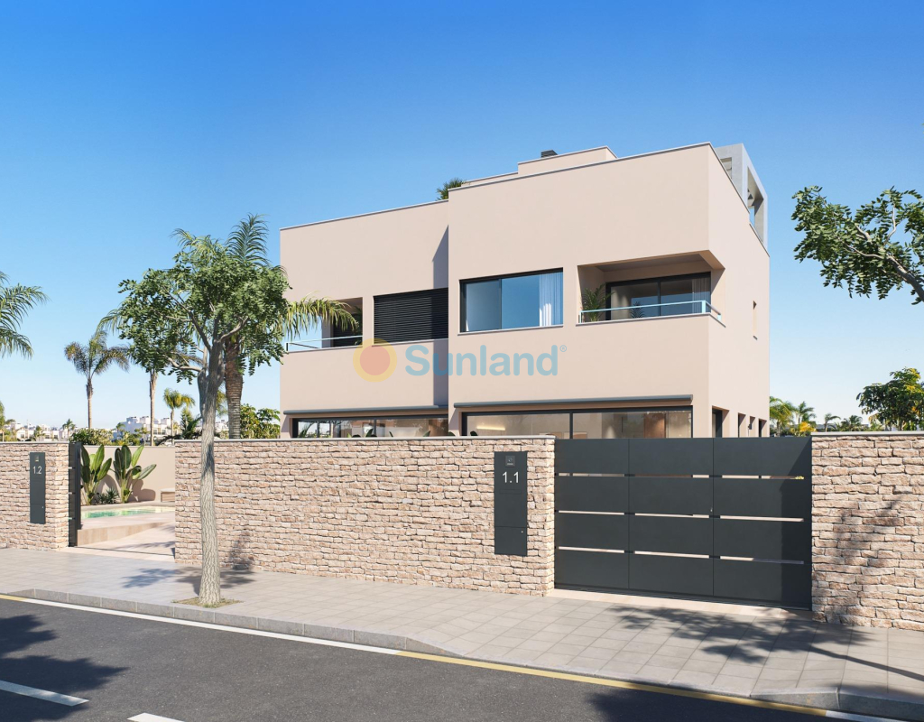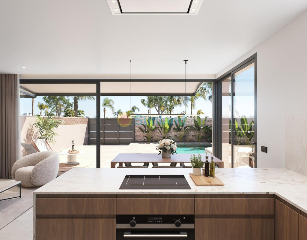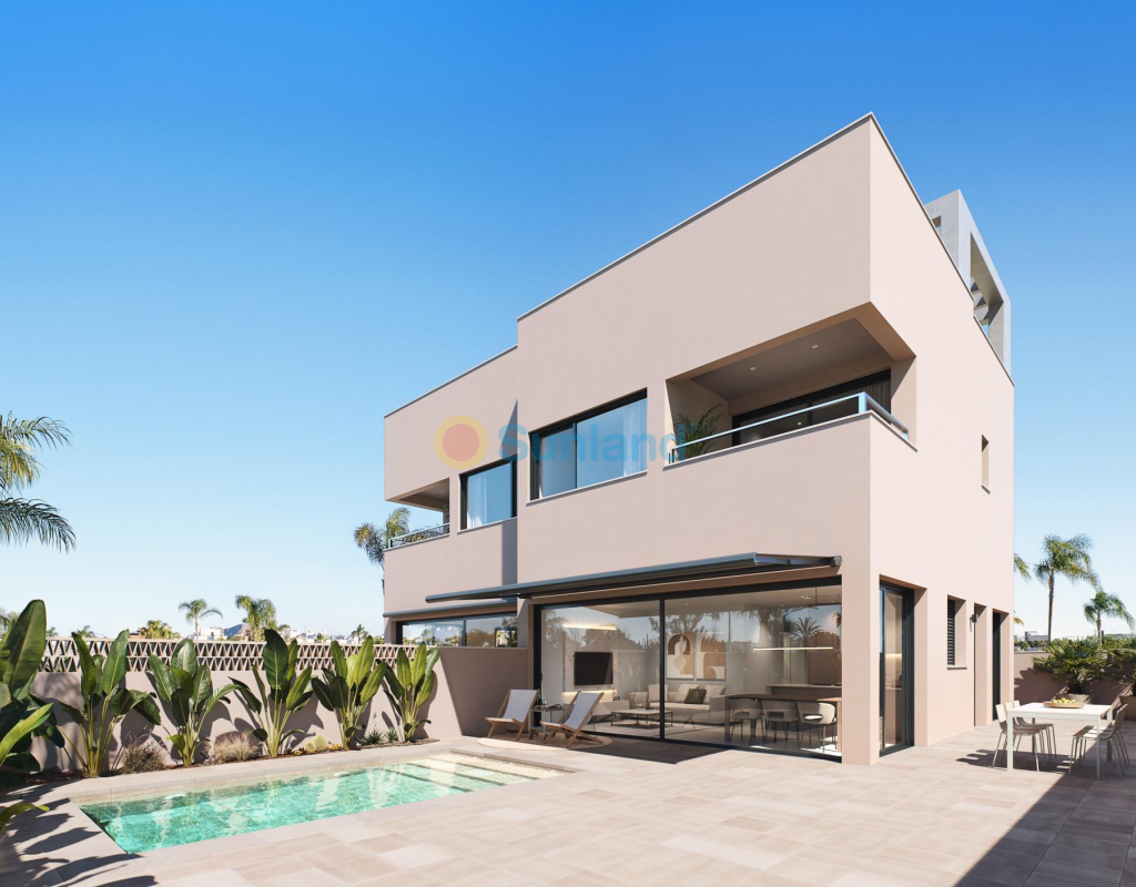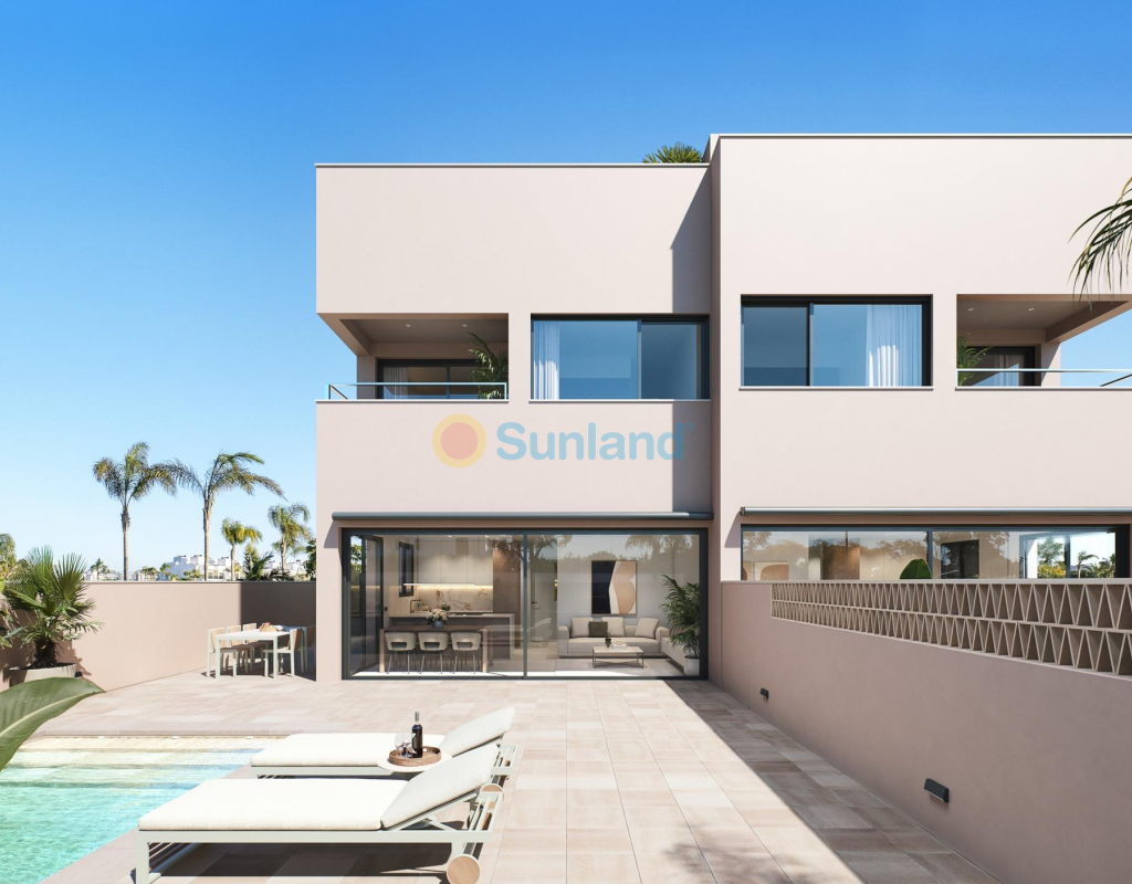 Résidence exclusive de 2 villas jumelées de luxe avec vue sur la mer sur la plage de « Las Higuericas », Torre de la Horadada. Découvrez ces superbes maisons jumelées situées à Torre de la Horadada, en deuxième ligne de la plage de Las Higuericas. Avec un design moderne et élégant, de grands espaces et des matériaux de première qualité, ces propriétés ont été conçues pour offrir un maximum de confort et d'exclusivité. Avec piscine privée de 5×3 m, parking sur le terrain et solarium de 40 m² : un espace ouvert spectaculaire, idéal pour se détendre, faire un barbecue ou profiter du soleil et de la vue imprenable. Chaque villa dispose d'un accès indépendant depuis les rues environnantes, car il n'y a aucun bâtiment adjacent. Les rues peu fréquentées et les grands espaces verts autour du lotissement sont idéaux pour les jeunes familles. Les villas disposent d'un terrain de 170 m² et d'une surface construite de 135 m². Les villas sont construites avec trois chambres et trois salles de bains (dont deux attenantes) sur deux étages. La cuisine est entièrement équipée avec possibilité de personnalisation et comprend les appareils électroménagers. Suivant un concept ouvert, la salle à manger est entourée de grandes baies vitrées, offrant une agréable source de lumière naturelle, avec un accès direct à la piscine et aux jardins aménagés avec éclairage, arrosage et végétation locale. Les finitions sélectionnées, avec des matériaux de première qualité, le design luxueux personnalisé et le confort maximal, ainsi que la climatisation par conduits de froid et de chaleur incluse dans toutes les zones, permettent de profiter de la villa pendant les étés chauds et les hivers doux, et d'y vivre toute l'année. Situées dans l'un des meilleurs quartiers de la Costa Blanca, ces maisons offrent un environnement calme, mais avec tous les services à proximité : restaurants, supermarchés, golf et centres commerciaux. Les deux villas jumelées sont situées en deuxième ligne de plage à Las Higuericas, à Torre de la Horadada, un paradis à tous égards, où vous pourrez profiter du front de mer, l'immensité de la mer Méditerranée, la promenade maritime, les baignades rafraîchissantes dans la mer, les sports nautiques, la voile, le surf, le snorkeling et à seulement 8 km de Lo Romero Golf, l'un des 21 terrains de golf de la Costa Blanca. À 5 minutes du port de plaisance de La Torre de la Horadada et à 10 minutes des ports de plaisance de San Pedro del Pinatar, vous trouverez les meilleurs restaurants où déguster la meilleure gastronomie méditerranéenne. Sans oublier la proximité de l'autoroute AP7 qui relie notre résidence à deux aéroports internationaux, celui de Corvera à 44 km et celui d'Altet, Alicante, à 75 km. La ville la plus proche de la zone où se trouve la promotion est Pilar de la Horadada, à 1 km, un village tranquille qui dispose de tous types de services, écoles, centres de santé, police, pharmacies, etc. Il y a également deux zones commerciales à proximité, le centre commercial Dos Mares, à San Javier, à 5 minutes en voiture, et La Zenia Boulevard, à Orihuela Costa, à 15 minutes en voiture.