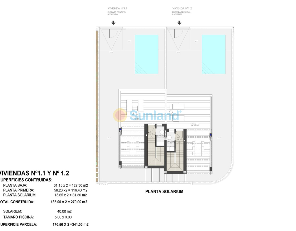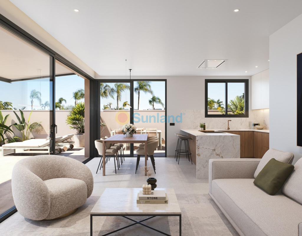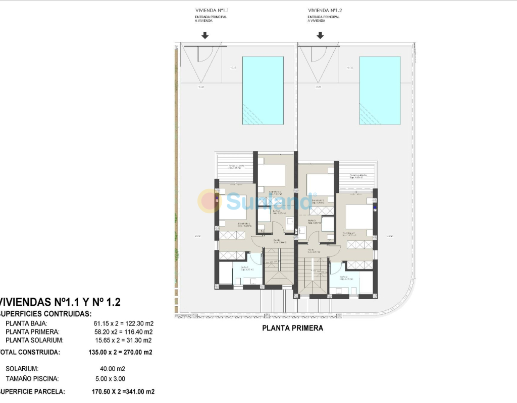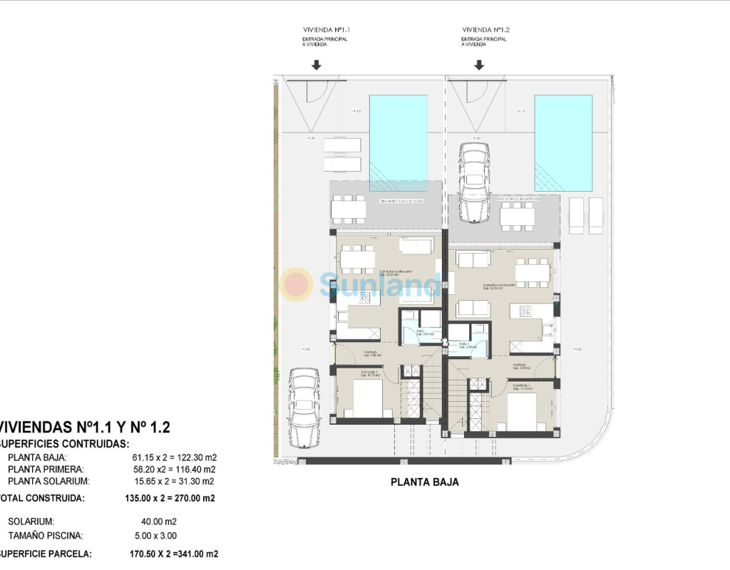 Résidence exclusive de 2 villas jumelées de luxe avec vue sur la mer sur la plage de « Las Higuericas », Torre de la Horadada. Découvrez ces superbes maisons jumelées situées à Torre de la Horadada, en deuxième ligne de la plage de Las Higuericas. Avec un design moderne et élégant, de grands espaces et des matériaux de première qualité, ces propriétés ont été conçues pour offrir un maximum de confort et d'exclusivité. Avec piscine privée de 5×3 m, parking sur le terrain et solarium de 40 m² : un espace ouvert spectaculaire, idéal pour se détendre, faire un barbecue ou profiter du soleil et de la vue imprenable. Chaque villa dispose d'un accès indépendant depuis les rues environnantes, car il n'y a aucun bâtiment adjacent. Les rues peu fréquentées et les grands espaces verts autour du lotissement sont idéaux pour les jeunes familles. Les villas disposent d'un terrain de 170 m² et d'une surface construite de 135 m². Les villas sont construites avec trois chambres et trois salles de bains (dont deux attenantes) sur deux étages. La cuisine est entièrement équipée avec possibilité de personnalisation et comprend les appareils électroménagers. Suivant un concept ouvert, la salle à manger est entourée de grandes baies vitrées, offrant une agréable source de lumière naturelle, avec un accès direct à la piscine et aux jardins aménagés avec éclairage, arrosage et végétation locale. Les finitions sélectionnées, avec des matériaux de première qualité, le design luxueux personnalisé et le confort maximal, ainsi que la climatisation par conduits de froid et de chaleur incluse dans toutes les zones, permettent de profiter de la villa pendant les étés chauds et les hivers doux, et d'y vivre toute l'année. Situées dans l'un des meilleurs quartiers de la Costa Blanca, ces maisons offrent un environnement calme, mais avec tous les services à proximité : restaurants, supermarchés, golf et centres commerciaux. Les deux villas jumelées sont situées en deuxième ligne de plage à Las Higuericas, à Torre de la Horadada, un paradis à tous égards, où vous pourrez profiter du front de mer, l'immensité de la mer Méditerranée, la promenade maritime, les baignades rafraîchissantes dans la mer, les sports nautiques, la voile, le surf, le snorkeling et à seulement 8 km de Lo Romero Golf, l'un des 21 terrains de golf de la Costa Blanca. À 5 minutes du port de plaisance de La Torre de la Horadada et à 10 minutes des ports de plaisance de San Pedro del Pinatar, vous trouverez les meilleurs restaurants où déguster la meilleure gastronomie méditerranéenne. Sans oublier la proximité de l'autoroute AP7 qui relie notre résidence à deux aéroports internationaux, celui de Corvera à 44 km et celui d'Altet, Alicante, à 75 km. La ville la plus proche de la zone où se trouve la promotion est Pilar de la Horadada, à 1 km, un village tranquille qui dispose de tous types de services, écoles, centres de santé, police, pharmacies, etc. Il y a également deux zones commerciales à proximité, le centre commercial Dos Mares, à San Javier, à 5 minutes en voiture, et La Zenia Boulevard, à Orihuela Costa, à 15 minutes en voiture.