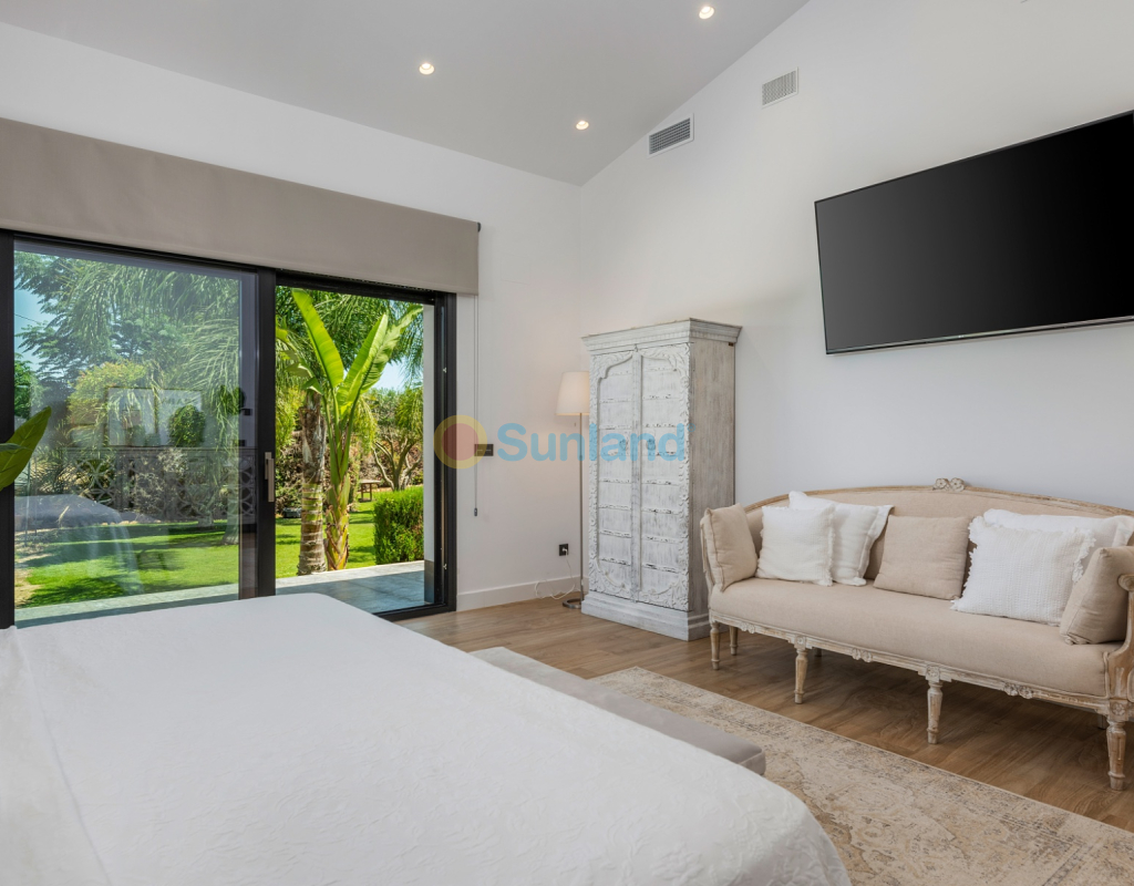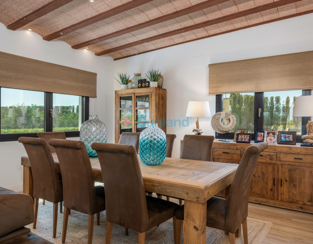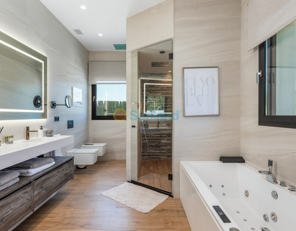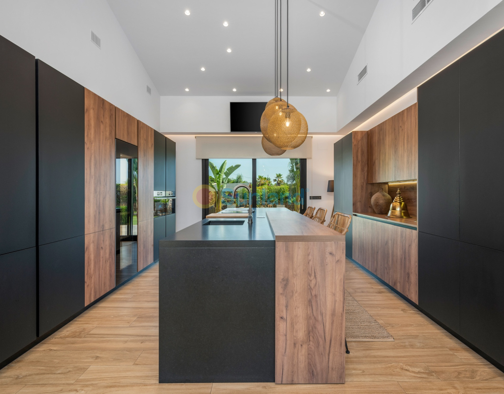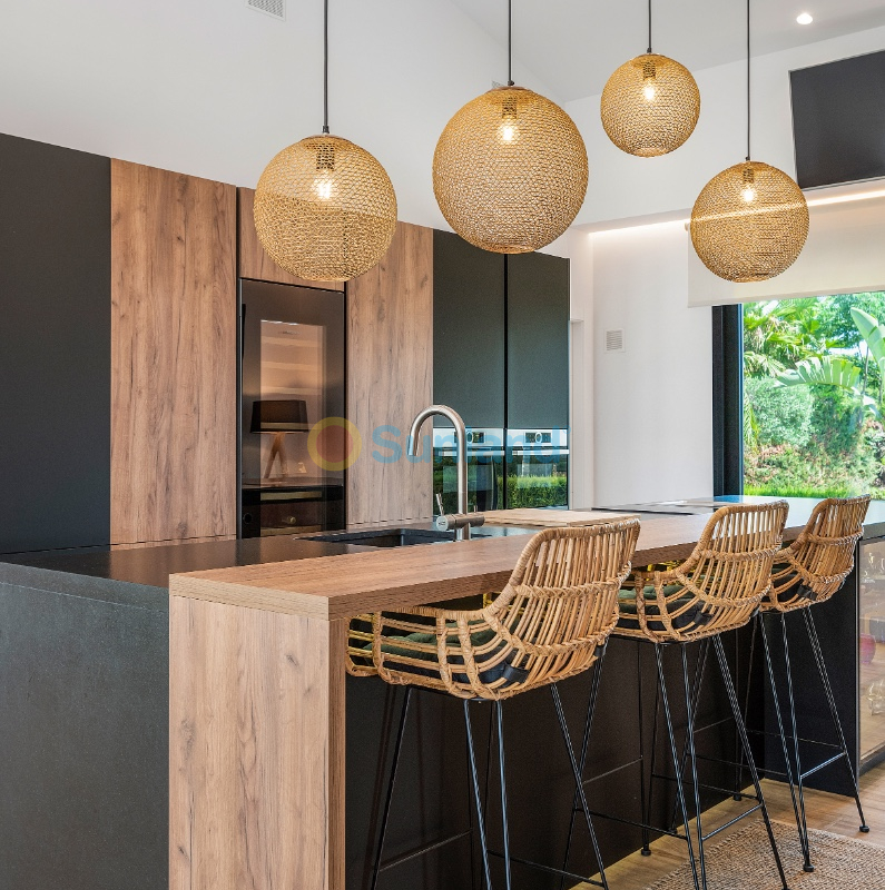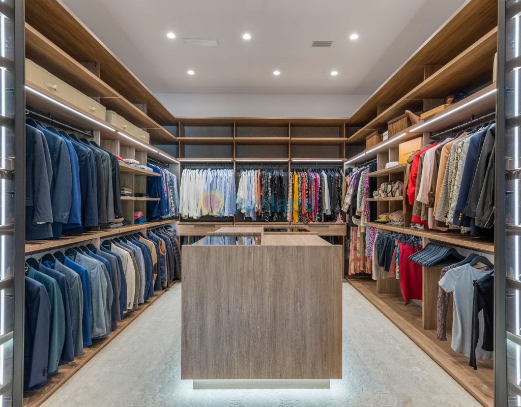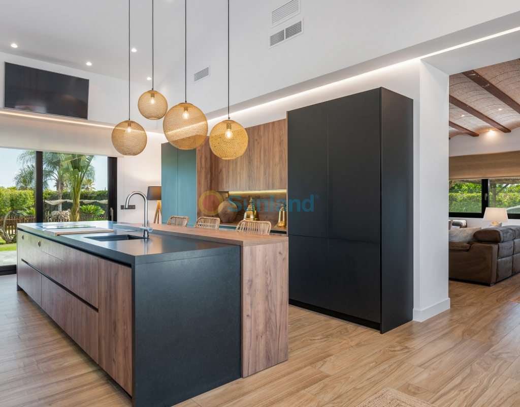 Bienvenue dans cette maison récente, achevée en novembre 2022. Elle est de plain-pied et offre une surface habitable de 320 m² avec une hauteur sous plafond de 5 mètres. La propriété, construite sur un terrain de 17 000 m² entièrement clôturé, bénéficie d'un emplacement idéal, à proximité de l'autoroute entre Elche et Santa Pola, à seulement 4 km de la plage de Santa Pola et 6 km d'Elche. La maison comprend un salon-salle à manger de 45 m² avec cheminée intégrée, relié à une grande cuisine design de 40 m² avec espace repassage et électroménager. La cuisine dispose d'un îlot central de 4 mètres avec bar, d'une cave à vin de 80 bouteilles, de deux réfrigérateurs avec congélateur dissimulés et de plaques de cuisson à induction Bora avec teppanyaki et hotte aspirante. Les rangements sont nombreux et tous les placards et tiroirs sont équipés d'un éclairage intérieur LED. La propriété dispose de 5 chambres spacieuses réparties en un salon pour enfants, un bureau et une salle de sport, une chambre de 20 m², une autre de 18 m² et une suite parentale de 67 m². La suite parentale dispose d'un dressing de 20 m² avec éclairage LED et îlot central, et offre un accès direct au jardin et à la piscine. Toutes les chambres sont équipées de Smart TV. La maison dispose de 3 salles de bain complètes avec douche, d'une salle de bain pour invités dans le salon et de 2 salles de bain avec baignoires balnéo. Toutes les salles de bain sont équipées de douches électroniques avec affichage de la température et de la pression de l'eau, de pommeaux de douche à effet pluie et d'un système audio subaquatique avec radio et Bluetooth. Les 3 salles de bain sont équipées du chauffage au sol. La salle de bain parentale est équipée d'une grande douche double avec siège. En ce qui concerne les équipements, la maison est équipée de la climatisation avec 10 zones Air Zone indépendantes, permettant une température différente dans chaque pièce. Elle est équipée de 3 unités Mitsubishi de 30 000 frigories. Tout est contrôlé depuis 10 écrans couleur répartis dans toute la maison et chaque pièce. Vous pouvez également contrôler l'ensemble depuis votre téléphone portable. La maison est également équipée d'un chauffage au sol avec chaudière à gaz et d'un système Air Zone, permettant de régler la température de chaque pièce. Le système est contrôlable depuis votre téléphone portable. La maison est équipée d'un système de ventilation mécanique contrôlée (VMC) Zhender qui brasse 300 mètres cubes d'air par heure, assurant une ventilation constante, évacuant l'air pollué et les odeurs de l'intérieur et injectant de l'air frais, filtré et à température constante de l'extérieur. Ainsi, il n'est jamais nécessaire d'ouvrir les fenêtres pour aérer la maison. La propriété dispose d'un jardin de 6 000 mètres carrés planté de palmiers et d'oliviers, de 3 200 mètres carrés de pelouse naturelle avec un robot tondeuse automatique, d'une piscine de 8 x 3 mètres avec cascade naturelle et d'une pergola de 20 mètres carrés. La maison est orientée sud-est et dispose de 23 fenêtres de sécurité à double vitrage (4+4 et 6+6) et d'une chambre à gaz argon. La maison bénéficie d'une excellente isolation acoustique et thermique grâce à une toiture ventilée et à un plafond en mousse de polyuréthane et laine de roche. Elle est composée de doubles murs en argile thermolaquée et en briques, avec 600 mm de laine de roche entre les murs. Sa classe énergétique A+++ permet des économies d'énergie importantes, été comme hiver. Tous les stores sont motorisés par Cherubini et contrôlables depuis un téléphone portable. La maison est équipée d'une alarme et de plusieurs capteurs périmétriques, intérieurs et extérieurs, contrôlables depuis un téléphone portable. Elle dispose également de 10 caméras de surveillance extérieures, contrôlables depuis un téléphone portable. Pour plus d'informations ou pour organiser une visite, contactez-nous dès aujourd'hui !
