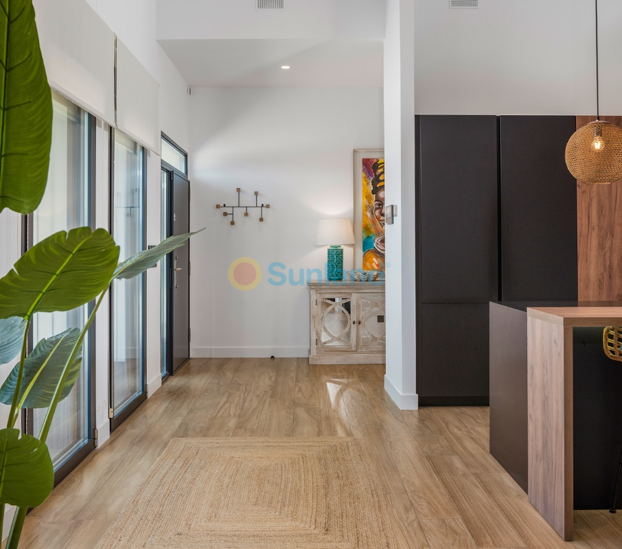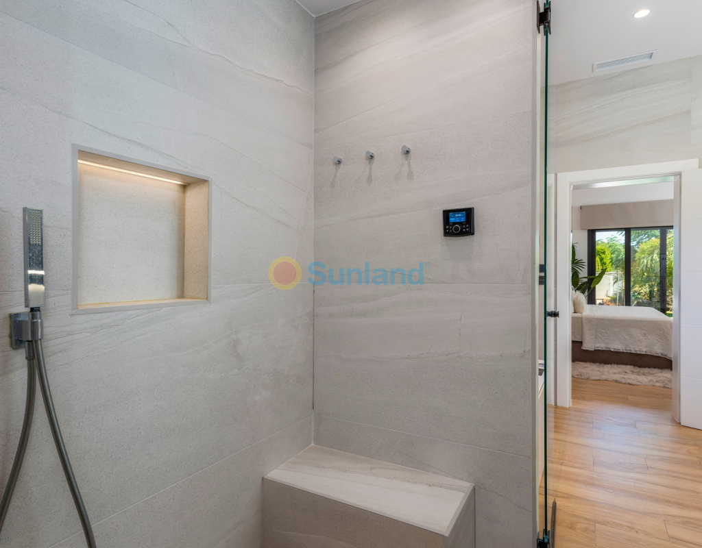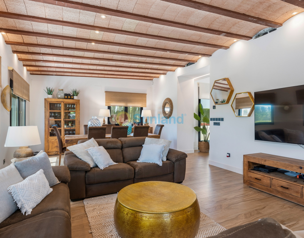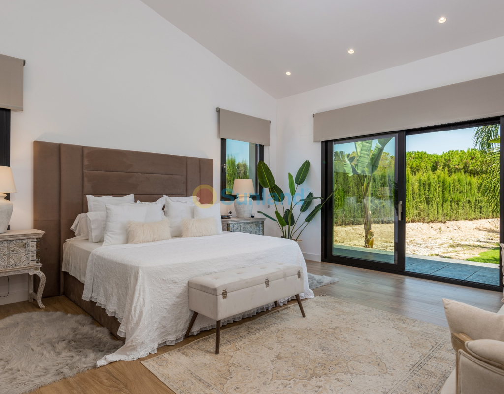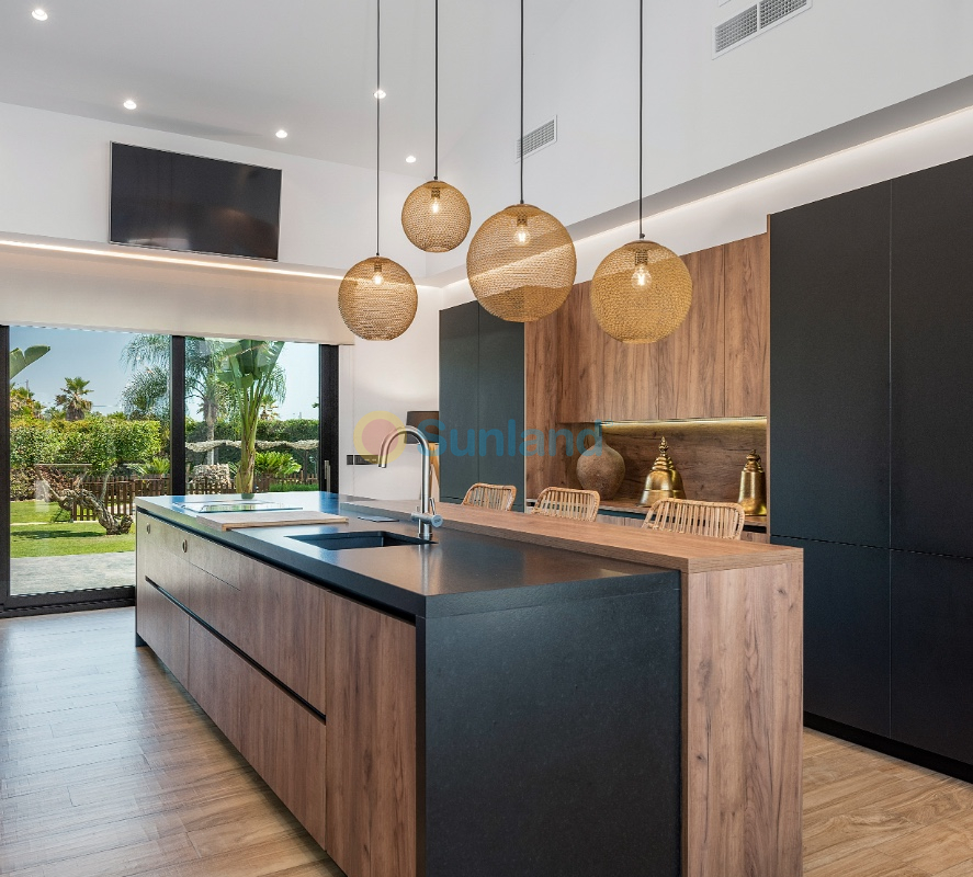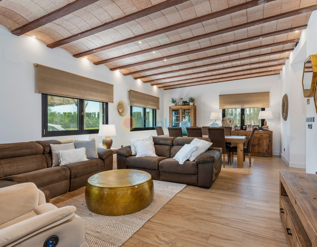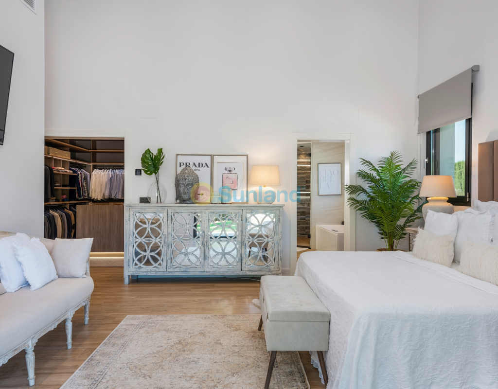 Bienvenue dans cette maison récente, achevée en novembre 2022. Elle est de plain-pied et offre une surface habitable de 320 m² avec une hauteur sous plafond de 5 mètres. La propriété, construite sur un terrain de 17 000 m² entièrement clôturé, bénéficie d'un emplacement idéal, à proximité de l'autoroute entre Elche et Santa Pola, à seulement 4 km de la plage de Santa Pola et 6 km d'Elche. La maison comprend un salon-salle à manger de 45 m² avec cheminée intégrée, relié à une grande cuisine design de 40 m² avec espace repassage et électroménager. La cuisine dispose d'un îlot central de 4 mètres avec bar, d'une cave à vin de 80 bouteilles, de deux réfrigérateurs avec congélateur dissimulés et de plaques de cuisson à induction Bora avec teppanyaki et hotte aspirante. Les rangements sont nombreux et tous les placards et tiroirs sont équipés d'un éclairage intérieur LED. La propriété dispose de 5 chambres spacieuses réparties en un salon pour enfants, un bureau et une salle de sport, une chambre de 20 m², une autre de 18 m² et une suite parentale de 67 m². La suite parentale dispose d'un dressing de 20 m² avec éclairage LED et îlot central, et offre un accès direct au jardin et à la piscine. Toutes les chambres sont équipées de Smart TV. La maison dispose de 3 salles de bain complètes avec douche, d'une salle de bain pour invités dans le salon et de 2 salles de bain avec baignoires balnéo. Toutes les salles de bain sont équipées de douches électroniques avec affichage de la température et de la pression de l'eau, de pommeaux de douche à effet pluie et d'un système audio subaquatique avec radio et Bluetooth. Les 3 salles de bain sont équipées du chauffage au sol. La salle de bain parentale est équipée d'une grande douche double avec siège. En ce qui concerne les équipements, la maison est équipée de la climatisation avec 10 zones Air Zone indépendantes, permettant une température différente dans chaque pièce. Elle est équipée de 3 unités Mitsubishi de 30 000 frigories. Tout est contrôlé depuis 10 écrans couleur répartis dans toute la maison et chaque pièce. Vous pouvez également contrôler l'ensemble depuis votre téléphone portable. La maison est également équipée d'un chauffage au sol avec chaudière à gaz et d'un système Air Zone, permettant de régler la température de chaque pièce. Le système est contrôlable depuis votre téléphone portable. La maison est équipée d'un système de ventilation mécanique contrôlée (VMC) Zhender qui brasse 300 mètres cubes d'air par heure, assurant une ventilation constante, évacuant l'air pollué et les odeurs de l'intérieur et injectant de l'air frais, filtré et à température constante de l'extérieur. Ainsi, il n'est jamais nécessaire d'ouvrir les fenêtres pour aérer la maison. La propriété dispose d'un jardin de 6 000 mètres carrés planté de palmiers et d'oliviers, de 3 200 mètres carrés de pelouse naturelle avec un robot tondeuse automatique, d'une piscine de 8 x 3 mètres avec cascade naturelle et d'une pergola de 20 mètres carrés. La maison est orientée sud-est et dispose de 23 fenêtres de sécurité à double vitrage (4+4 et 6+6) et d'une chambre à gaz argon. La maison bénéficie d'une excellente isolation acoustique et thermique grâce à une toiture ventilée et à un plafond en mousse de polyuréthane et laine de roche. Elle est composée de doubles murs en argile thermolaquée et en briques, avec 600 mm de laine de roche entre les murs. Sa classe énergétique A+++ permet des économies d'énergie importantes, été comme hiver. Tous les stores sont motorisés par Cherubini et contrôlables depuis un téléphone portable. La maison est équipée d'une alarme et de plusieurs capteurs périmétriques, intérieurs et extérieurs, contrôlables depuis un téléphone portable. Elle dispose également de 10 caméras de surveillance extérieures, contrôlables depuis un téléphone portable. Pour plus d'informations ou pour organiser une visite, contactez-nous dès aujourd'hui !