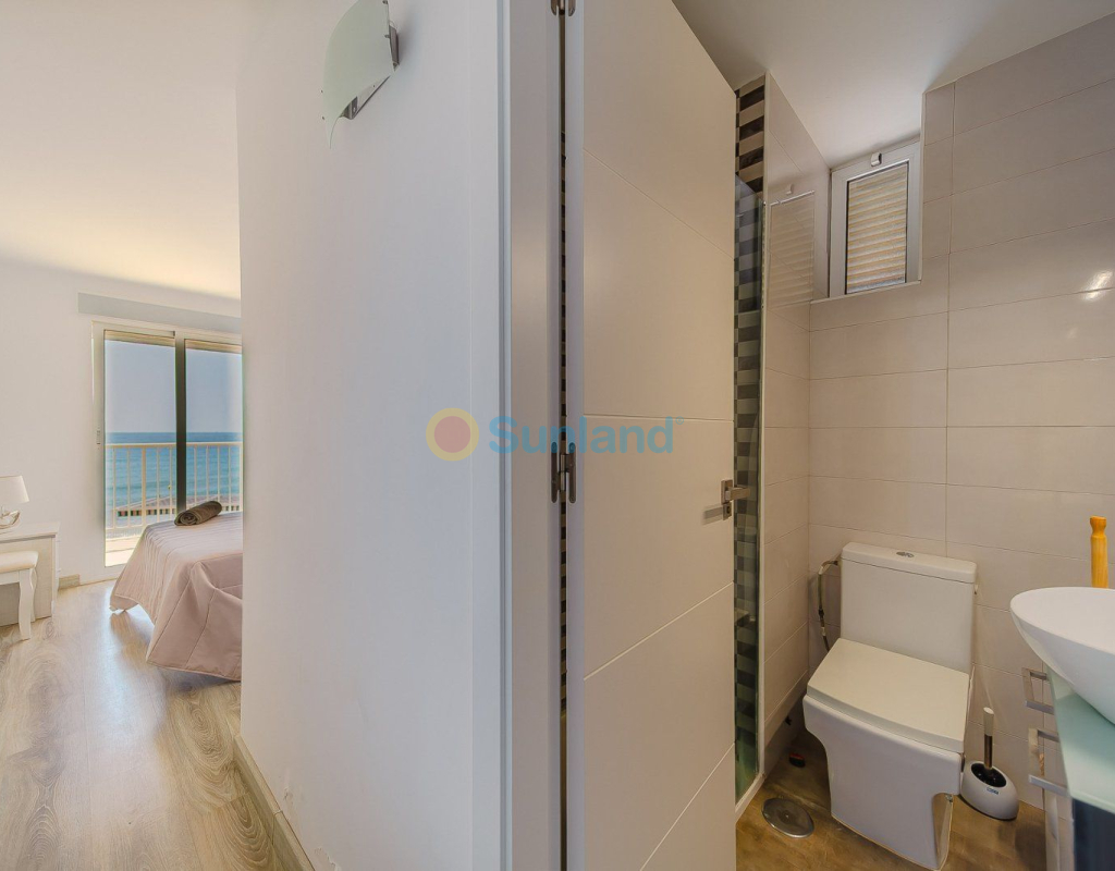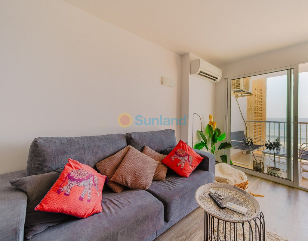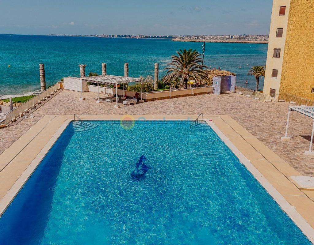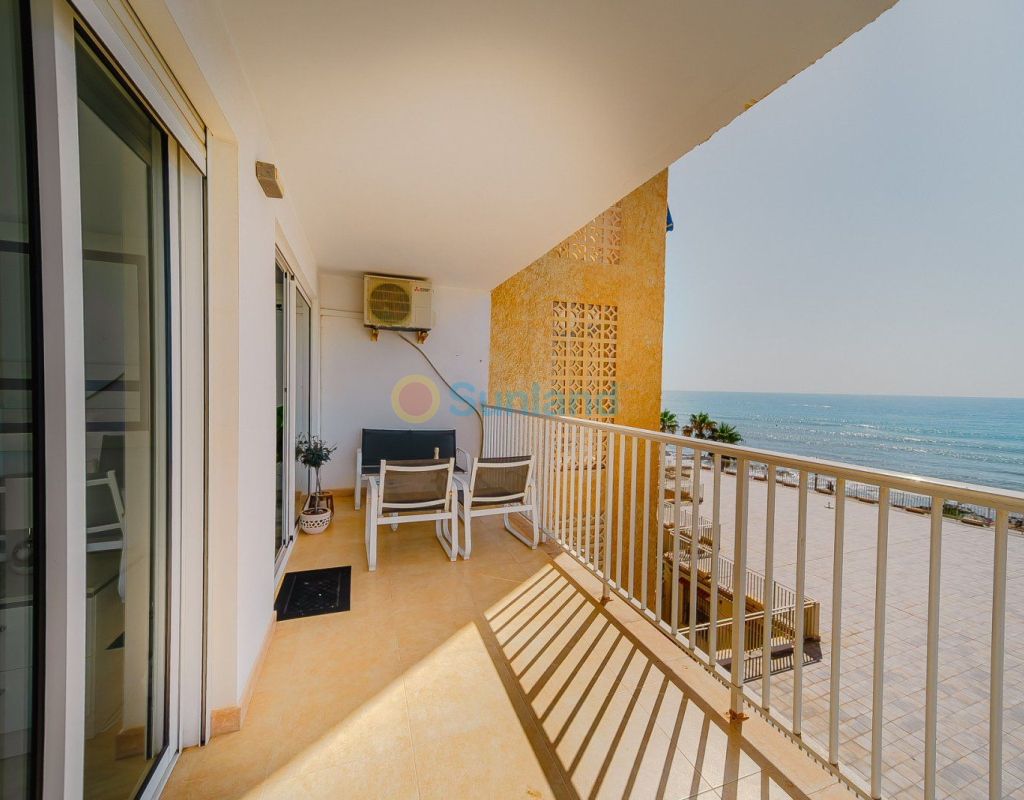 Appartement rénové en première ligne à Playa del Cura, Torrevieja. Fantastique appartement avec vue imprenable sur la mer, situé en première ligne, à seulement 50 mètres de la plage et entouré de bars, restaurants et commerces. Le logement a été entièrement rénové et propose 3 chambres, 2 salles de bains, une cuisine indépendante et un salon lumineux avec accès à une terrasse privée. Situé au troisième étage avec ascenseur, il dispose de 92 m² construits, orientation est, et est vendu entièrement meublé. Caractéristiques principales : 3 chambres et 2 salles de bains Cuisine indépendante 92 m² construits Terrasse privée Troisième étage avec ascenseur Orientation est Meublé Climatisation Entièrement rénové Vue sur la mer IBI : 280 €/an