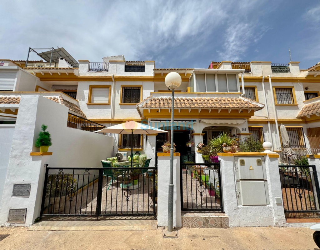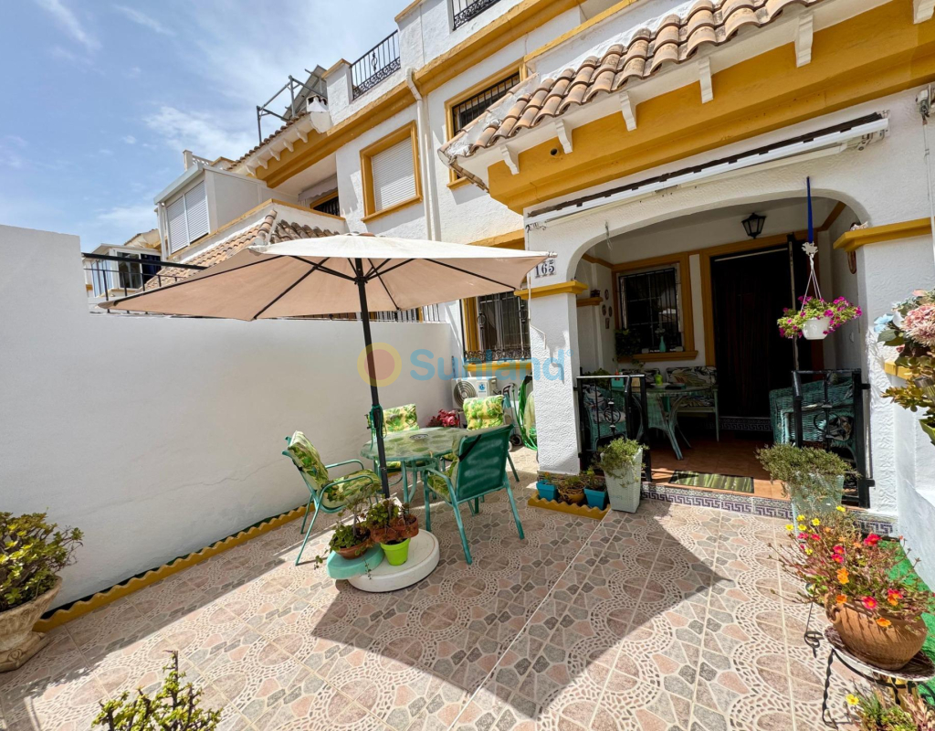 À vendre : magnifique maison mitoyenne en duplex, située dans l’un des quartiers les plus prisés de Torrevieja prêt à emménager.. . ???? Distribution :. . 3 chambres lumineuses. . 2 salles de bains complètes. . Jardin privé à l’avant. . Patio arrière idéal comme espace de loisirs ou buanderie. . Solarium privé parfait pour profiter du soleil toute l’année. . ???? Extras inclus :. . Climatisation. . . Espaces extérieurs très bien aménagés. . ???? Dans une résidence privée avec :. . Piscine communautaire. . Caméras de sécurité. . Environnement calme et familial. . ???? À proximité des supermarchés, centres commerciaux, transports publics, écoles et des plus belles plages de la région.. . ✅ Idéal comme résidence principale, maison de vacances ou investissement avec une forte rentabilité en location touristique.. . ???? Contactez-nous pour plus d’informations ou pour organiser une visite. Ne ratez pas cette opportunité !