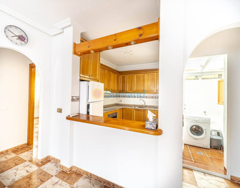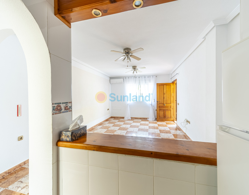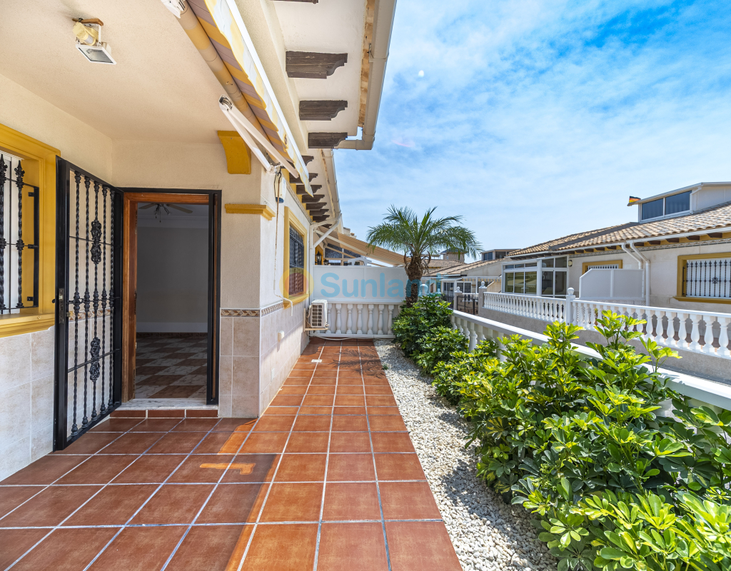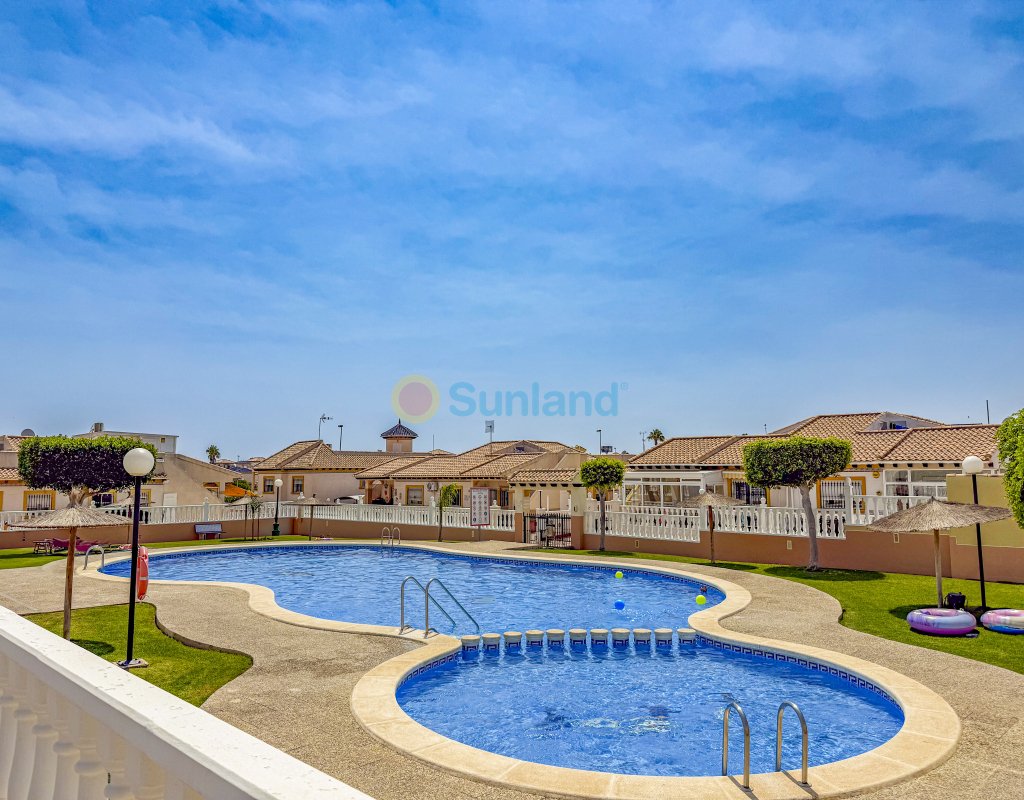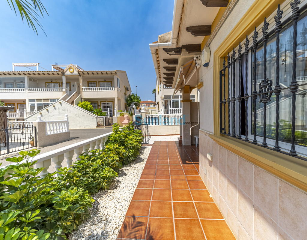 Maison mitoyenne au rez-de-chaussée à La Regia, Orihuela Costa. Charmante maison mitoyenne au rez-de-chaussée de 63 m² construits sur une parcelle de 60 m². Elle comprend 2 chambres, 1 salle de bain, une cuisine ouverte et un séjour lumineux. Elle dispose d’un solarium, d’une place de parking sur la parcelle, de la climatisation et est vendue non meublée – idéale pour personnaliser selon vos goûts. Située dans une résidence avec piscine communautaire. Orientation sud, garantissant une luminosité naturelle toute la journée. Caractéristiques principales : 2 chambres et 1 salle de bain 63 m² construits Parcelle de 60 m² Cuisine ouverte Solarium Non meublé Climatisation Piscine communautaire Place de parking sur la parcelle Orientation sud Charges annuelles : IBI : 195 € Communauté : 360 €