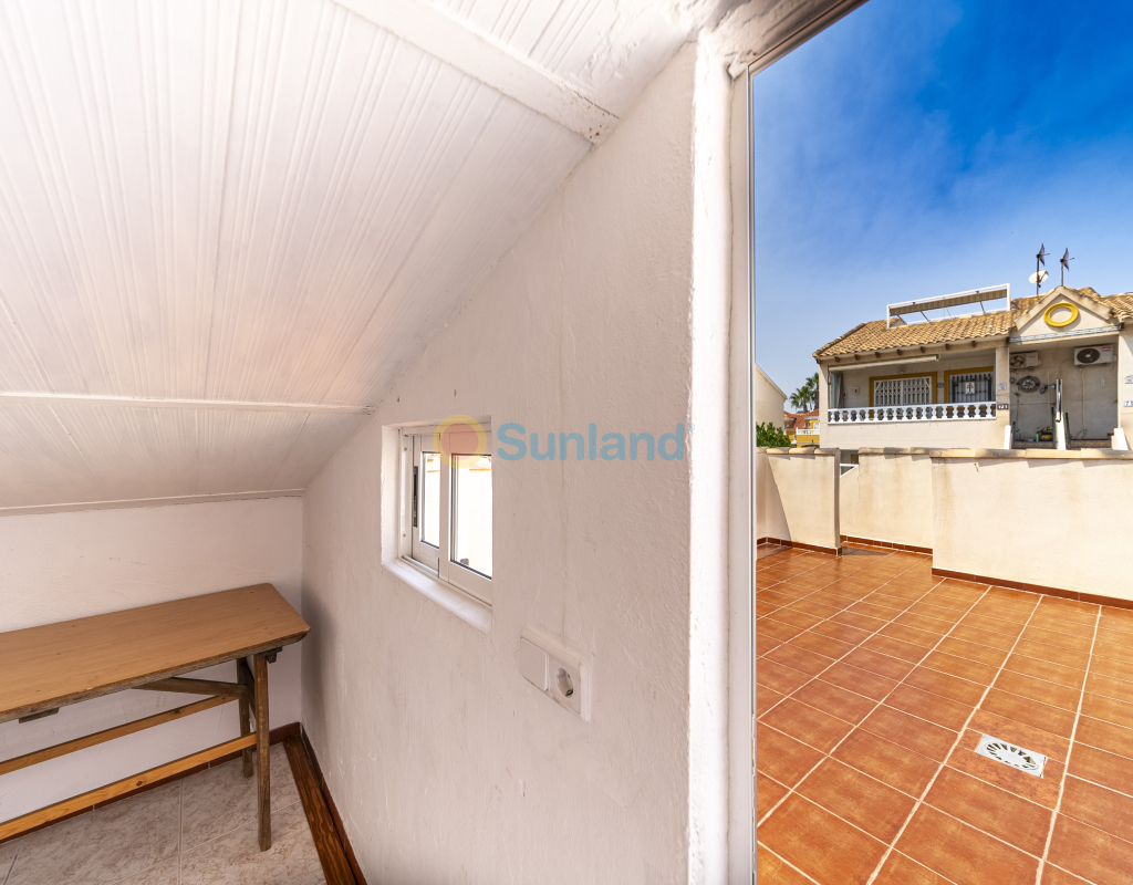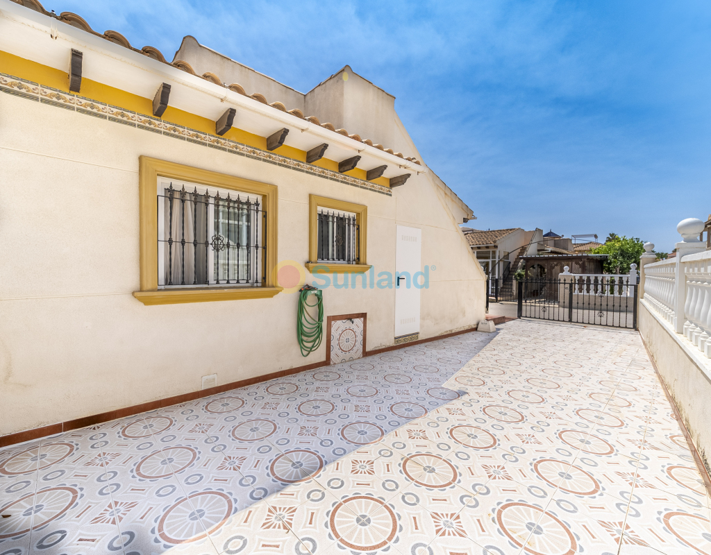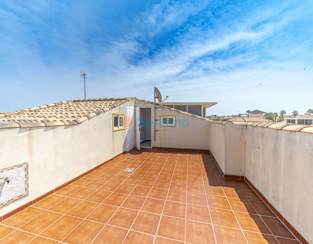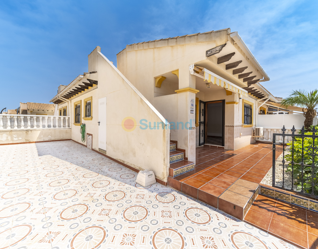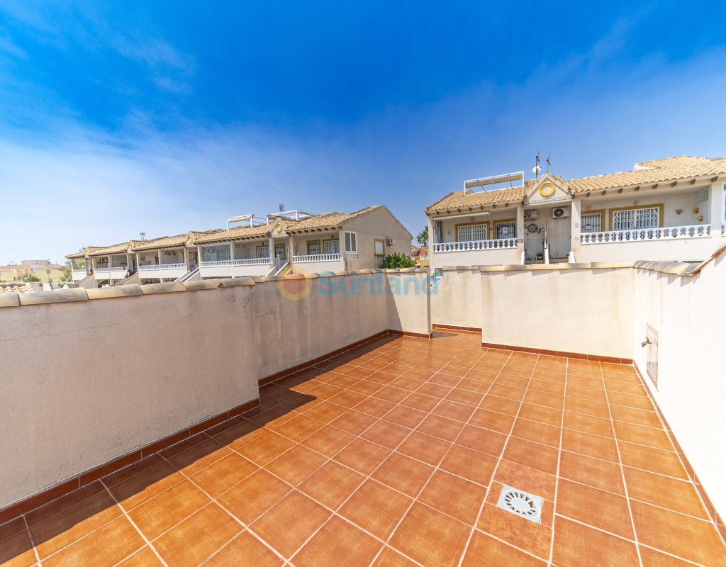 Maison mitoyenne au rez-de-chaussée à La Regia, Orihuela Costa. Charmante maison mitoyenne au rez-de-chaussée de 63 m² construits sur une parcelle de 60 m². Elle comprend 2 chambres, 1 salle de bain, une cuisine ouverte et un séjour lumineux. Elle dispose d’un solarium, d’une place de parking sur la parcelle, de la climatisation et est vendue non meublée – idéale pour personnaliser selon vos goûts. Située dans une résidence avec piscine communautaire. Orientation sud, garantissant une luminosité naturelle toute la journée. Caractéristiques principales : 2 chambres et 1 salle de bain 63 m² construits Parcelle de 60 m² Cuisine ouverte Solarium Non meublé Climatisation Piscine communautaire Place de parking sur la parcelle Orientation sud Charges annuelles : IBI : 195 € Communauté : 360 €