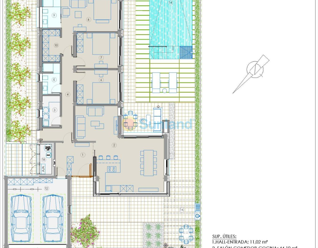 NOUVELLE VILLA CONSTRUITE SUR UN ÉTAGE Trois villas exclusives dans un quartier résidentiel à San Javier avec 600 m2 de terrain et 217 m2 de surface construite sur un étage, piscine privée et grands jardins. Résidentiel avec une conception architecturale basée sur des lignes claires, cubiques et fonctionnelles dans une enclave résidentielle exclusive à San Javier (Murcie). Portes d'accès au jardin et au garage automatisées avec télécommande infrarouge. Grand garage couvert pour deux véhicules avec entrée indépendante. Jardins avec un système de drainage de l'eau au sol, entièrement finis et personnalisables, y compris la végétation, l'irrigation et l'éclairage.