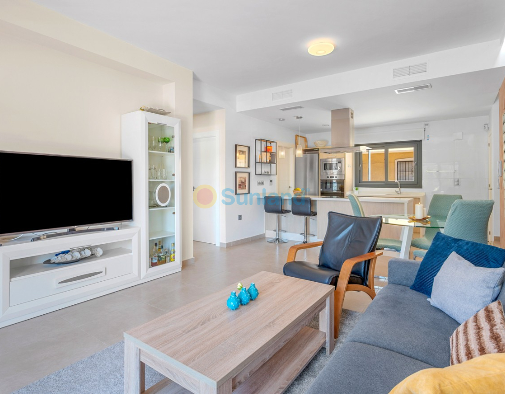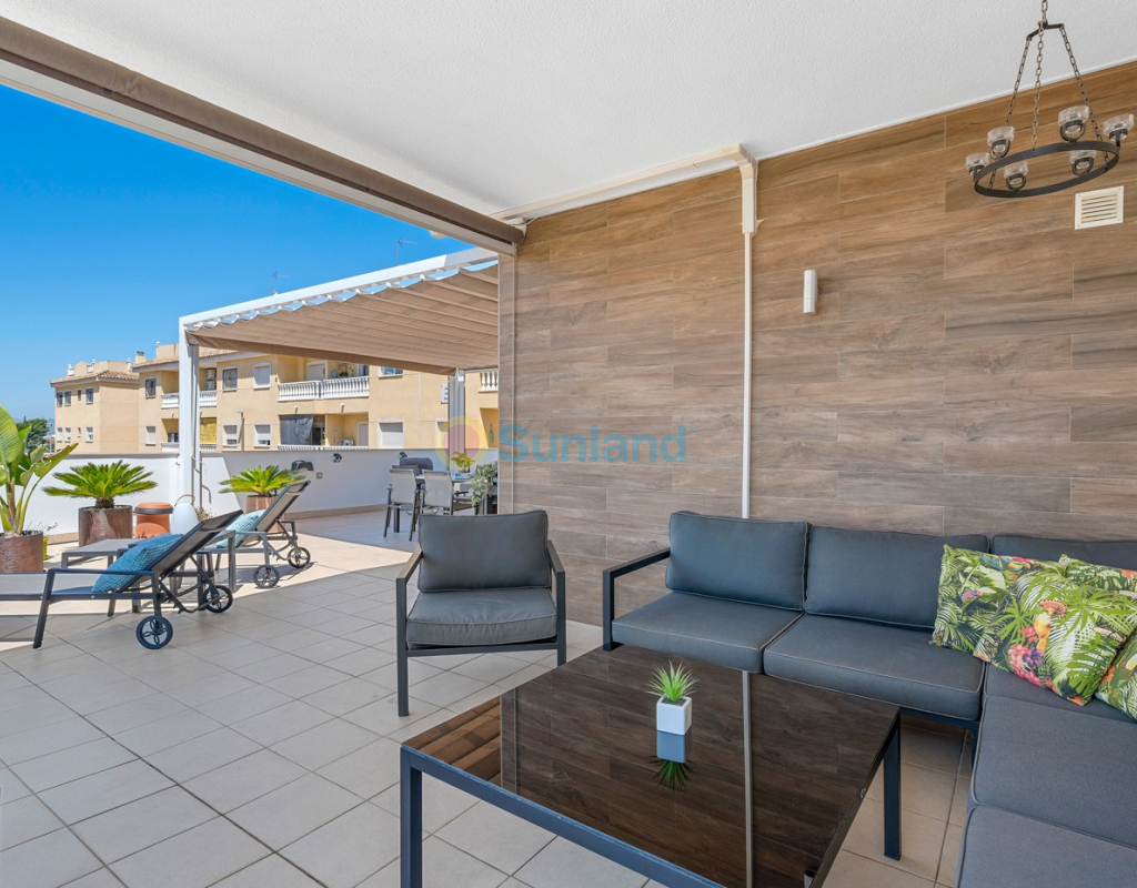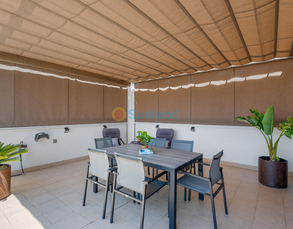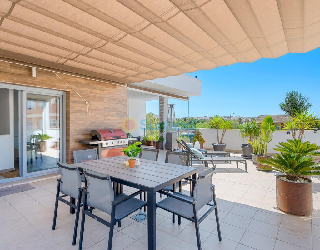 Située au cœur du charmant et authentique village espagnol de Formentera del Segura, cette maison de ville soigneusement entretenue allie confort moderne et atmosphère traditionnelle. Construite en 2018, elle fait partie d’une petite communauté exclusive de seulement quatre logements. C’est la première revente dans cette résidence, une opportunité rare et précieuse. La propriété offre trois chambres spacieuses et deux salles de bains élégantes, dont une en suite. Deux chambres se trouvent au rez-de-chaussée, rendant la maison pratique et confortable à vivre toute l’année. L’intérieur est décoré avec goût et meublé avec des pièces de haute qualité — tout est inclus dans la vente. Une véritable maison clé en main, en excellent état. À l’extérieur, vous profiterez d’une piscine privée avec cascade ainsi que d’un jacuzzi privé — l’endroit idéal pour se détendre. Le toit-terrasse offre un grand potentiel : il est déjà préparé pour l’ajout d’une troisième salle de bains privée, avec les raccordements d’eau et d’électricité en place. Avec des stores intégrés, des panneaux de confidentialité et un espace lounge couvert, la terrasse est parfaite pour recevoir ou profiter de la vue imprenable. La maison est équipée de : Système de filtration d’eau pour toute la maison (eau potable directement au robinet) Climatisation centrale au rez-de-chaussée et unité séparée à l’étage Excellente ventilation, sans problèmes d’humidité Internet fibre avec couverture jusque sur la terrasse — idéal pour télétravailler Vendue entièrement meublée. Formentera del Segura offre une communauté internationale accueillante, tout en conservant son authenticité espagnole. Cafés, boulangeries et restaurants se trouvent à quelques minutes à pied, le supermarché le plus proche est à seulement deux minutes. L’école norvégienne est à 8 minutes en voiture, et les plages dorées de Guardamar del Segura à seulement 10 minutes. Plusieurs parcours de golf, pistes cyclables et parcs naturels complètent l’environnement. Une maison vraiment spéciale dans un emplacement exceptionnel — parfaite pour ceux qui recherchent confort, style et qualité de vie sur la Costa Blanca.