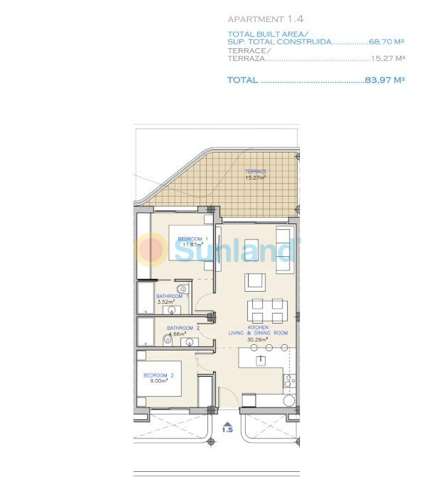 Nouveau complexe résidentiel à Los Alcázares Maisons exclusives sur la Costa Cálida Ce nouveau complexe résidentiel à Los Alcázares offre une occasion unique de profiter d'un mode de vie moderne dans l'une des zones les plus prisées de la Costa Cálida. Situé à seulement 1,2 km de la plage et en première ligne du prestigieux parcours de golf La Serena, ce complexe combine à la perfection le style de vie côtier et la tranquillité d'un environnement golfique. Le charmant centre-ville de Los Alcázares est accessible à pied, ce qui permet d'accéder facilement aux commerces, aux restaurants et à tous les services essentiels. Appartements modernes et villas exclusives La promotion comprend 13 appartements contemporains de 2, 3 ou 4 chambres et 4 villas exclusives de 3 chambres. Les acheteurs peuvent choisir entre des appartements au rez-de-chaussée ou à l'étage intermédiaire avec de spacieuses terrasses, ou des penthouses avec solariums privés. Toutes les propriétés comprennent une place de parking privée et un débarras dans le garage souterrain, accessible par ascenseur. Équipements de haute qualité Chaque logement a été conçu avec des finitions modernes et un confort maximal à l'esprit. Les principales caractéristiques sont les suivantes : Salles de bains entièrement équipées avec meubles et parois de douche Pré-installation de la climatisation gainable Volets roulants motorisés dans les chambres Ces détails garantissent que chaque propriété est pratique, élégante et prête à s'adapter à différents styles de vie. Un emplacement privilégié avec d'excellentes connexions Los Alcázares est stratégiquement situé pour les loisirs et la commodité. La région offre un accès direct aux principales autoroutes et est bien reliée aux villes et aéroports voisins : Plages de Mar Menor : 1,2 km Club de golf La Serena : adjacent au complexe Cartagena : 20 km Aéroport de Murcie : 25 minutes Aéroport d'Alicante : 55 minutes Plusieurs terrains de golf dans un rayon de 10 à 20 km Un style de vie au bord de la mer et du golf Vivre à Los Alcázares, c'est profiter du meilleur du style de vie méditerranéen. La Mar Menor, la plus grande lagune d'eau salée d'Europe, située à proximité, offre des eaux chaudes et peu profondes, idéales pour la baignade, la voile et une grande variété de sports nautiques. Les amateurs de golf apprécieront l'accès direct au La Serena Golf, célèbre pour son parcours difficile avec des obstacles d'eau sur 16 de ses 18 trous. Votre maison méditerranéenne vous attend Que vous recherchiez une résidence permanente, une maison de vacances ou une opportunité d'investissement, ce nouveau programme immobilier à Los Alcázares offre l'équilibre parfait entre confort moderne, beauté naturelle et emplacement exceptionnel. Contactez-nous dès aujourd'hui pour organiser une visite et acquérir la maison de vos rêves sur la Costa Cálida.
