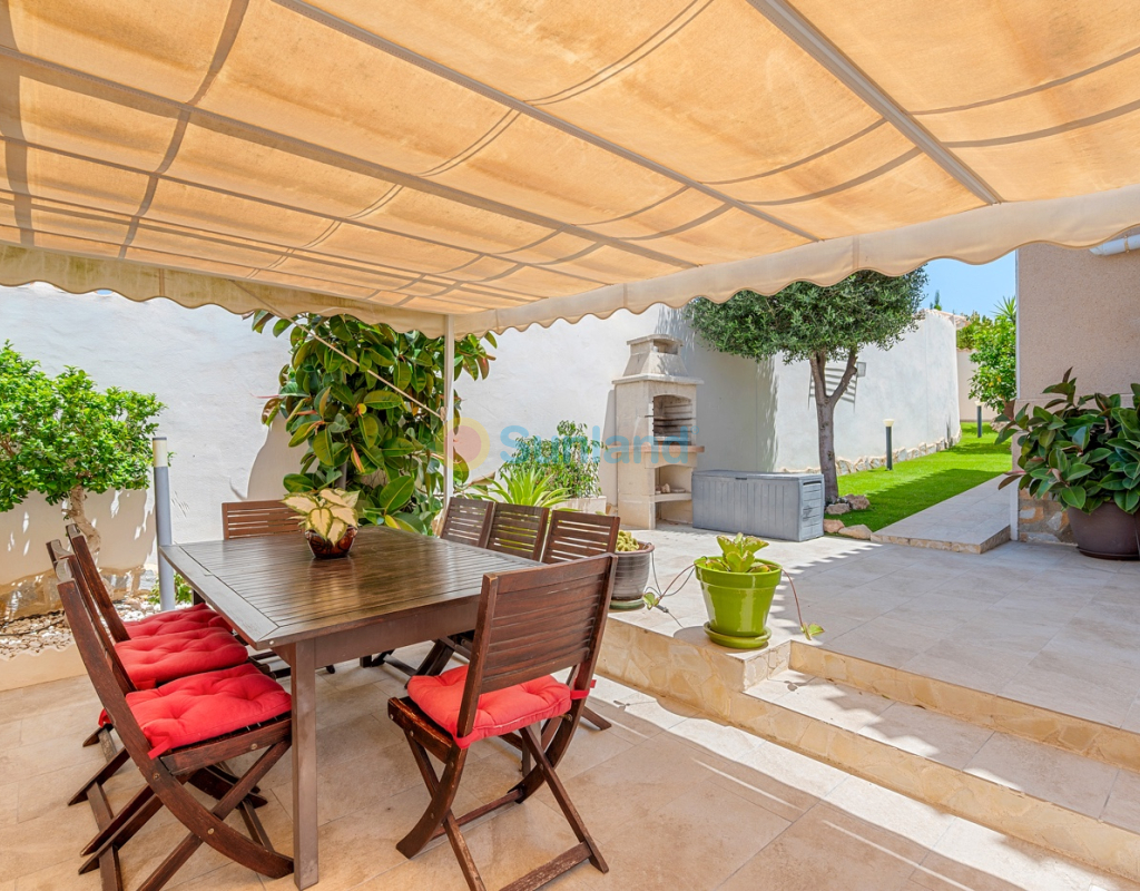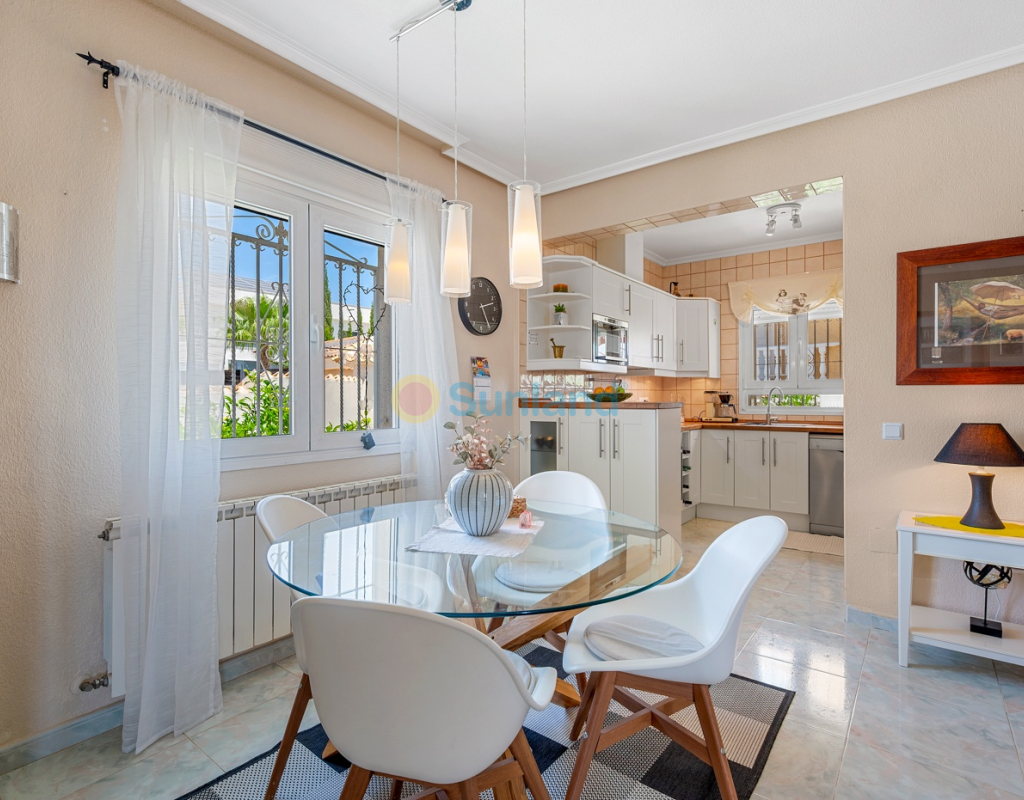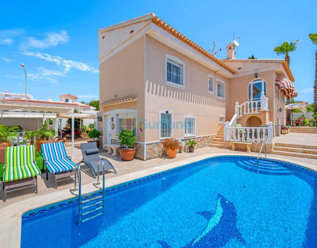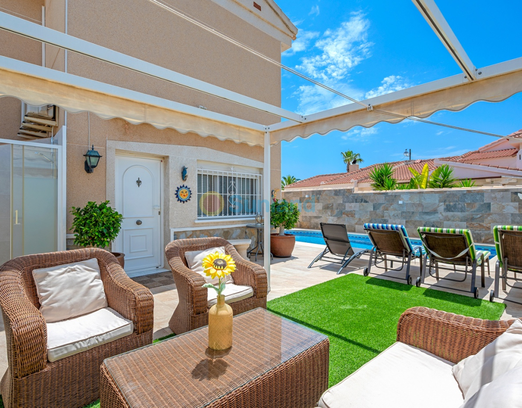 Charmante villa de style méditerranéen avec 3 chambres, située à proximité du centre de Ciudad Quesada. La villa dispose d’une surface habitable totale de 238 m² répartie sur deux niveaux : l’étage principal et un appartement indépendant au rez-de-chaussée. L’étage principal comprend deux chambres doubles et deux salles de bains, dont une attenante à la chambre parentale. On y trouve également une entrée, une cuisine ouverte, un séjour avec cheminée, une salle à manger, ainsi qu’une véranda aménagée en salon et salle à manger supplémentaire. À l’entrée de la villa se trouve une terrasse couverte et depuis la véranda, vous accédez directement à l’espace piscine. Au rez-de-chaussée se situe un appartement d’invités indépendant composé d’un salon, d’une cuisine, d’une grande chambre et d’une salle de bains. La villa est équipée du chauffage central (au gaz), de la climatisation, d’une cheminée dans le séjour, d’un système d’alarme et d’un filtre à osmose. Espace extérieurLa villa est implantée sur un terrain orienté plein sud de 500 m². Le jardin est bien entretenu avec carrelage et végétation. Vous y trouverez une piscine au sel, une douche extérieure, un carport, un espace barbecue, un débarras et plusieurs espaces de détente. Le jardin dispose d’un système d’arrosage automatique. La villa est située à seulement quelques minutes à pied de la rue principale de Ciudad Quesada où vous trouverez de nombreux services.
