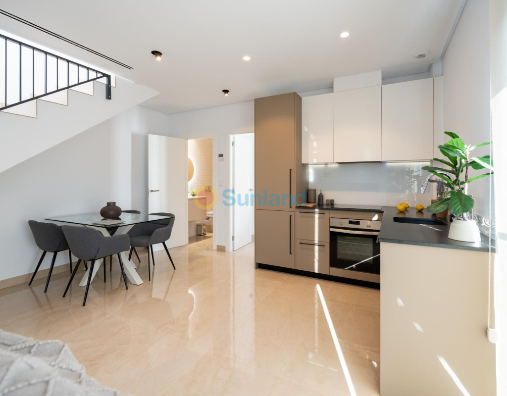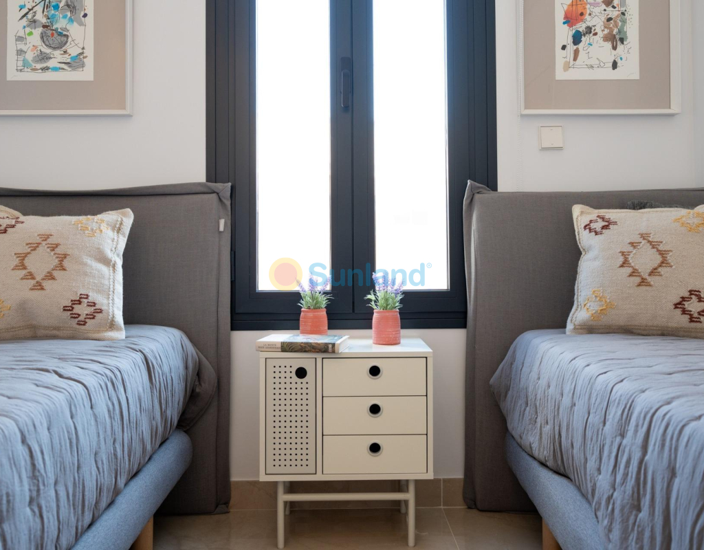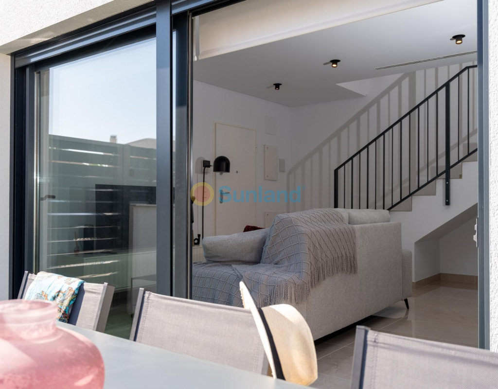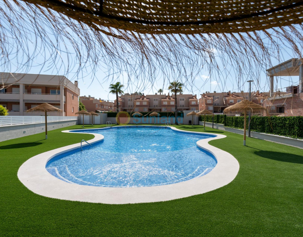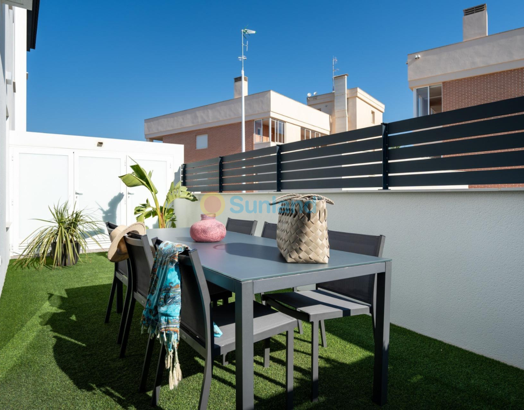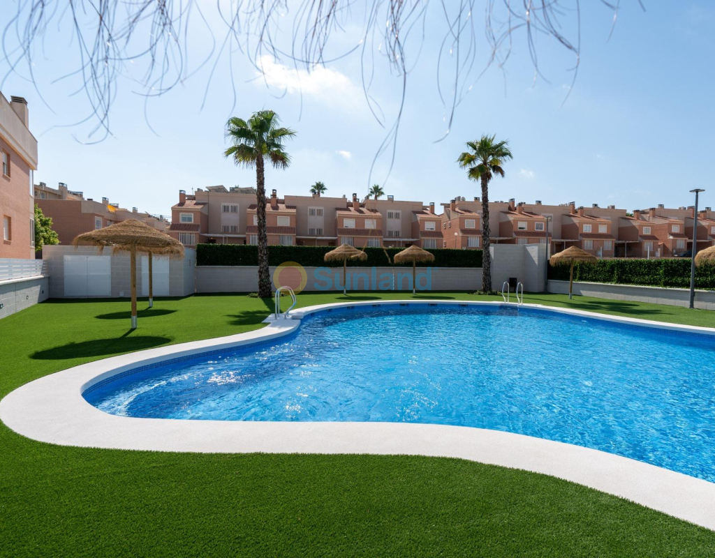 BUNGALOWS DE 3 CHAMBRES DANS RÉSIDENTIEL EXCLUSIF À GRAN ALACANT! Découvrez cette résidence exclusive de bungalows de 86.28m² avec un jardin de 64m², et avec 2 ou 3 chambres. C'est une urbanisation privée, qui dispose d'une piscine commune, de jardins et d'une aire de jeux pour enfants pour profiter du temps libre. La résidence est située au Cap de Santa Pola, entre les montagnes et la plage de Carabassí. Avec la fourniture de tous les services, mettant en évidence un centre commercial à quelques mètres, avec la mode, une large zone de loisirs, des services et des restaurants, une station-service, un arrêt de bus, etc... Il borde la route principale, sur un main, et la mer Méditerranée sur son côté est, avec des plages de sable fin et de vastes forêts de pins. Les bungalows sont sur deux étages, avec des finitions de haute qualité, de grands parkings et des terrasses pour profiter du soleil toute l'année ! Il est livré avec l'installation de deux climatiseurs, d'une cuisine équipée d'un four, d'une plaque vitrocéramique à induction et d'une hotte aspirante. -12 km de l'aéroport international d'Alicante-Elche -6 km de Santa Pola -23 km d'Alicante Profitez du confort des espaces dans un quartier privilégié !