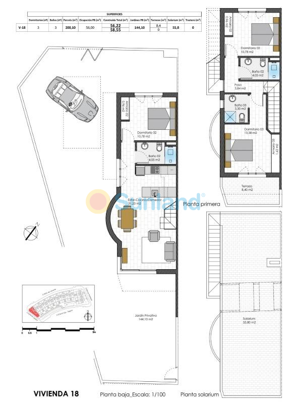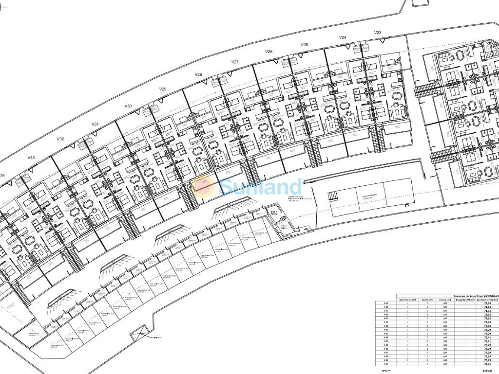Complexe résidentiel neuf de bungalows et maisons de ville modernes à Pilar de la Horadada. Les maisons de ville neuves comprennent 3 chambres, 3 salles de bains, une cuisine ouverte sur un spacieux salon-salle à manger, des placards intégrés et une terrasse. Tous les logements disposent d'une place de parking privée et d'un débarras. Pilar de la Horadada est un village espagnol typique situé dans la partie la plus méridionale de la Costa Blanca. La grande rue principale abrite des supermarchés, de nombreux magasins, des restaurants et des bars, ainsi que de jolies places. Les belles plages de Torre de la Horadada et de Mil Palmeras, avec leur promenade de sable fin, ne sont qu'à 5 minutes. Les aéroports de Corvera (Murcia) et d'Alicante sont respectivement à 40 et 55 minutes.