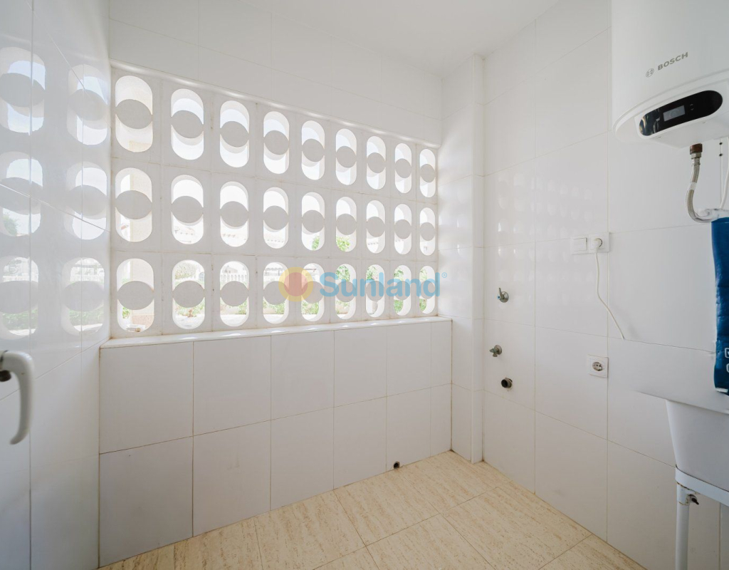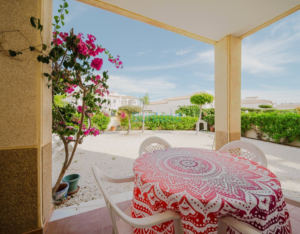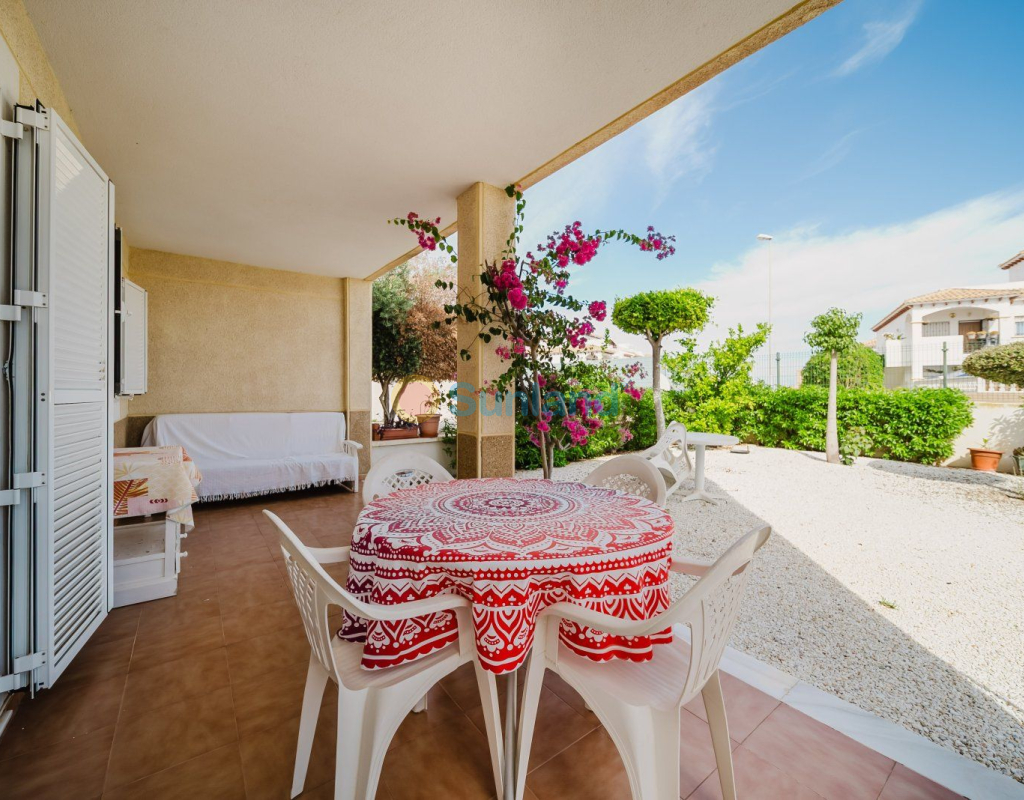 Appartement en rez-de-chaussée avec grande terrasse à Zeniamar, Playa Flamenca. Ce spacieux appartement en rez-de-chaussée se distingue par sa grande terrasse privée de 120 m². Il offre 110 m² construits et se situe dans une zone résidentielle proche de tous les services : supermarchés, restaurants, pharmacies, école, courts de padel et transports. Il se compose de 3 chambres, 2 salles de bain, cuisine indépendante avec buanderie et salon avec accès direct à la terrasse. Vendu meublé et équipé, avec climatisation. Accès à la piscine communautaire et parking inclus. Caractéristiques principales : 3 chambres 2 salles de bain 110 m² construits Terrasse de 120 m² Cuisine indépendante avec buanderie Meublé Climatisation Orientation est Piscine communautaire Parking Année de construction : 2006 Charges annuelles : IBI : 320 € Communauté : 400 € Emplacement : Proche de tous les services Supermarchés et restaurants à proximité Courts de padel et zones sportives proches Quartier bien desservi