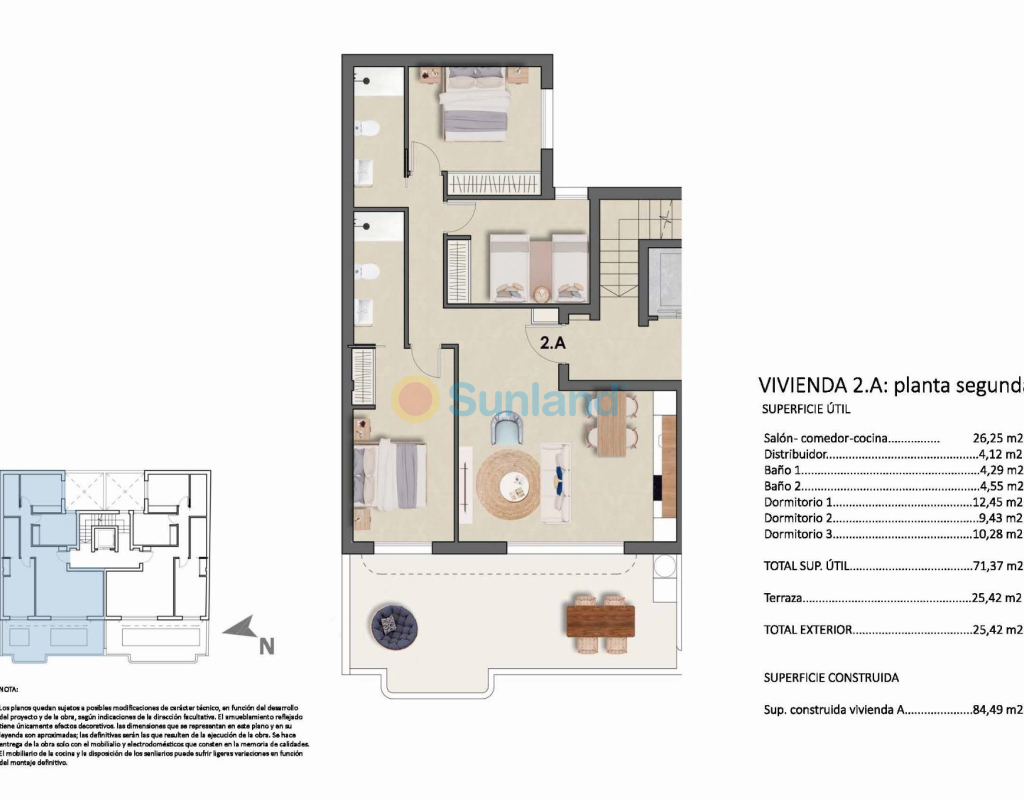 Nouveaux appartements méditerranéens à seulement 140 m de la plage à Torre de la Horadada Une vie exclusive en bord de mer sur la Costa Blanca Découvrez ce nouveau projet résidentiel à Torre de la Horadada, idéalement situé à seulement 140 mètres de la mer, entre les plages d'El Conde et d'El Puerto et à côté du port de plaisance. Cette promotion exclusive ne compte que 8 appartements modernes de style méditerranéen, qui offrent une combinaison unique de charme côtier et de confort contemporain dans l'un des emplacements les plus prisés de la Costa Blanca Sud. Situées dans un village côtier paisible et pittoresque, ces propriétés sont entourées de services essentiels tels que des supermarchés, des restaurants, des cafés et des magasins, tous accessibles à pied. La région est connue pour son atmosphère détendue, ses eaux cristallines et son environnement familial. Design élégant et finitions de qualité Chaque appartement dispose de 1, 2 ou 3 chambres et de 1 ou 2 salles de bains, soigneusement conçues pour maximiser l'espace et la lumière naturelle. Les intérieurs comprennent : Porte d'entrée sécurisée pour plus de tranquillité Des placards encastrés dans les chambres, entièrement revêtus et finis Des salles de bains modernes équipées de meubles, de miroirs et de parois de douche Pré-installation de la climatisation par conduits pour profiter d'un confort tout au long de l'année Ces finitions de haute qualité créent des espaces lumineux et fonctionnels, parfaits aussi bien pour une résidence permanente que pour une utilisation saisonnière. Solarium sur le toit avec piscine et espace détente La caractéristique la plus remarquable de cette promotion est le solarium communautaire sur le toit, accessible par des escaliers ou un ascenseur. Les résidents peuvent profiter d'une piscine sur le toit, d'un espace cuisine en plein air, d'un barbecue et de salles à manger sous des pergolas, ainsi que d'un espace pour prendre le soleil avec du gazon artificiel. Cette oasis exclusive sur le toit est l'endroit idéal pour se détendre sous le soleil espagnol. Emplacement privilégié et excellentes connexions Torre de la Horadada est connue pour son littoral impressionnant, son port de plaisance et sa promenade animée. La promotion offre un accès facile aux destinations proches : Plages : 100 m Terrain de golf Lo Romero : 7 km San Pedro del Pinatar : 5 km Aéroport de Murcie-Corvera : 40 minutes (55 km) Aéroport d'Alicante : 55 minutes (75 km) La maison de plage de vos rêves vous attend Avec son emplacement imbattable, son design élégant et ses services communautaires exceptionnels, ce nouveau projet résidentiel boutique à Torre de la Horadada est l'occasion idéale de profiter du style de vie méditerranéen. Contactez-nous dès aujourd'hui pour organiser une visite et vous assurer d'acquérir votre nouvelle maison à quelques pas de la mer sur la Costa Blanca.